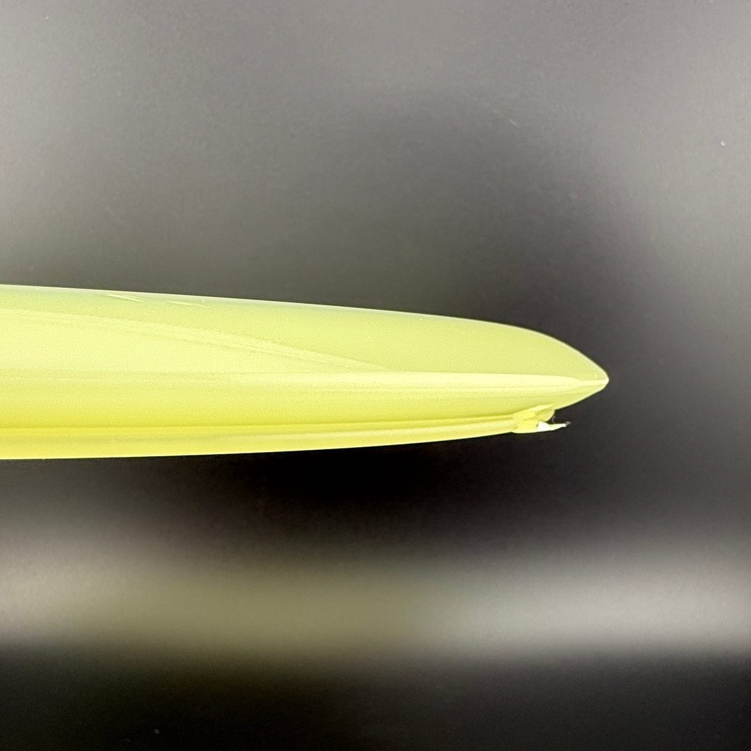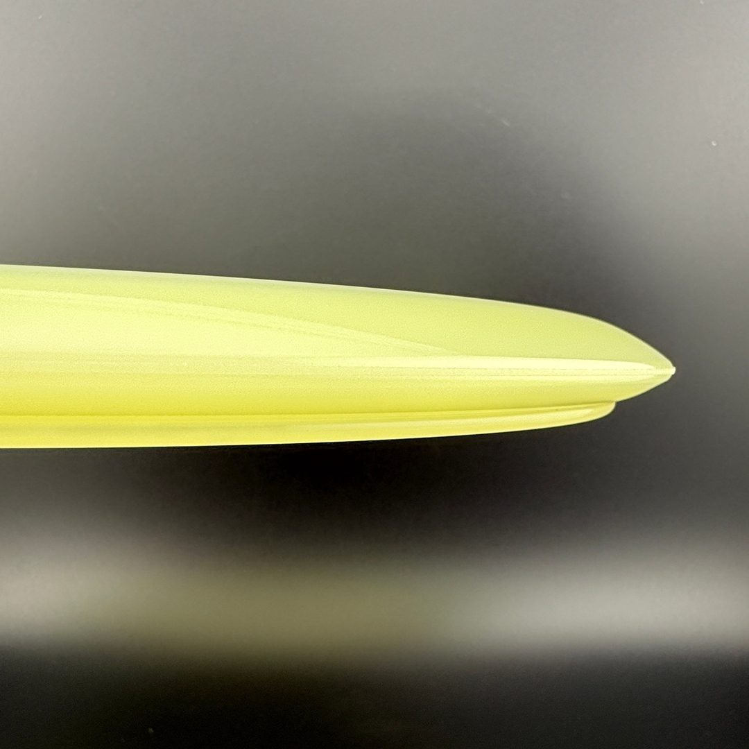 Proto Glow Champion is a specialized run of Innova's Champion plastic that includes a glow-in-the-dark additive for night play or low-light conditions. Compared to standard Glow Champion, the Proto Glow blend often features a slightly firmer feel and improved glow intensity, especially in early production runs. This plastic maintains the high durability and slick finish Champion is known for, while providing a bright, long-lasting glow when properly charged. Many players also find Proto Glow discs to fly a touch more overstable, making them reliable choices for consistent throws in any lighting condition.