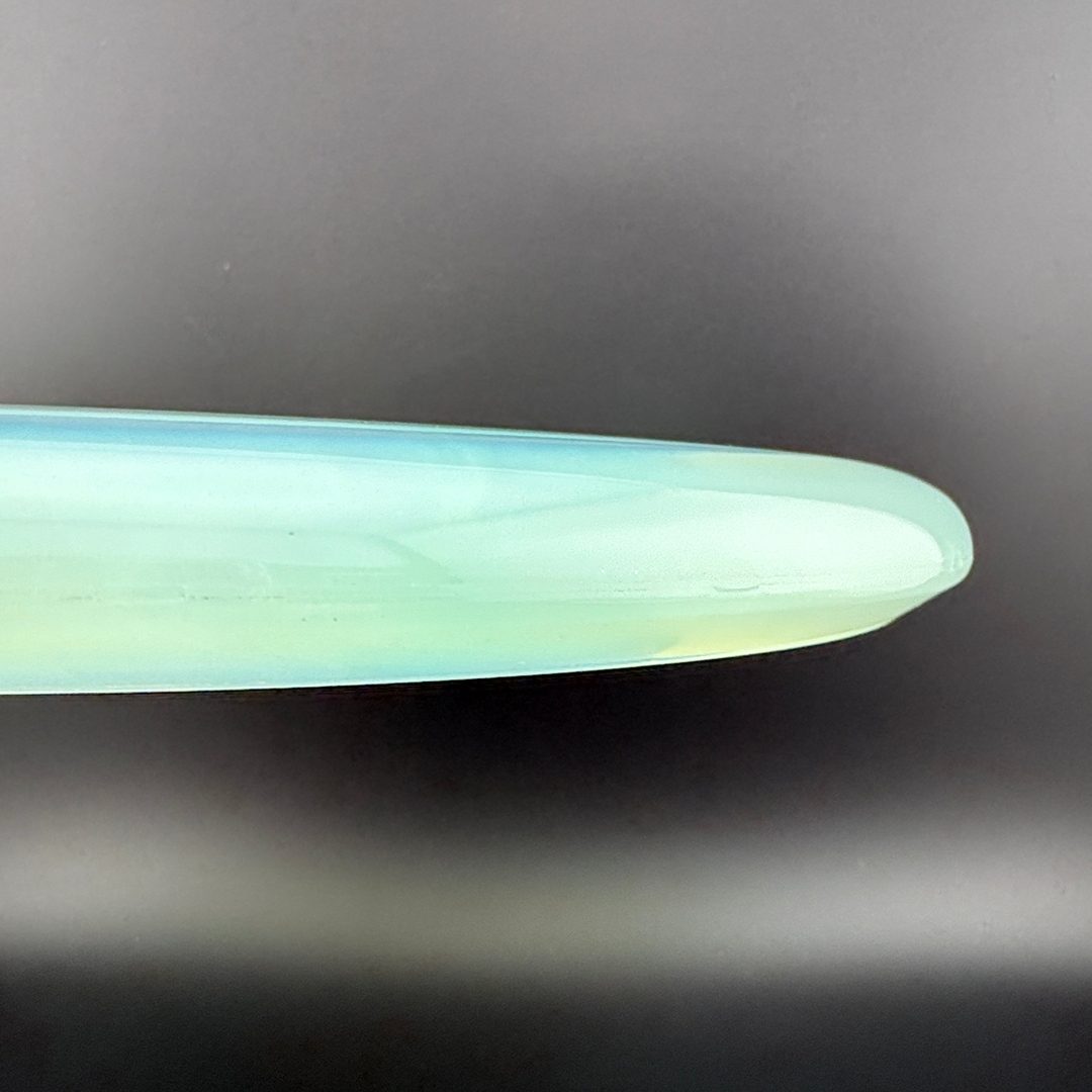 Ethos - This premium plastic is generally translucent and a little stiffer then the other Mint premium plastics. It has good durability and seasons slowly over time. It is comparable to MVP Proton plastic.