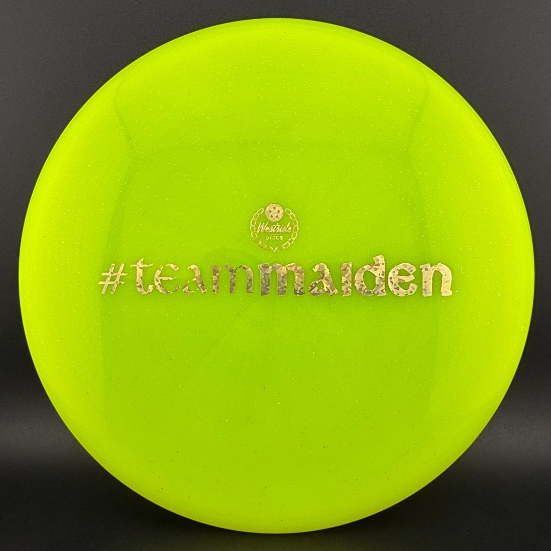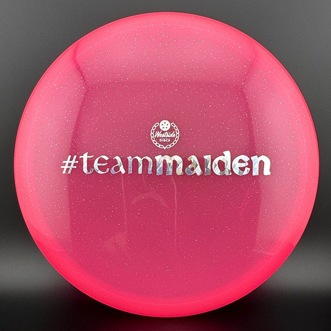 The Westside Discs Maiden is a low-profile, beaded putt-and-approach disc renowned for its straight flight and versatility. With flight ratings of Speed 3, Glide 4, Turn 0, and Fade 1, it offers a neutral flight path, making it suitable for both putting and approach shots. Players appreciate its comfortable grip and consistent release, attributing its performance to its shallow profile and minimal fade. Introduced during the 2018 Trilogy Challenge, the Maiden has since become a favorite among disc golfers seeking reliability and precision in their short game.