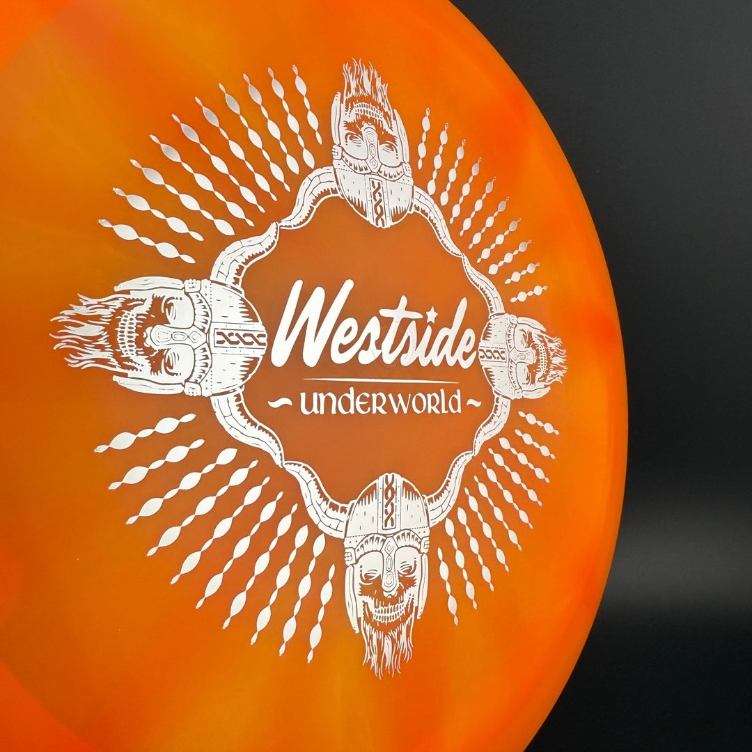The Westside Underworld is the ideal driver for beginners. This understable disc has a high degree of high-speed turn, followed by minimal low-speed fade. It has a moderate sized 1.9cm rim, and a comfortable feel that will provide new disc golfers more control and distance than most other discs. For more experienced players, the Underworld is great for straight hyzer flip throws that will go the distance. The Underworld is available in both VIP and Tournament plastics.