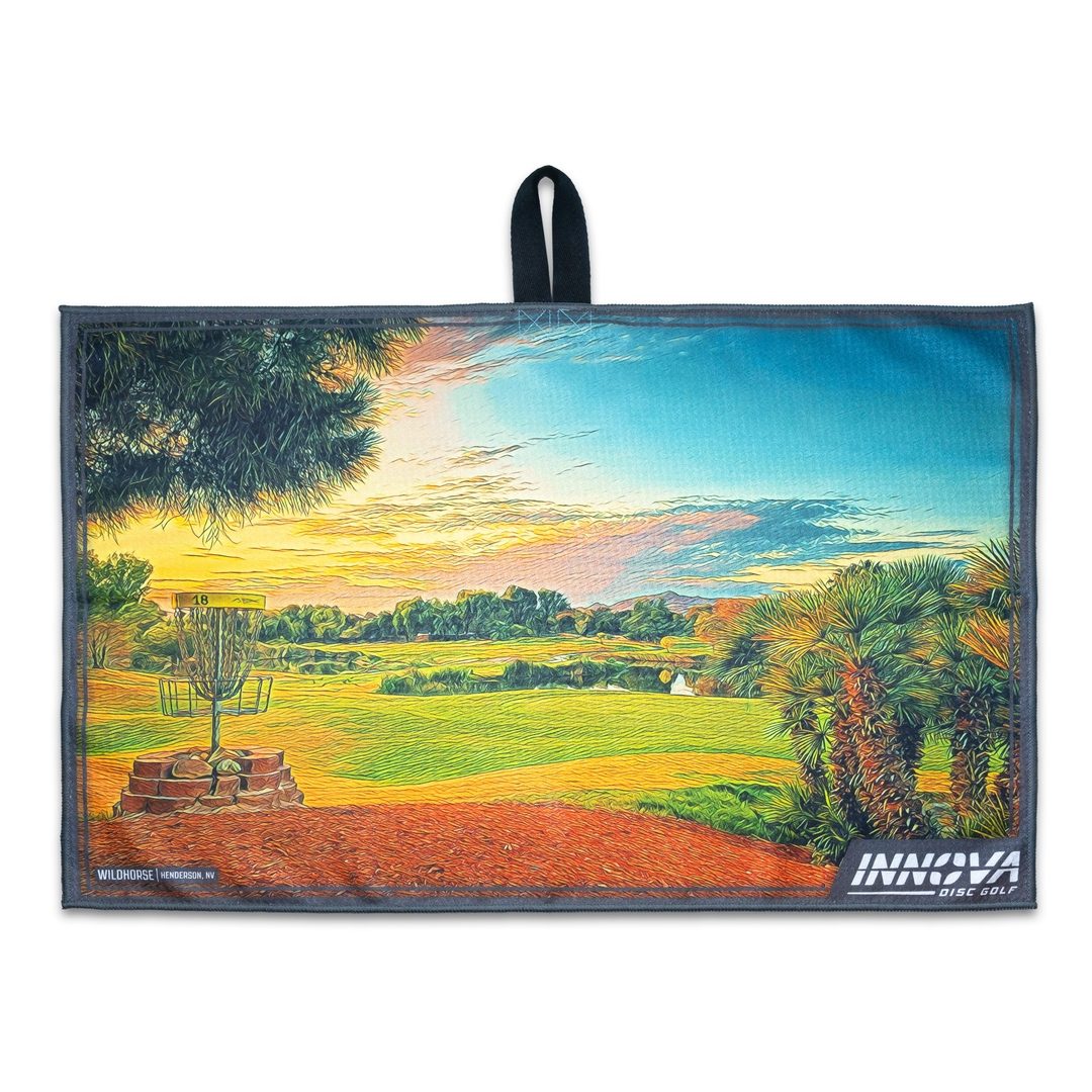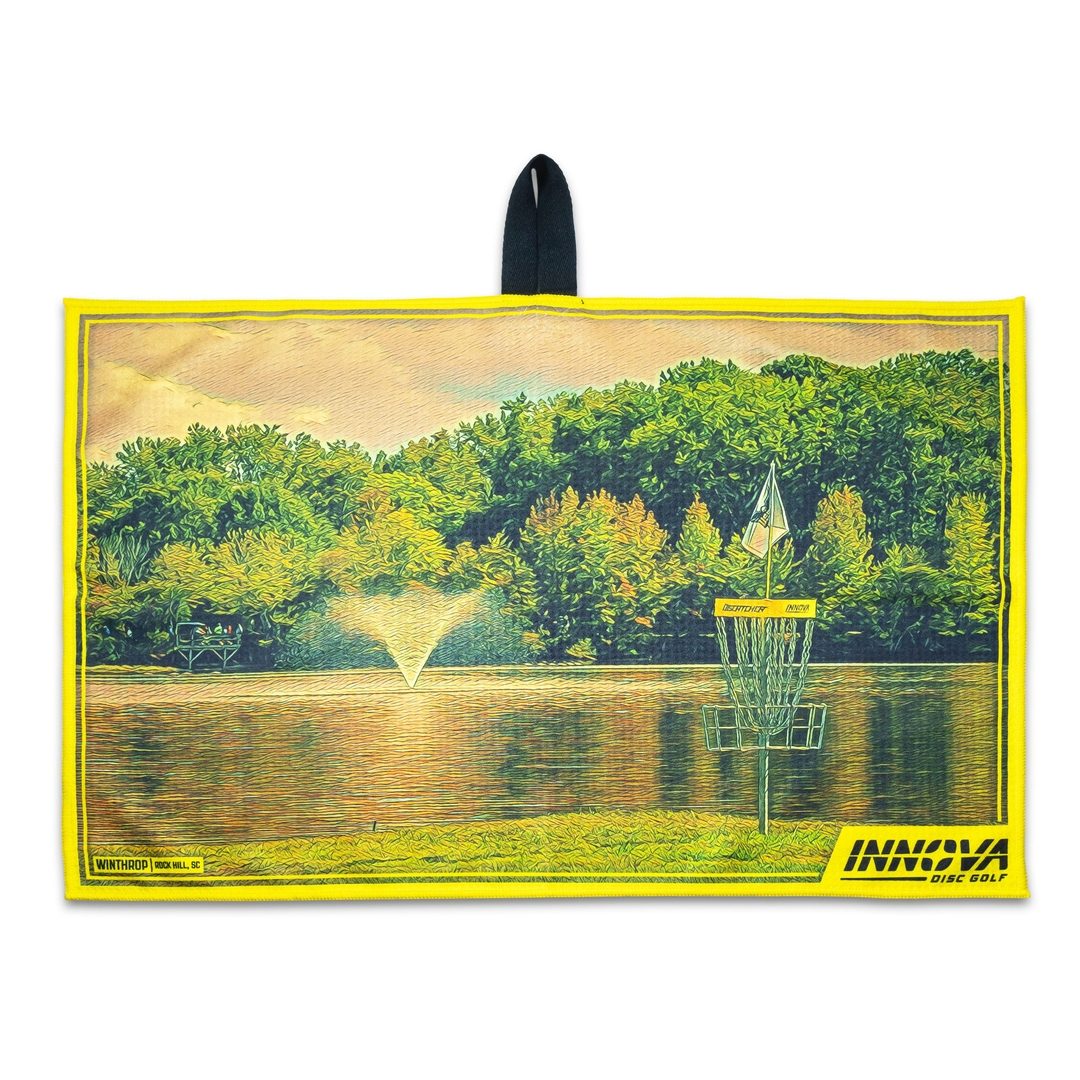 Rain, dew, dirt, mud, that mystery slimy stuff you landed in — consider it handled. Innova Tour Towels show off epic photography from some of the best courses around the world, printed on an absorbent towel that should always travel with you on the course. Available in seven rad designs featuring seven iconic holes with DISCatchers.