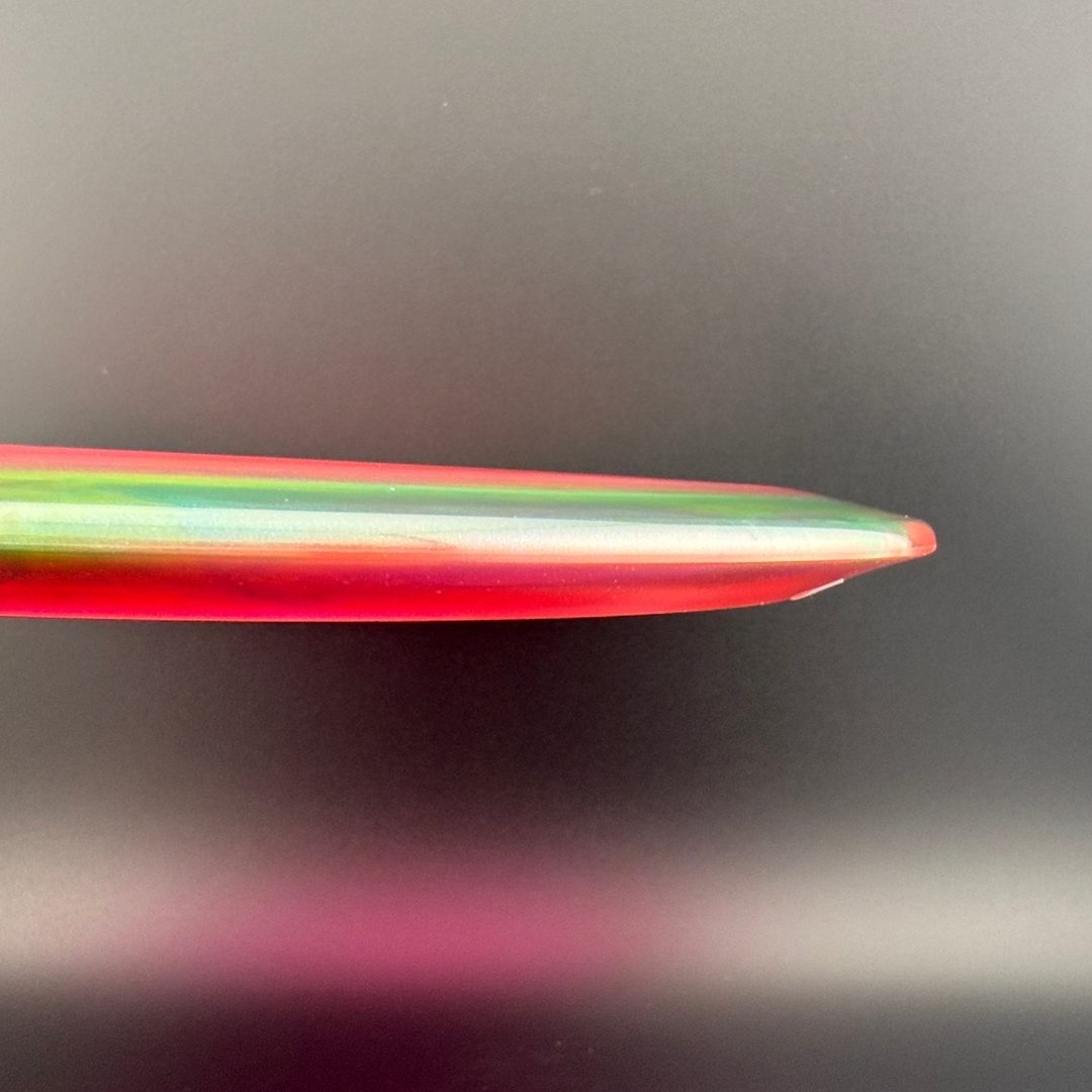 Innova Halo Champion Plastic combines the legendary durability and stability of Champion plastic with the stunning two-tone Halo effect for a premium look and feel. This blend offers a slightly firmer feel and touch more stability than standard Champion, giving players extra confidence in windy conditions or high-power throws. Each disc features a vibrant, color-shifting rim and translucent flight plate that make every run unique. Tough, consistent, and built to shine, Halo Champion delivers tour-grade performance with unmistakable style.
