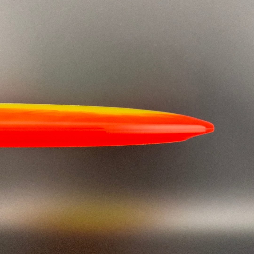 Lucid X Orbit plastic is a premium blend from Dynamic Discs combining stiff, overstable Lucid X feel with striking Orbit two-tone rims. It offers excellent durability, resisting wear and maintaining stability longer than standard Lucid. The firm hand feel suits power throwers who want confidence on full drives. Orbit molding adds visual appeal without affecting performance, making Lucid X Orbit popular for high-speed, torque-resistant discs. It excels in windy conditions and aggressive throwing styles overall.