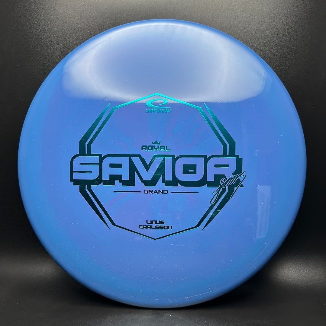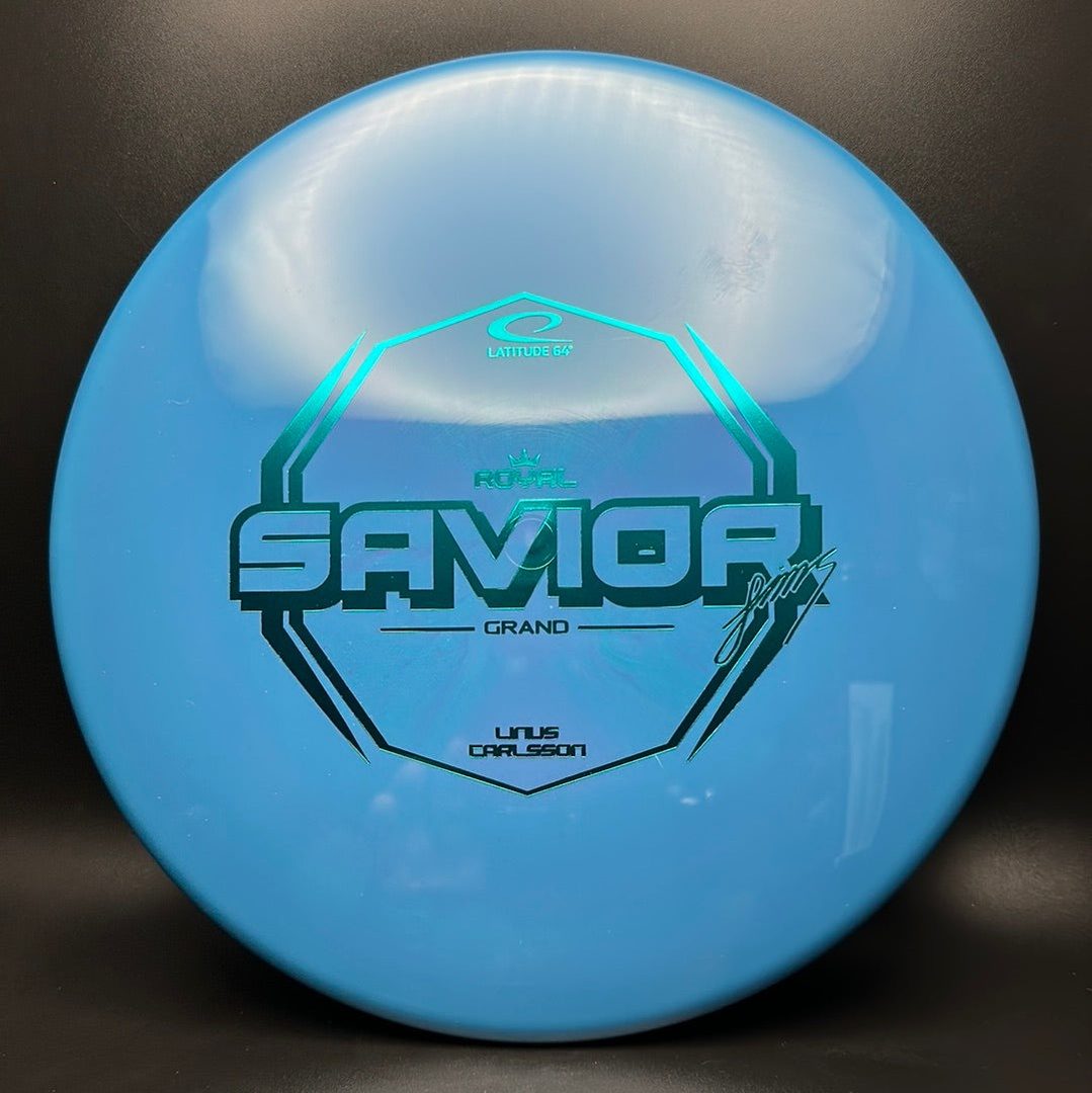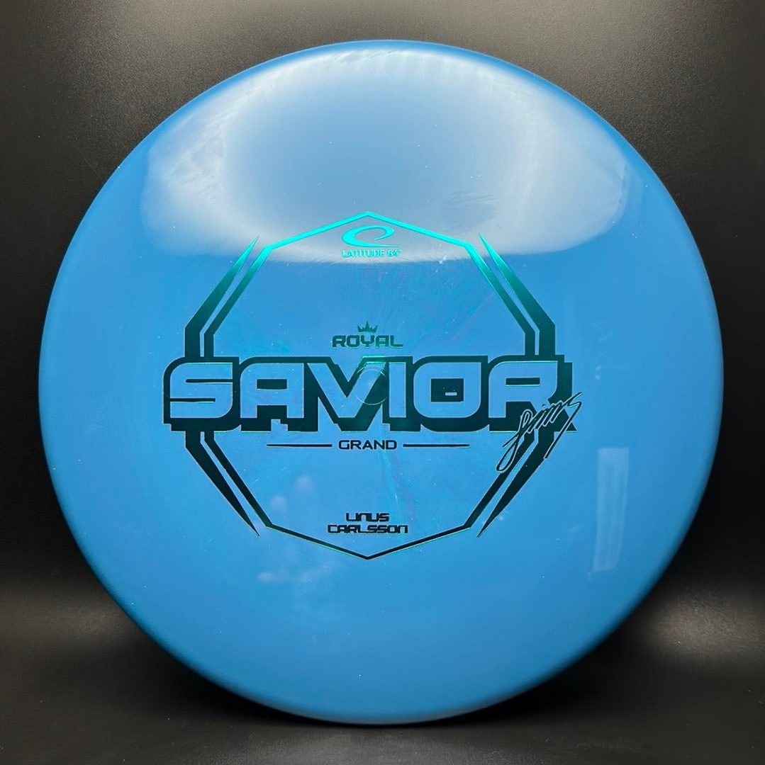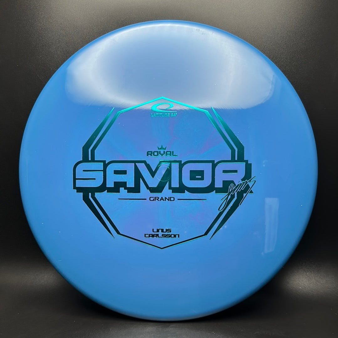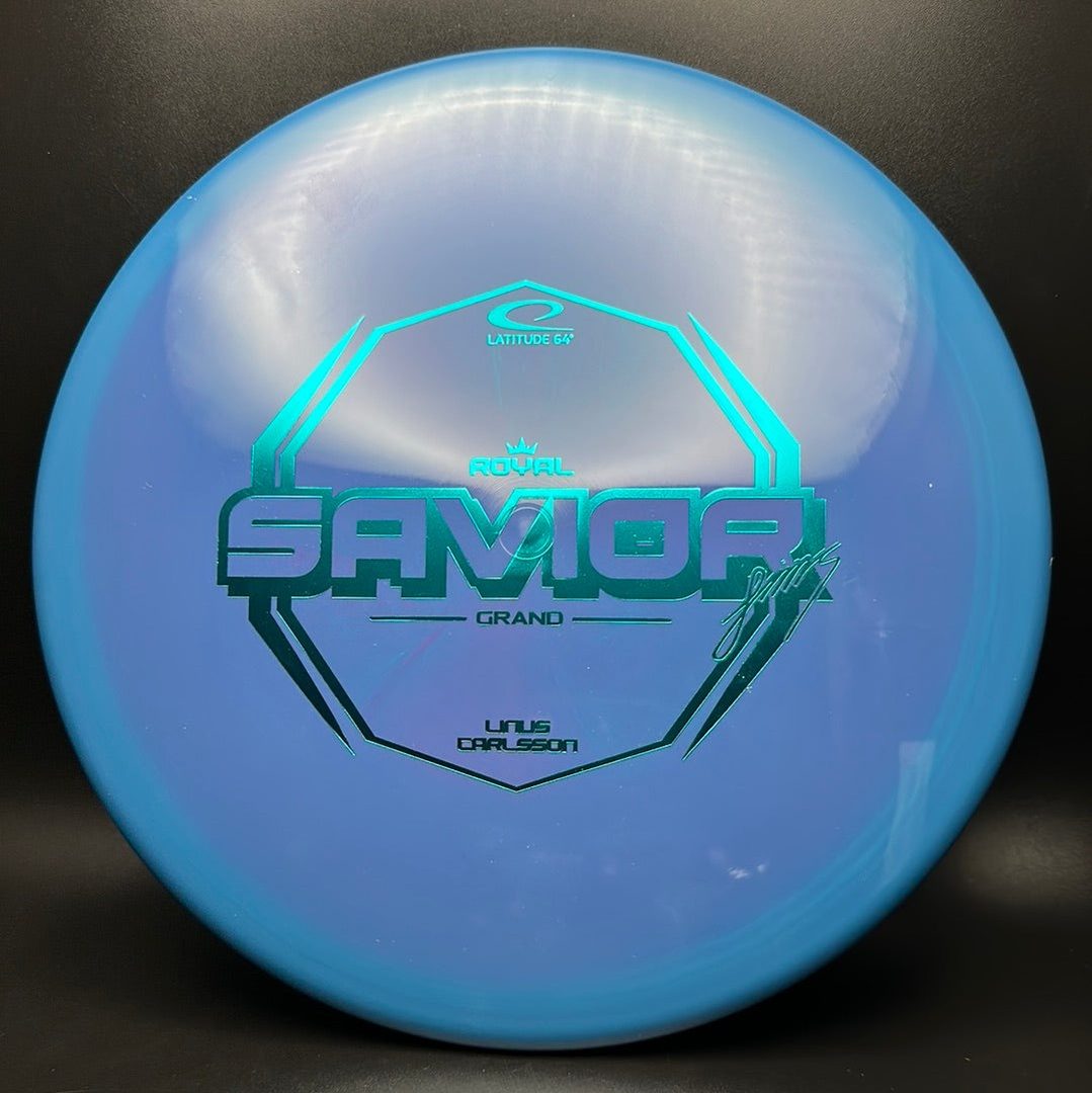 The Savior was designed to fill the gap in our disc lineup as an overstable approach disc. The disc is a bit of a hybrid between a midrange and a putter, resulting in a ‘neat’ grip and a flat upper surface ideal for forehand shotsRoyal Grand is our durable premium plastic with great grip that will not fail you, no matter the outside circumstances.