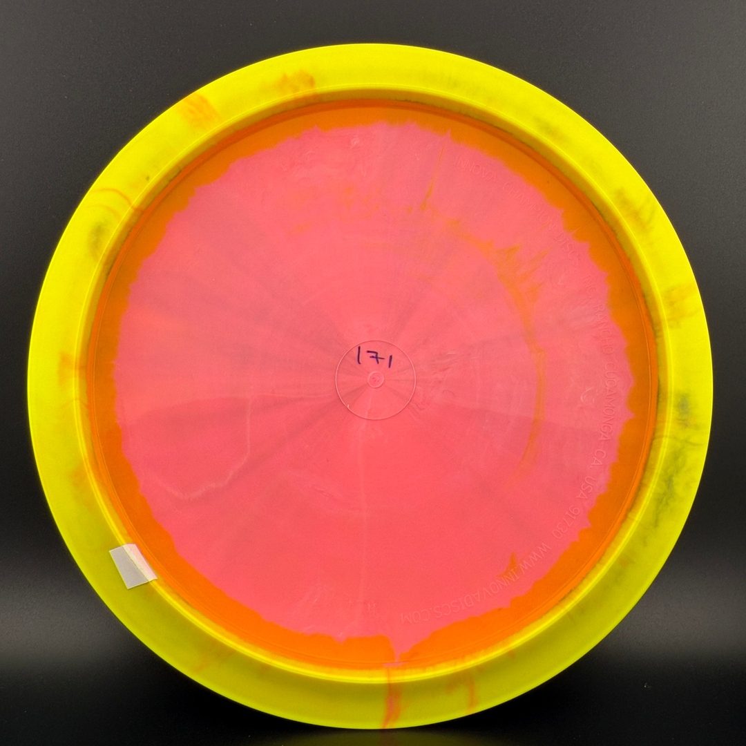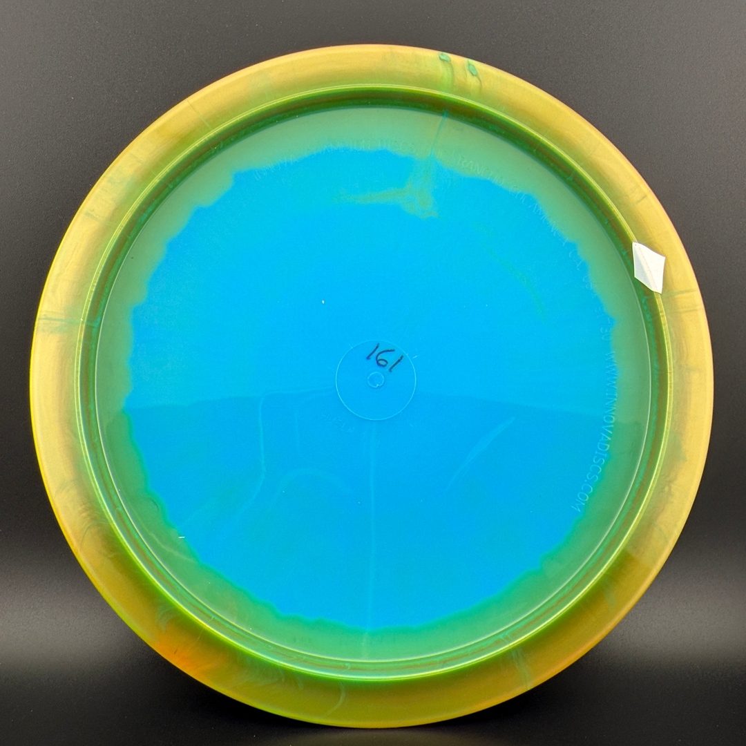 Sirius Helio is a strikingly colorful, shimmery plastic blend that bursts from the center of the disc. The colorful outer rim and heliocentric appearance of the discs resemble the sun, or a distant star on the backdrop of a colorful galaxy.