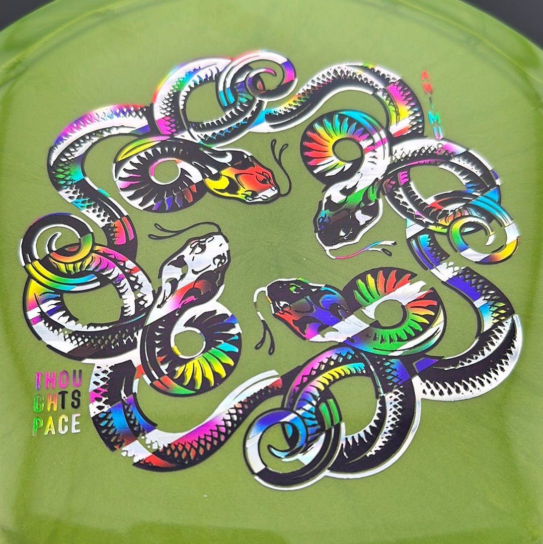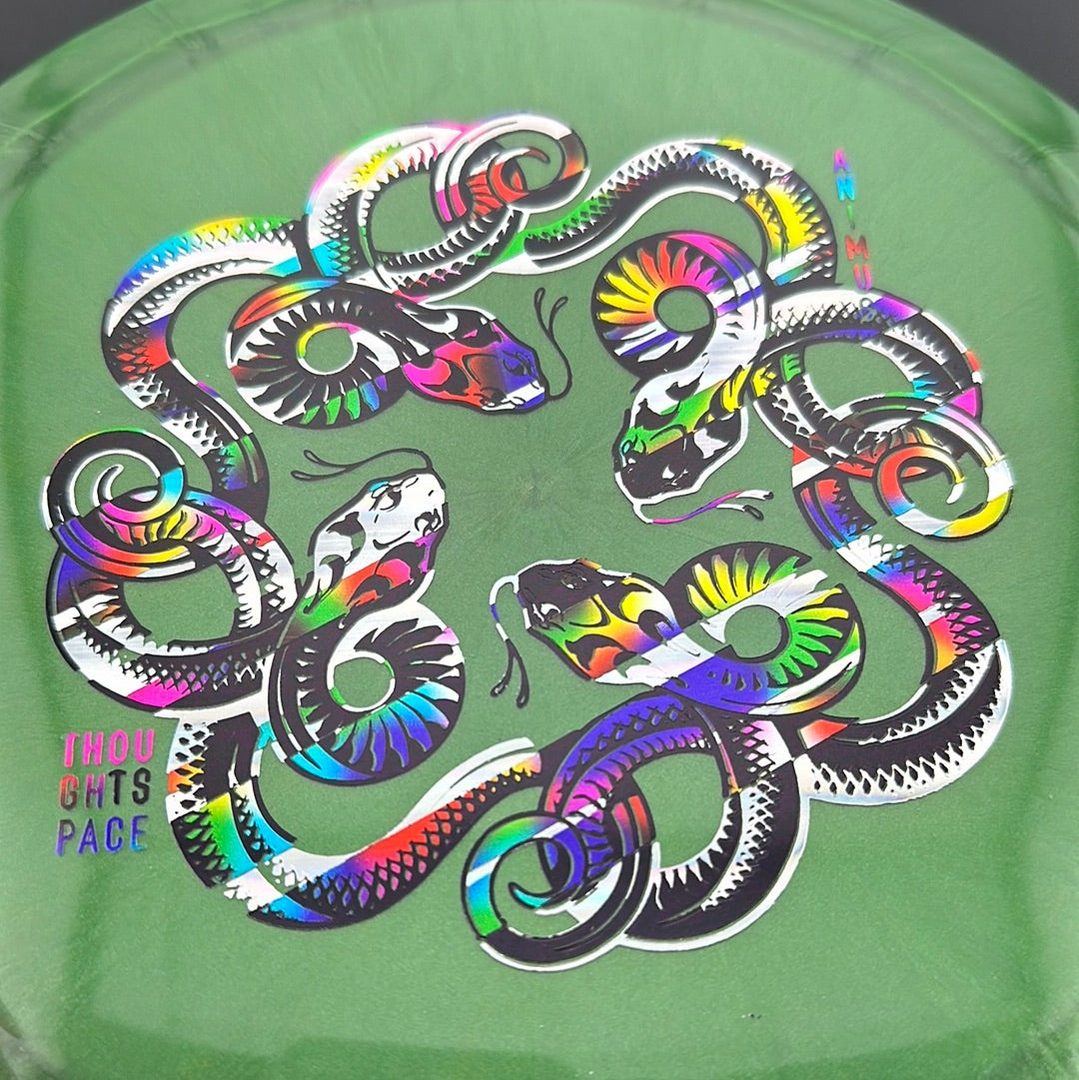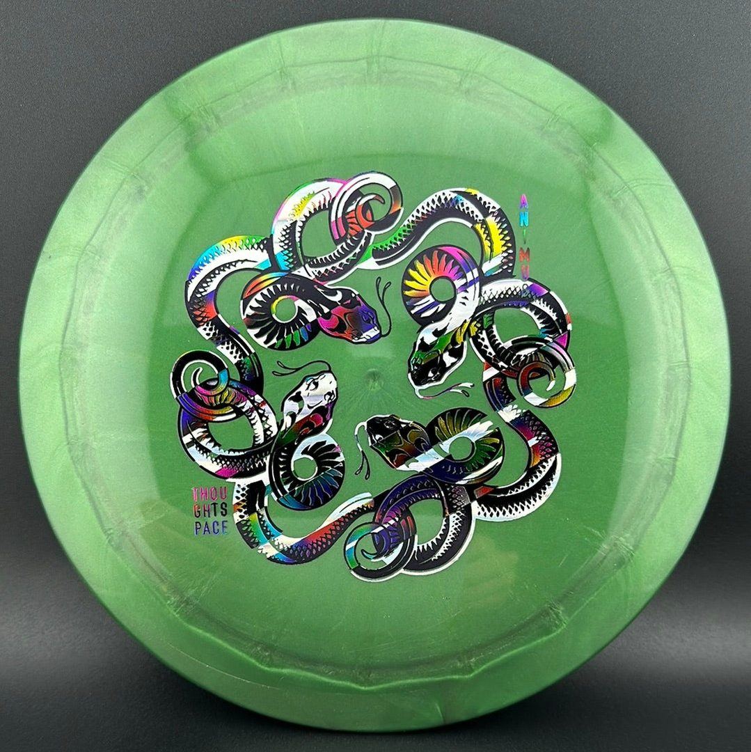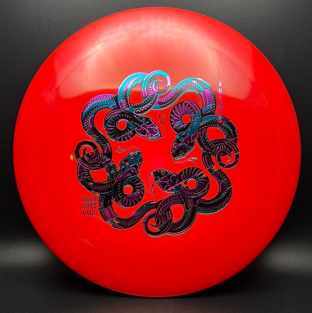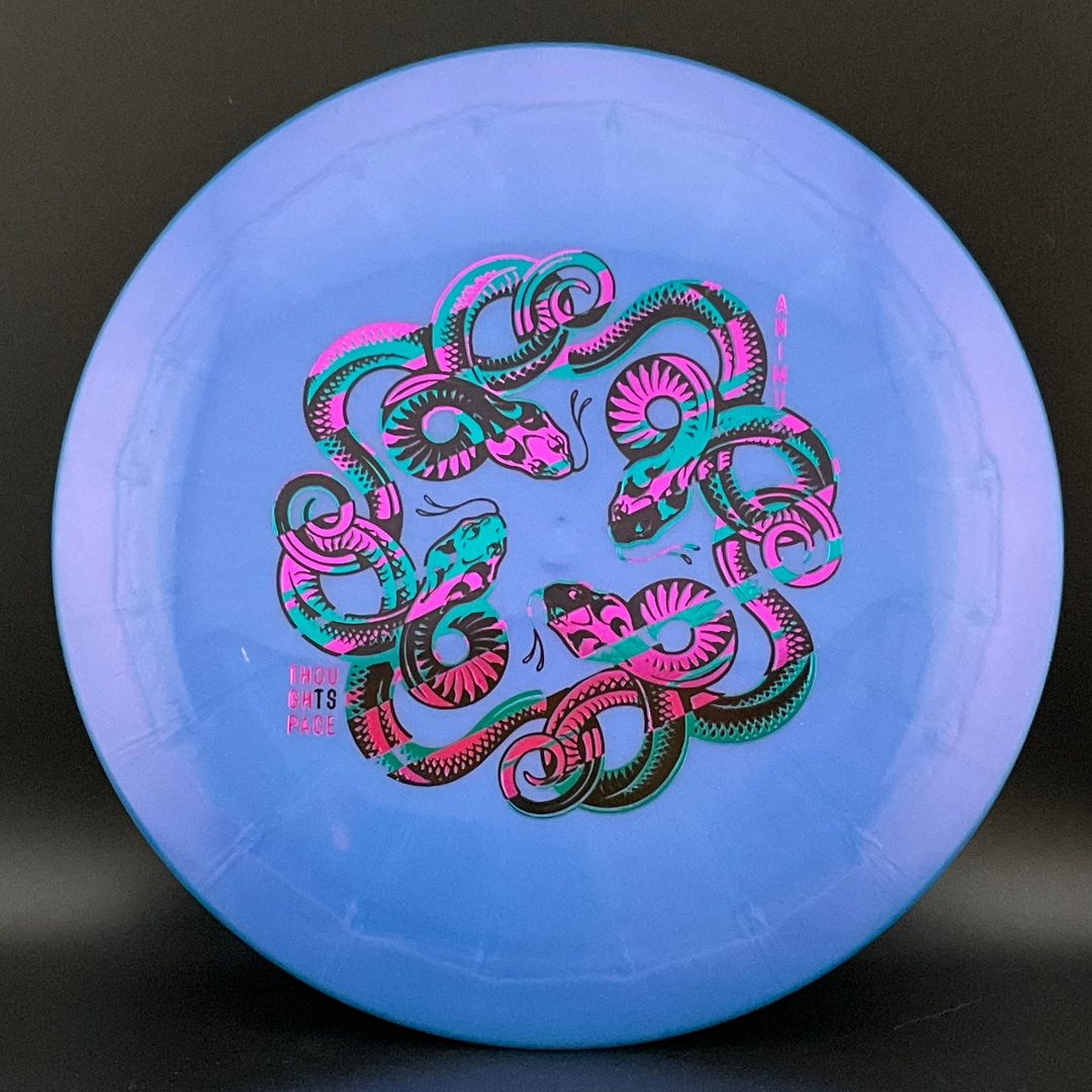 The Animus is a high-performance distance driver with a moderately overstable flight pattern. It handles torque well when thrown by experienced players, but does not have so much fade that it is unmanageable by recreational players who need an overstable driver in their bag. It has been compared to a cross between an Innova Wraith and Thunderbird.