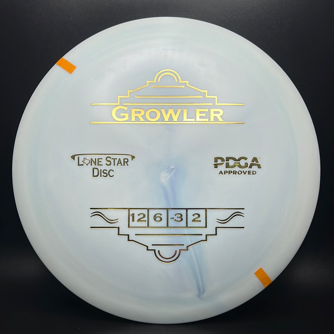 Saddle up with the Lone Star Disc Growler, partner! This high-speed, understable distance driver is like a wild stallion, blazing down the fairways with speed and control. It's said to be a faster Tumbleweed, or a slightly more overstable Harrier.