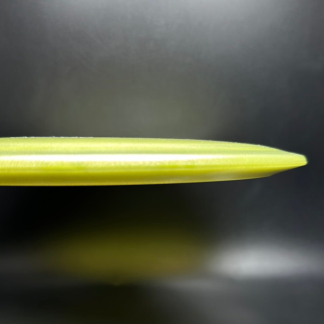 400 Glimmer Plastic is a newer "Special Effects" plastic by Prodigy. This plastic is similar in feel to 400s plastic, but includes tiny metal flakes in it to enhance the disc's beauty and appeal. This plastic adds a shine and sparkle not yet seen in Prodigy plastic. So far, this plastic has only been run on Limited Quantity discs.