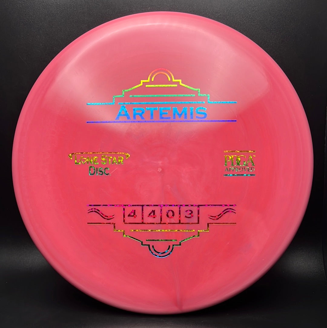 4/4/0/3 *We have been digging the feel of the Artemis! Wind shredding machine. The Lone Star Disc Artemis is a putt & approach disc, great for all skill levels. This mold will fly with control but always gives a solid fade at the end of its flight. It has a moderately shallow rim with a slightly domey top.