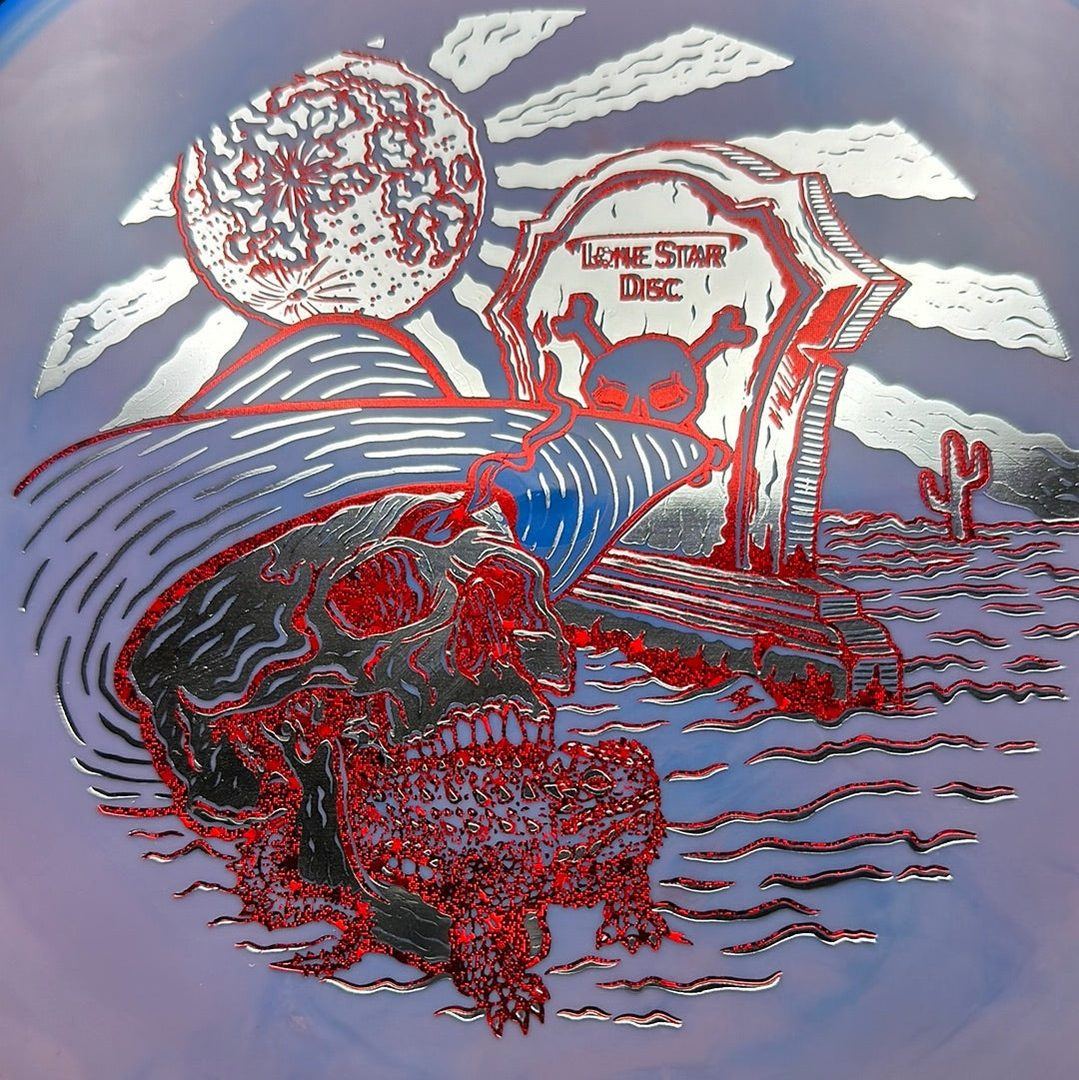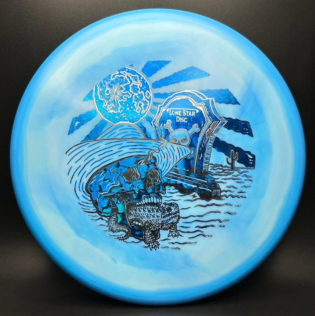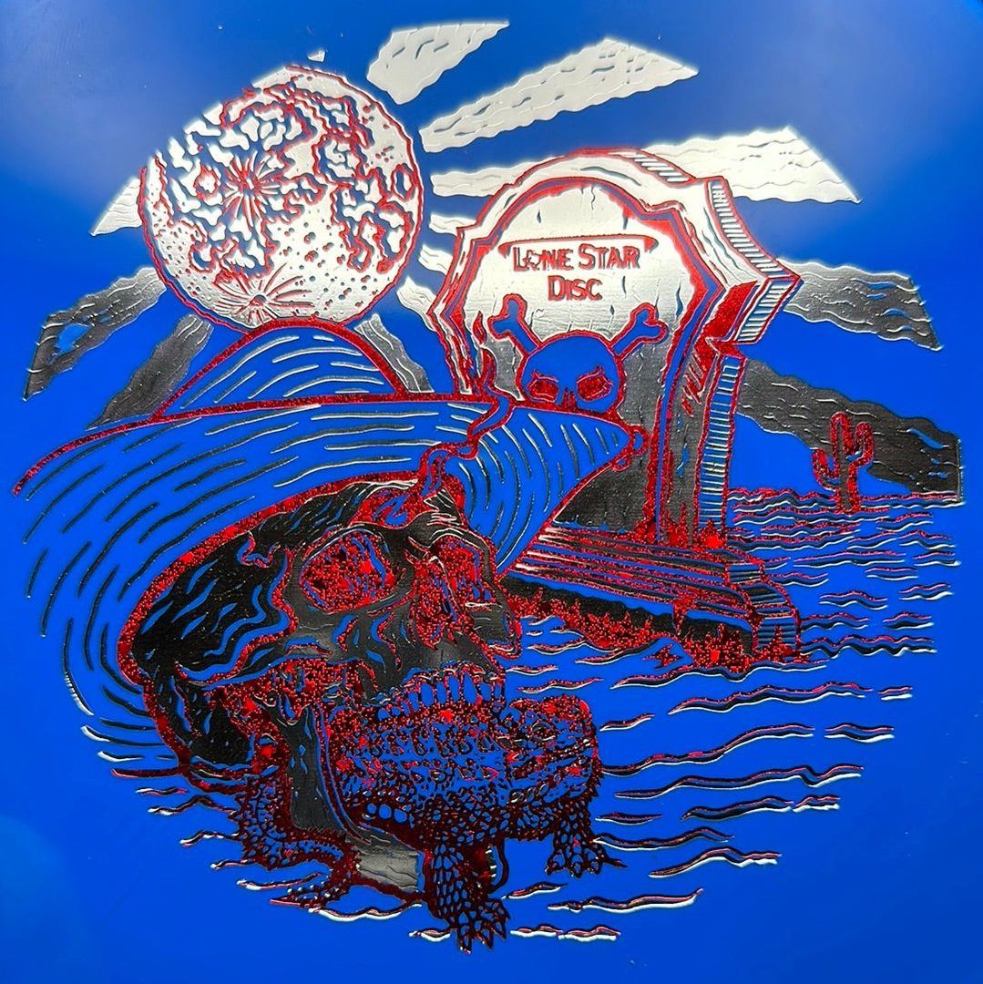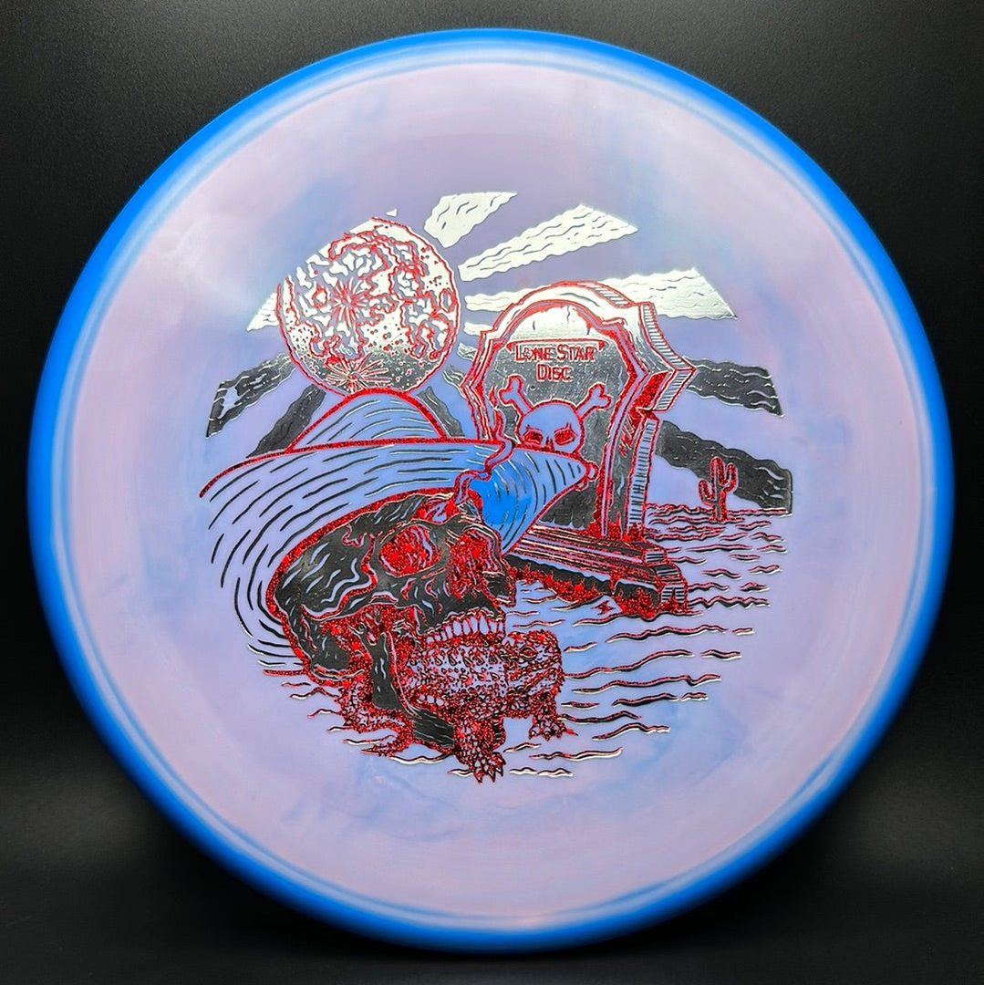 The Lone Star Disc Horny Toad is an overstable putter designed for precise upshots, offering excellent glide and consistent fade. It works well with both high-power backhands and forehands, even in toughest windy conditions.