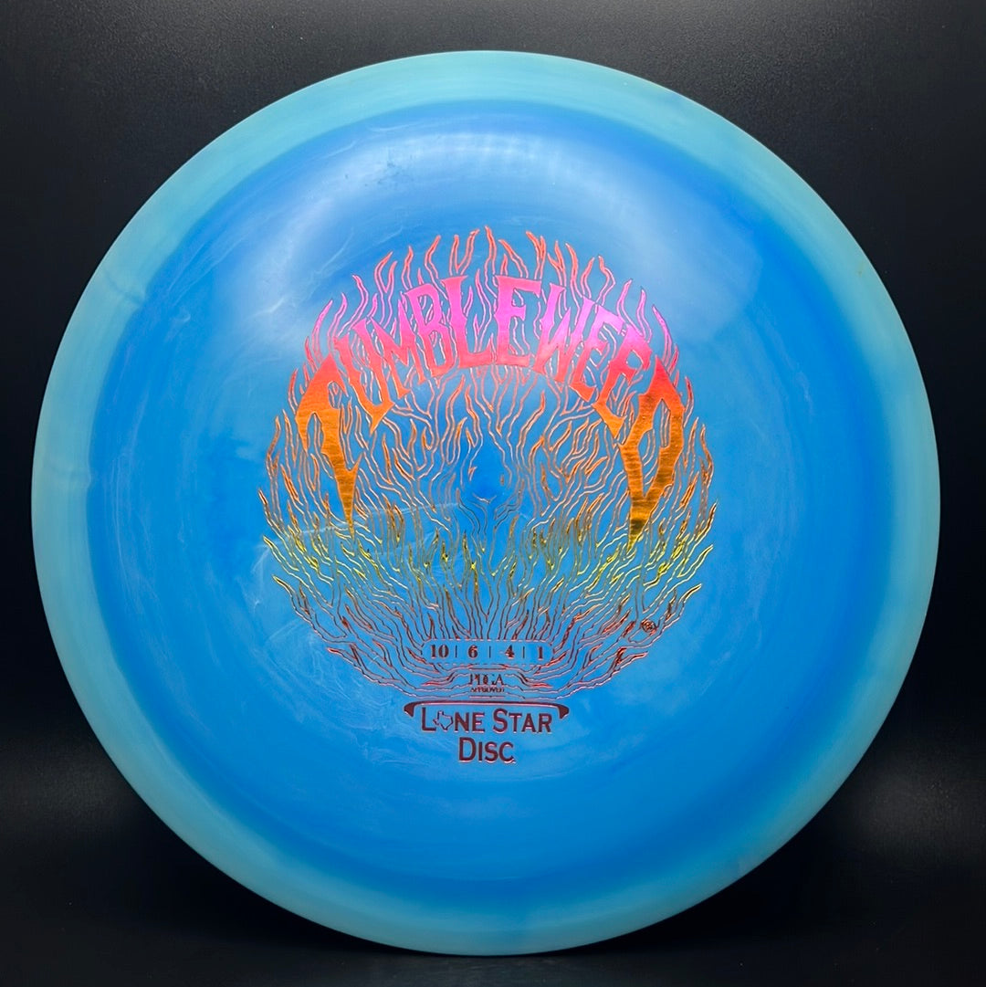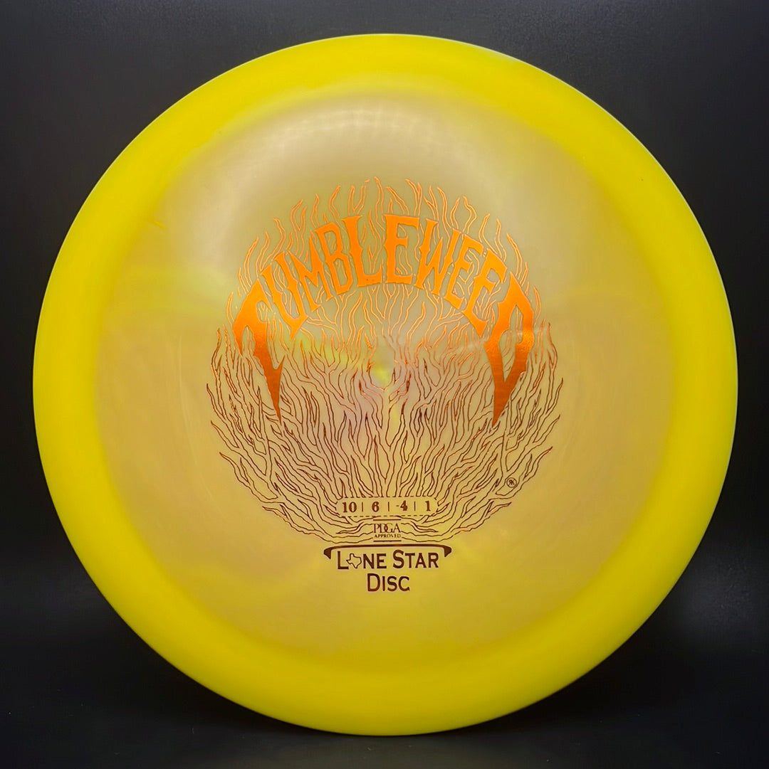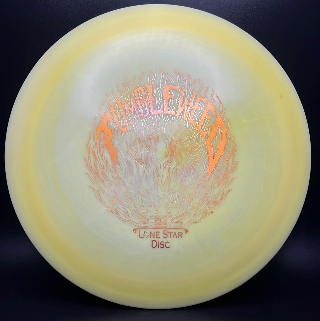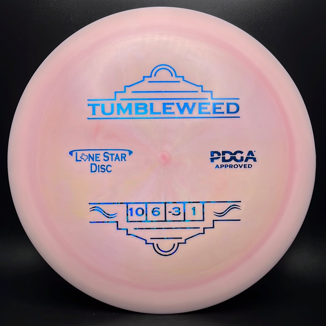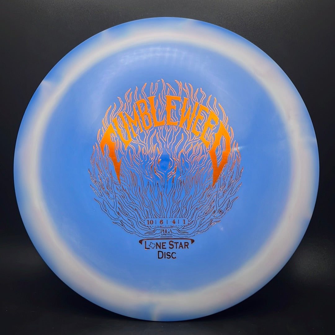 The Tumbleweed is our most understable distance driver to date. Easy to use, easy to grip, and easy distance make this driver the ideal candidate for anyone looking for roller lines, big anhyzer flex shots, or for tailwind shots.