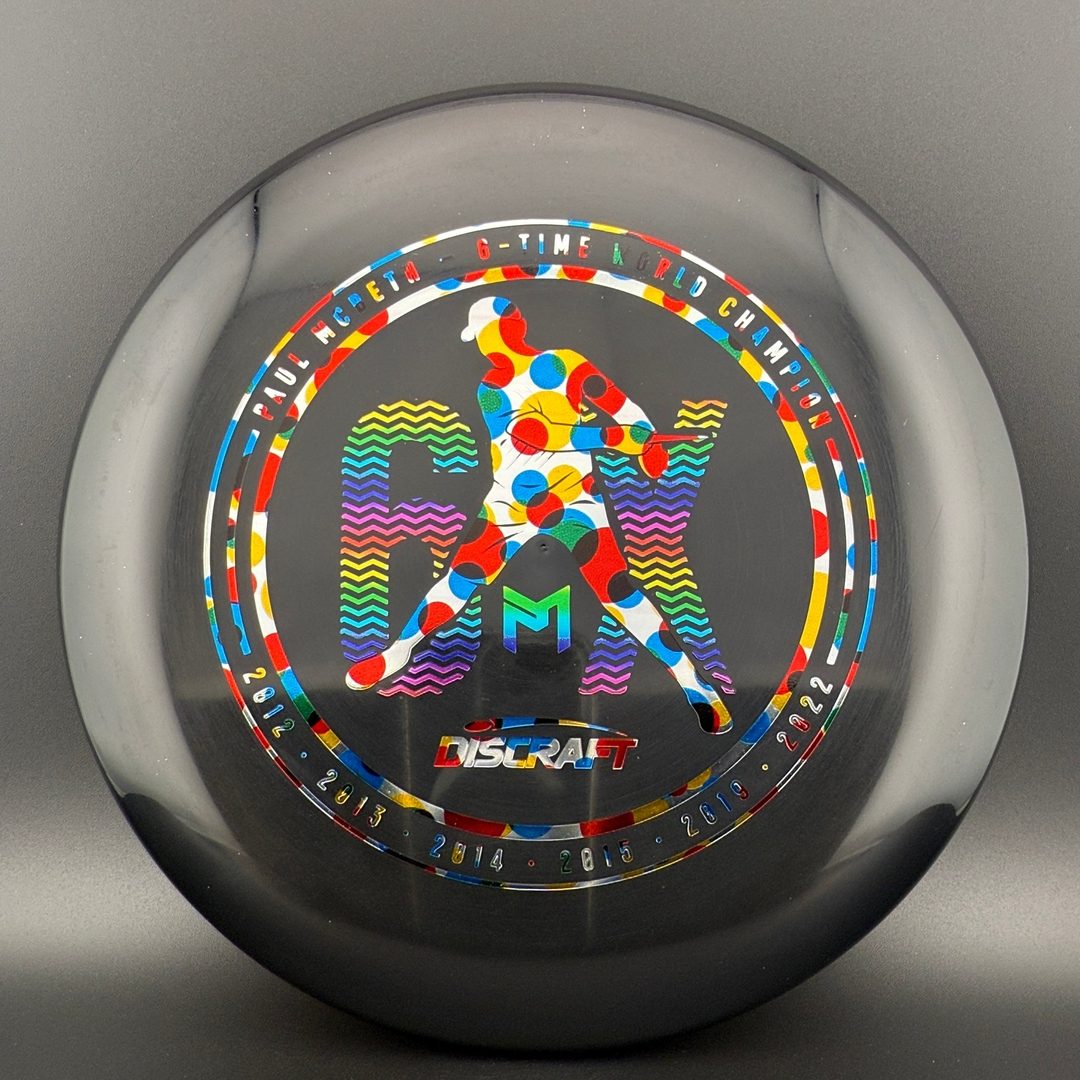 A limited CryZtal Luna's to celebrate Paul's 6th World Championship win. These rare 6X CryZtal Lunas are double stamped, top and bottom, to create a one-of-a-kind graphic truly fitting for Paul's 6th title. The iconic crystal clear plastic feels great in the hand while the combination of foils creates a piece of art that will be hard to let fly.