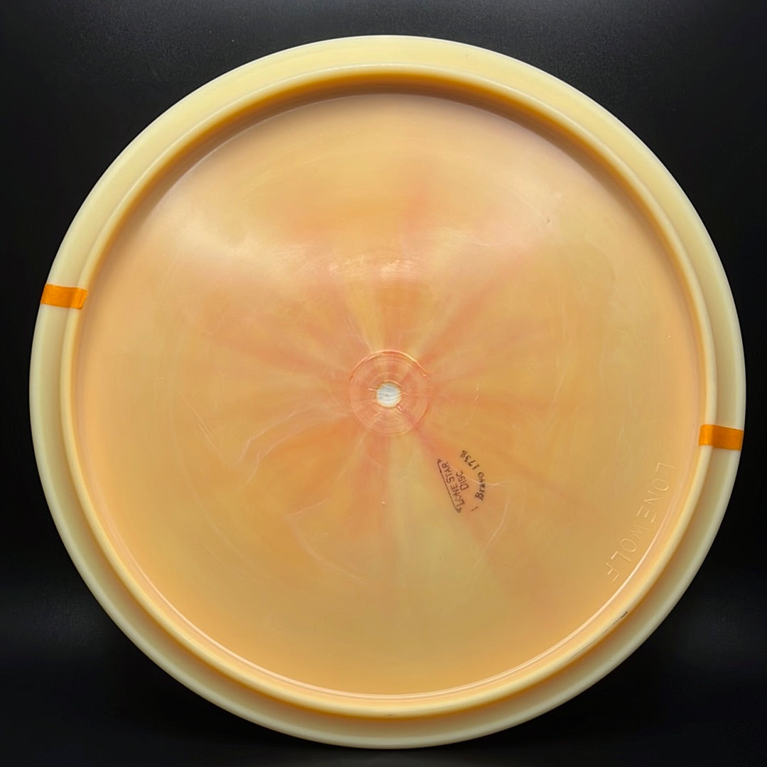 The Lone Wolf by Lone Star Disc is a fairway driver / mid-range crossover disc with a more aerodynamic profile than most mids. It is understable with plenty of turn to hold anhyzer lines and is also a great choice for new players who want to avoid a premature fade.