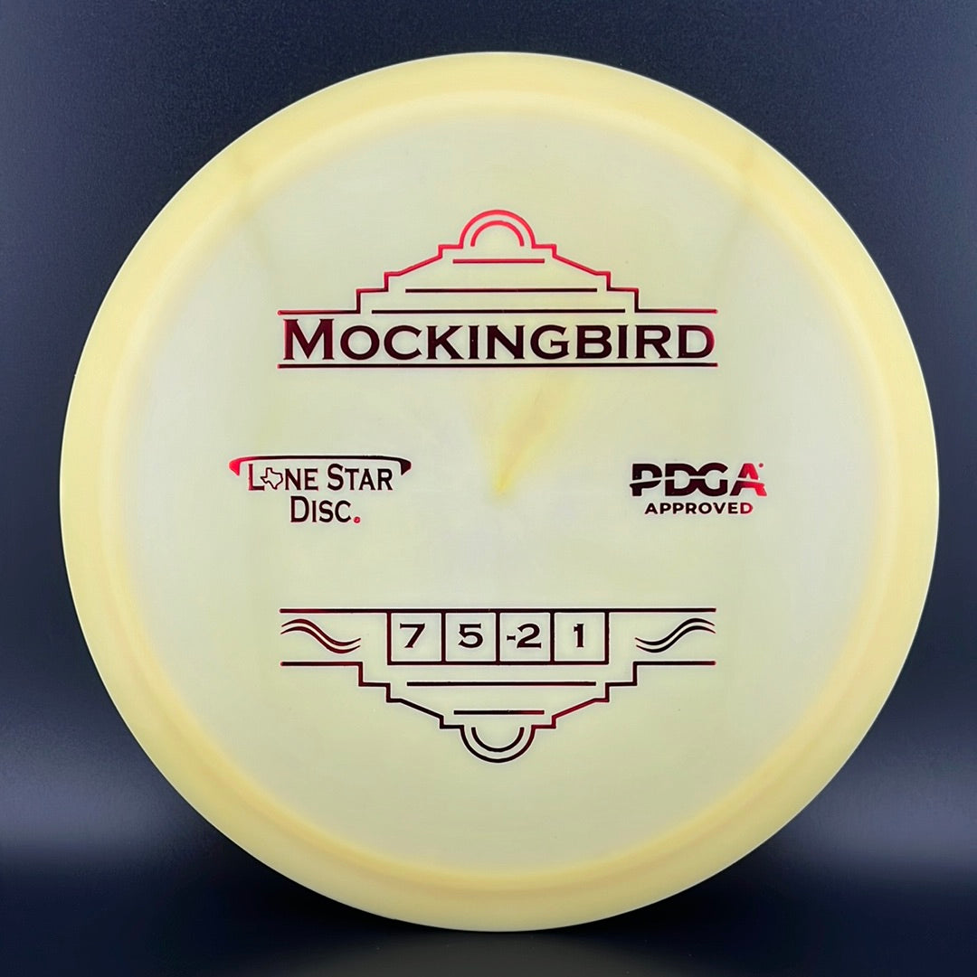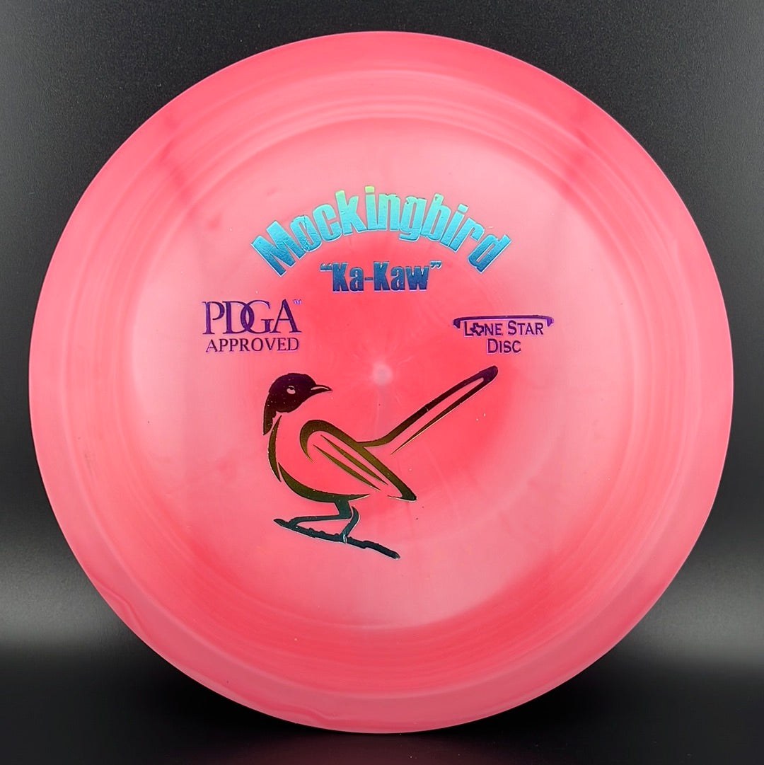 The Mockingbird (Ka Kaw!) is the perfect control driver for beginners and advanced players alike. It has the perfect straight to understable flight that everybody can make use of. It'll fly on any line you throw it on.