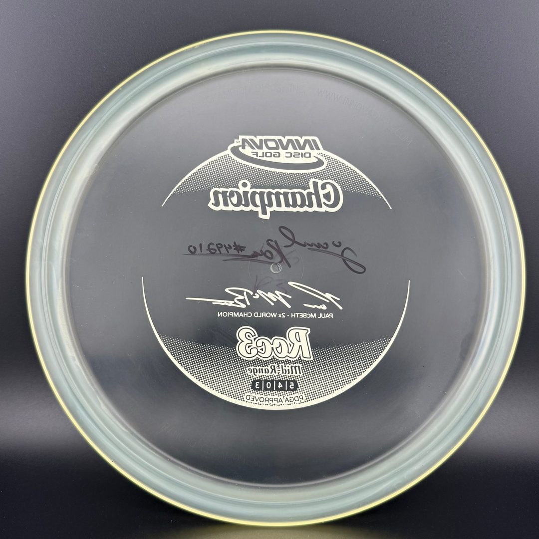 5/4/0/3     *Scan's Stash!  Signed by Jared Roan - a Strong contender back in 2010-2016! Super rare 2013 Champion Roc3 stamped with 2X World Champion Paul McBeth signature line! Penned run with excellent grip, minor storage wear possible.