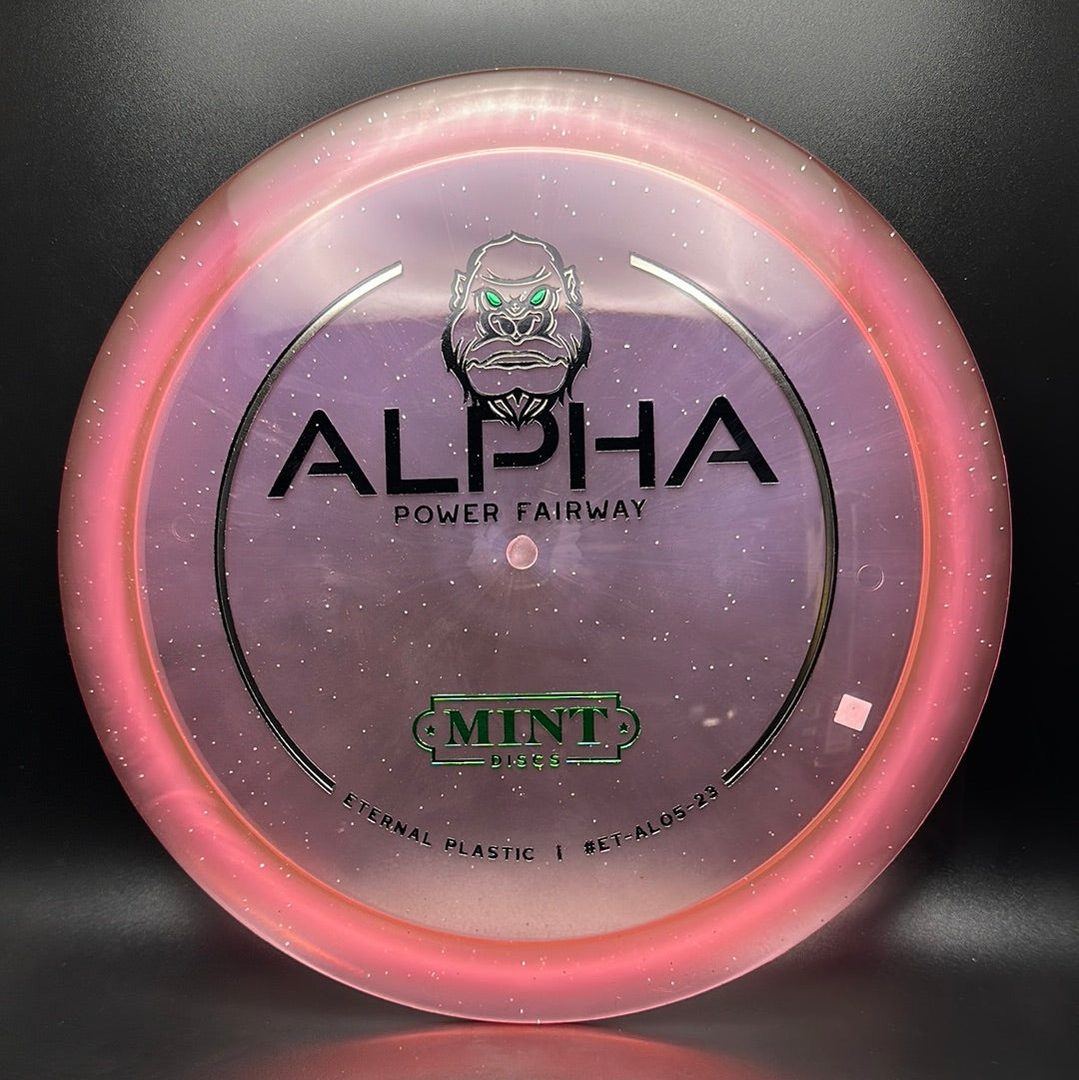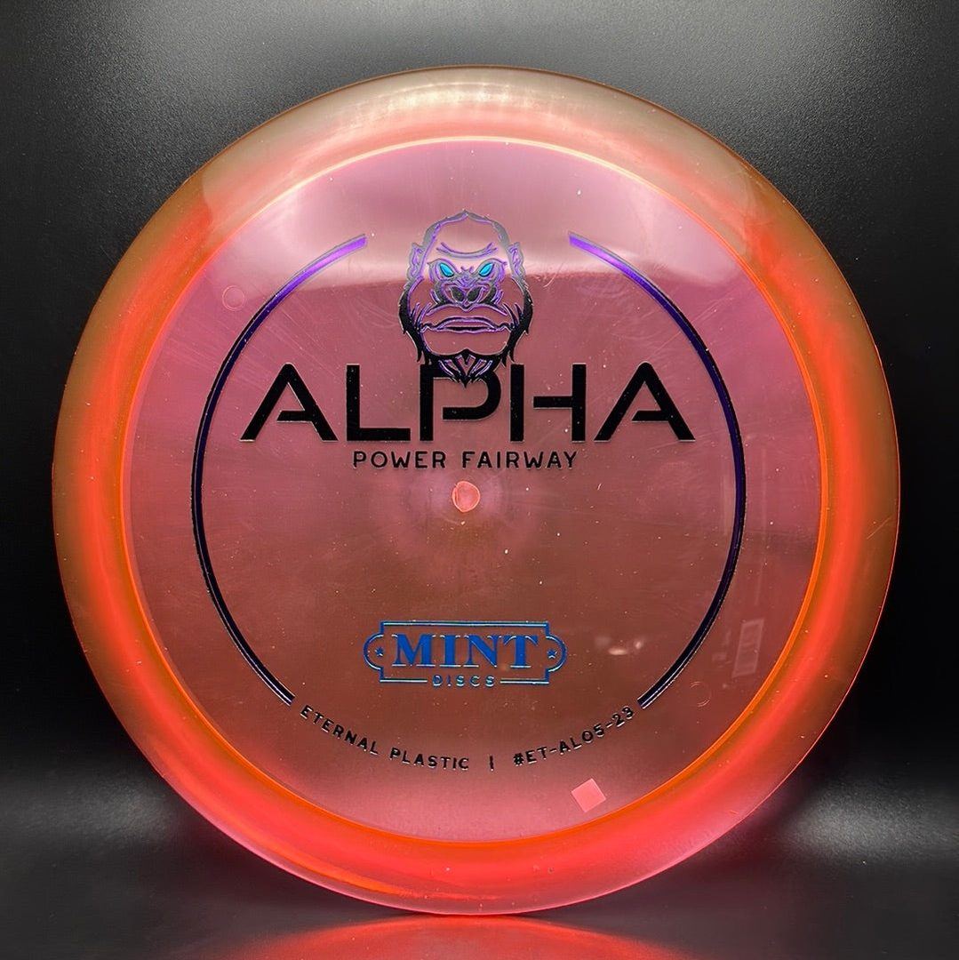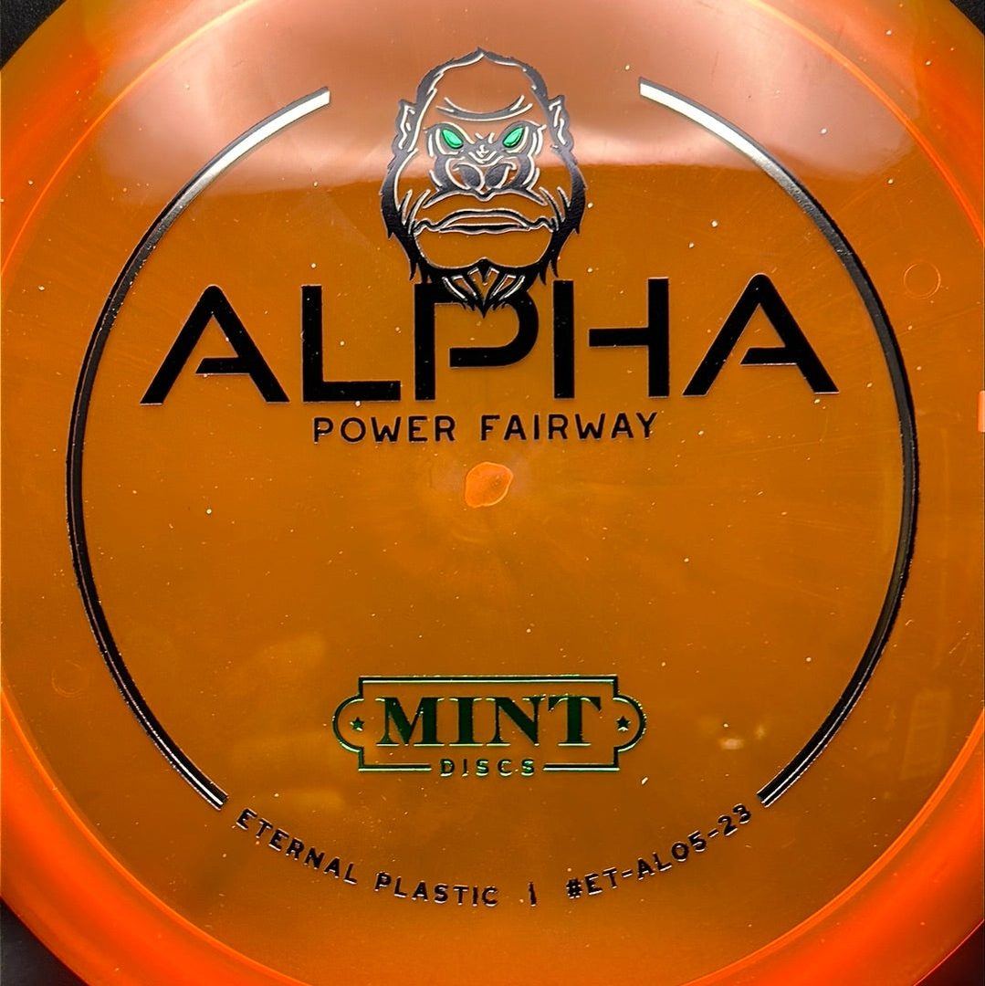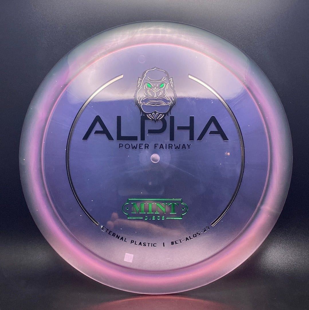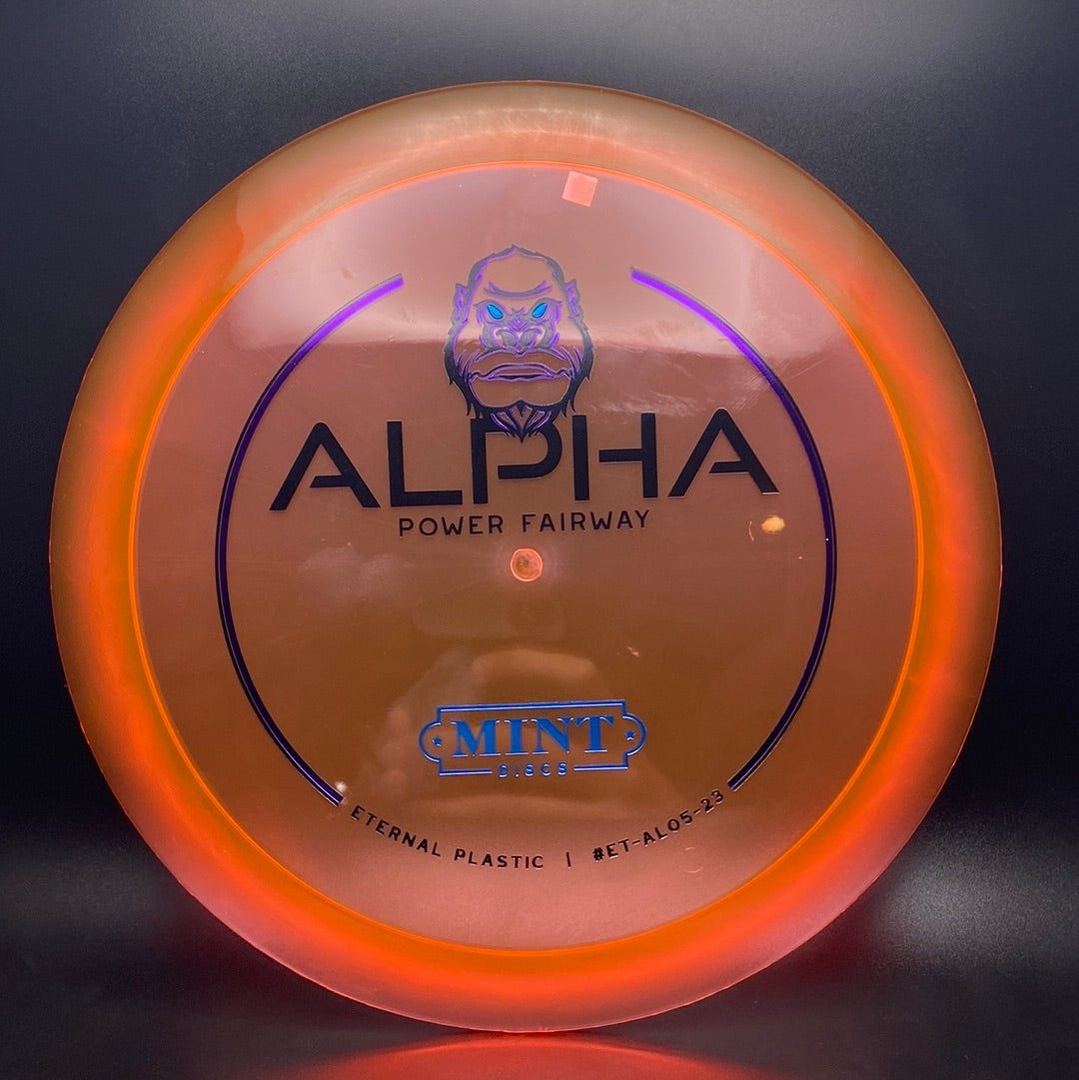 The Alpha is the first disc released by Mint Discs. It is a versatile fairway driver that works for a variety of different situations. This is a true power fairway driver designed to go straight without turning over and then finishing with a reliable fade. This disc is stable enough that it can fight headwinds, but not so overstable that it can't be thrown by newer disc golfers.