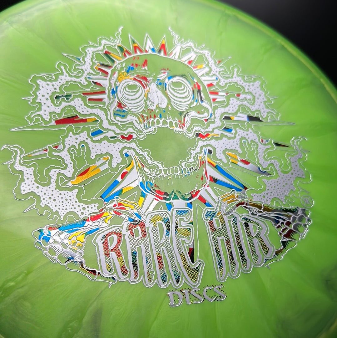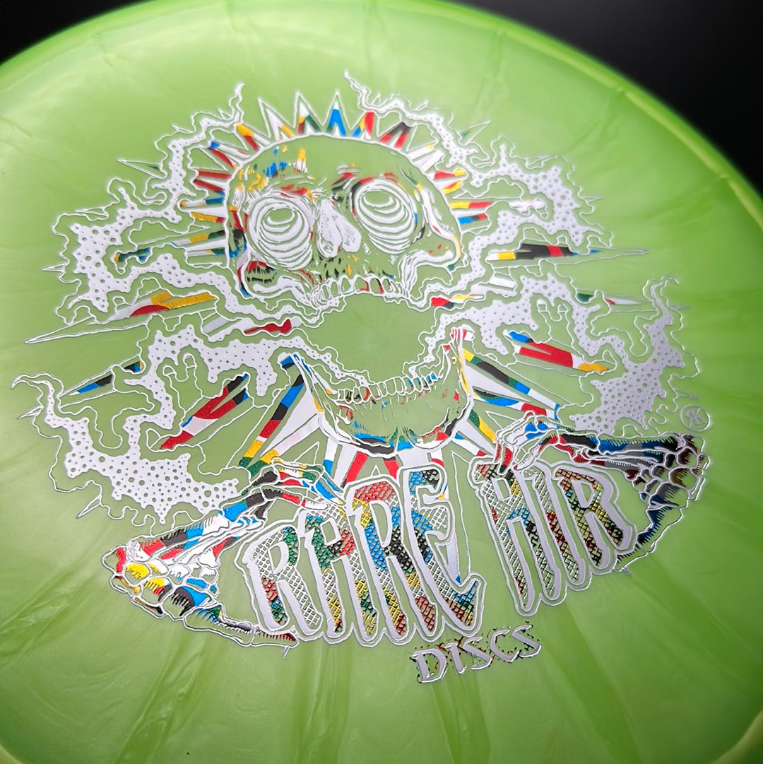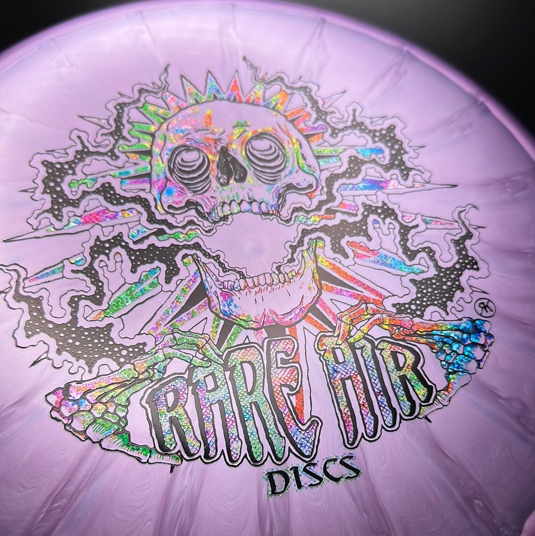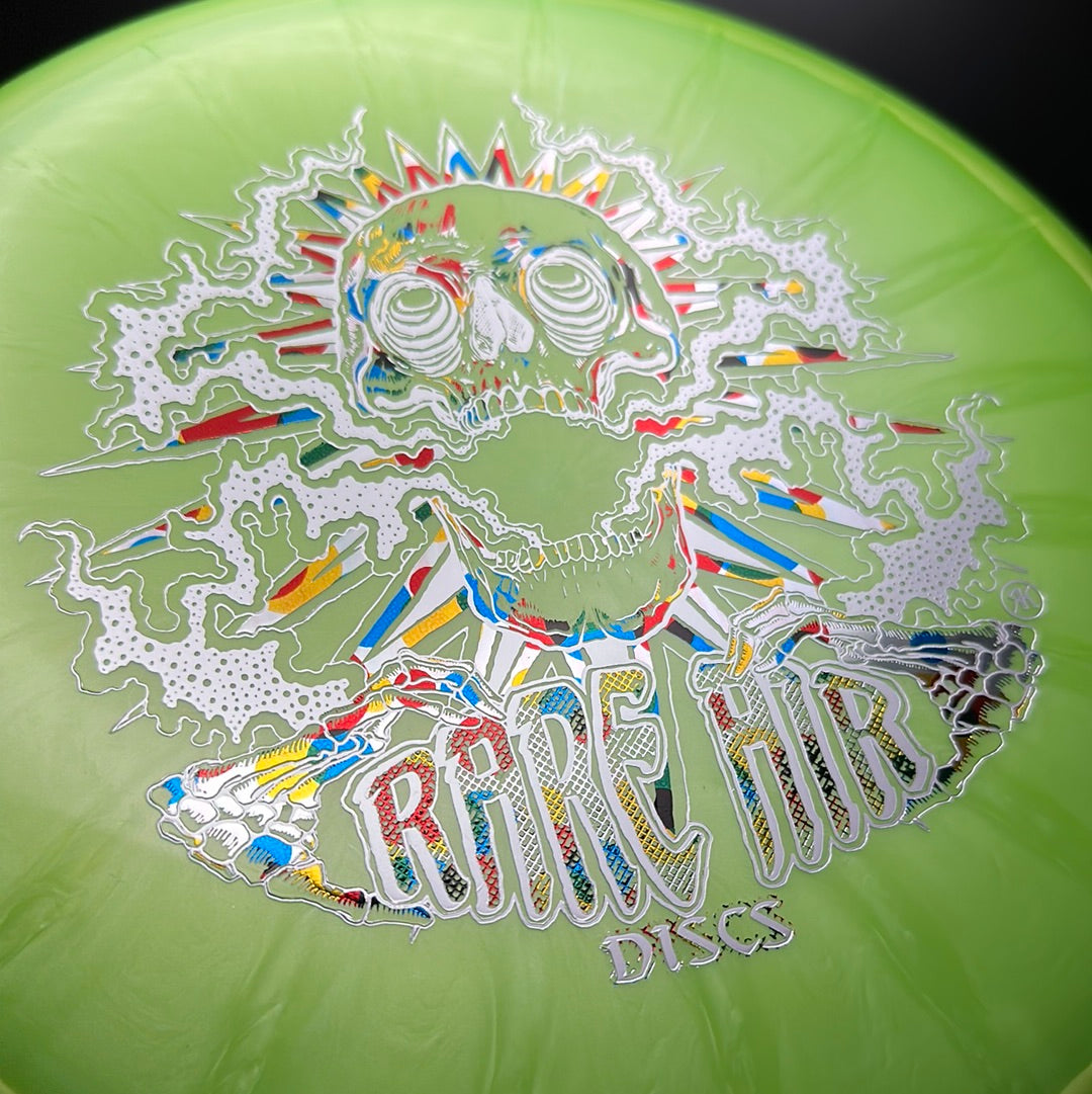 Ethereal plastic looks more on the metallic side featuring cool swirls. Molds ran in this plastic tend to be a little less stable than Aura or Ethos versions. Discs produced in Ethos plastic feature great durability and could be closely considered to that of Innova's G Star plastic, MVP's Plasma or Discraft's Titanium plastic.