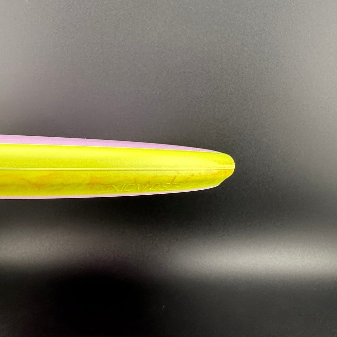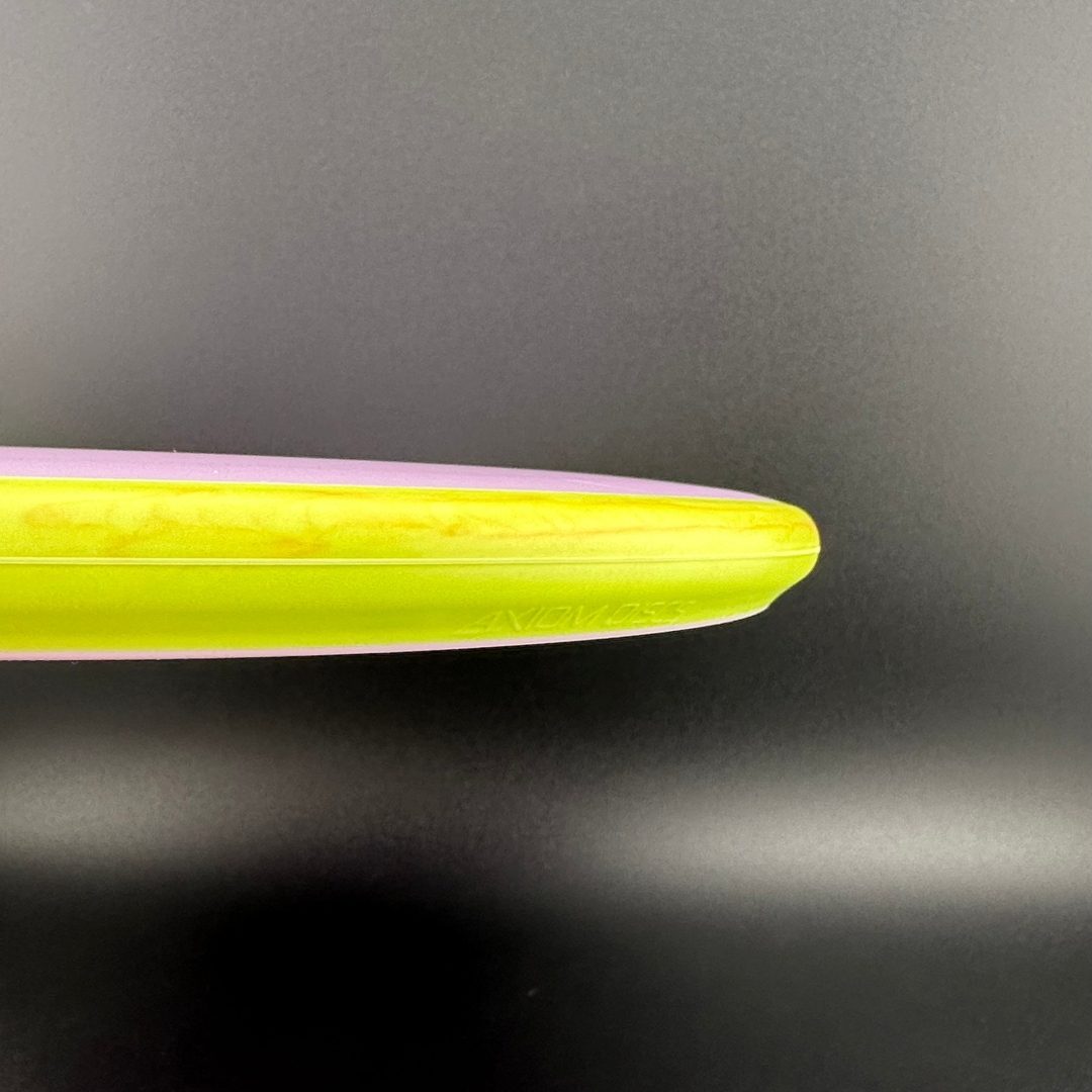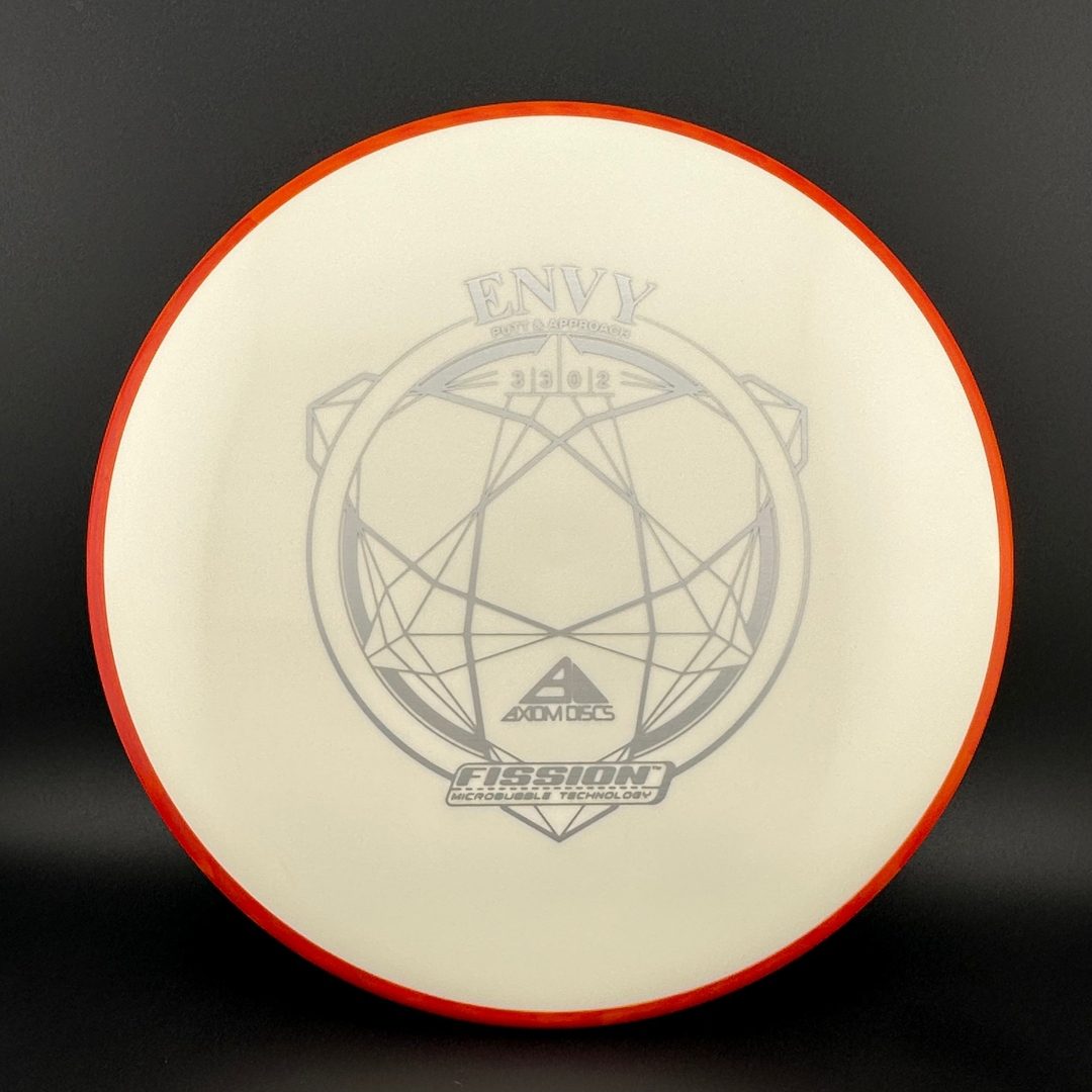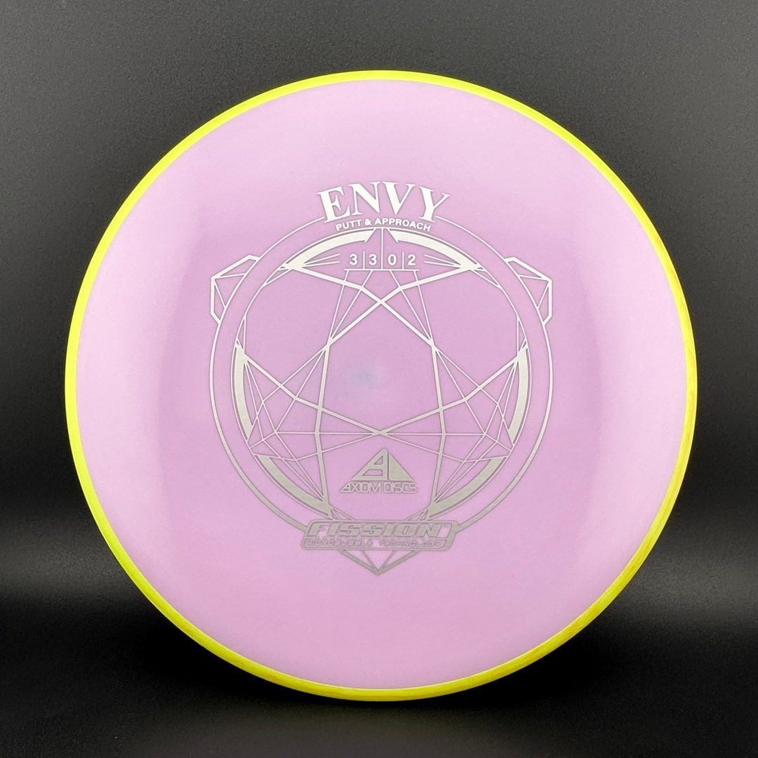 The Axiom Envy is the first putt & approach disc in the new Axiom line. Compared with the MVP Ion and Anode, this disc is beefier and has a thicker wing. The Envy is a slower, more overstable, putter that is stable at high speeds with a dependable drop. It is described as a uniquely “lid-like” putter. This new disc will still feature MVP’s overmold GYRO technology.