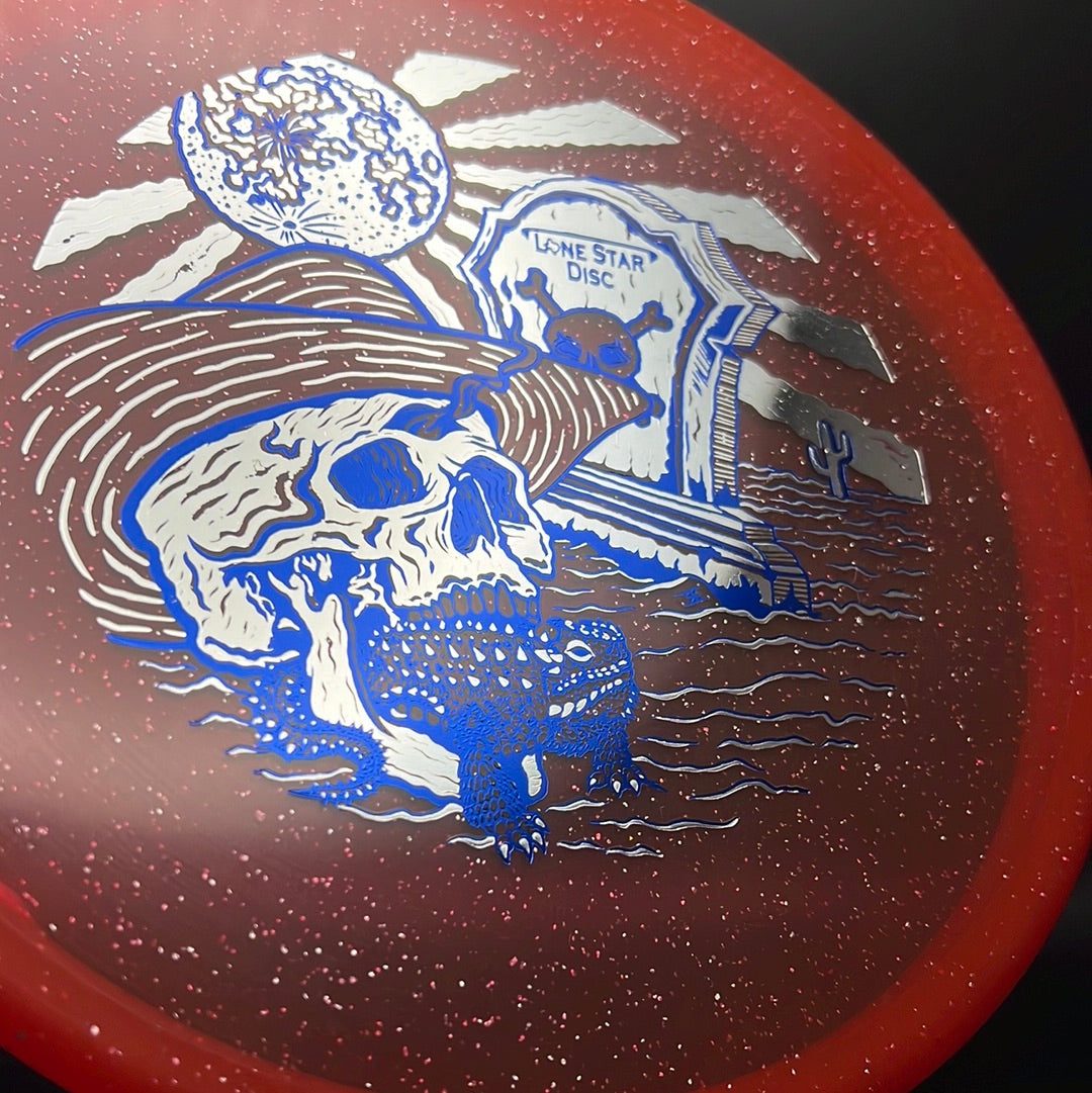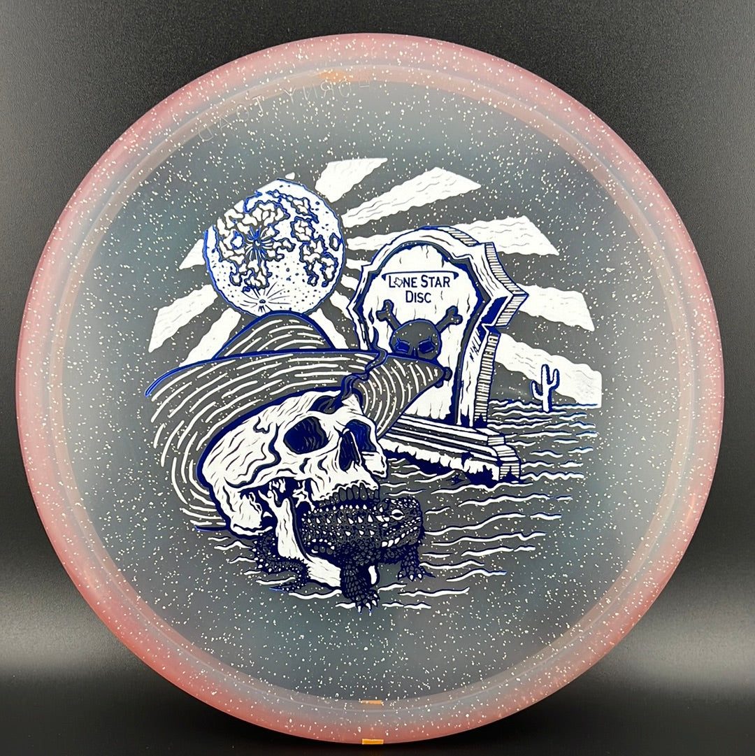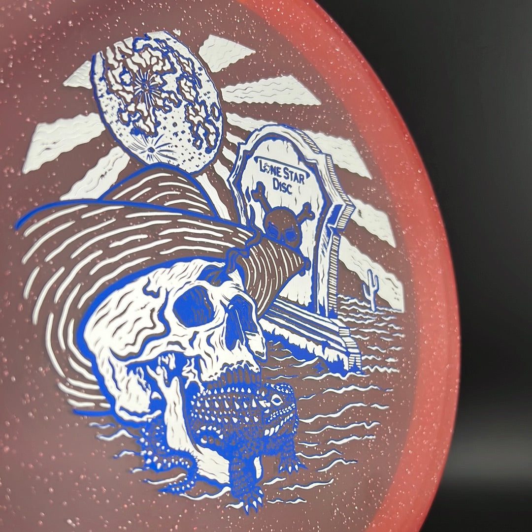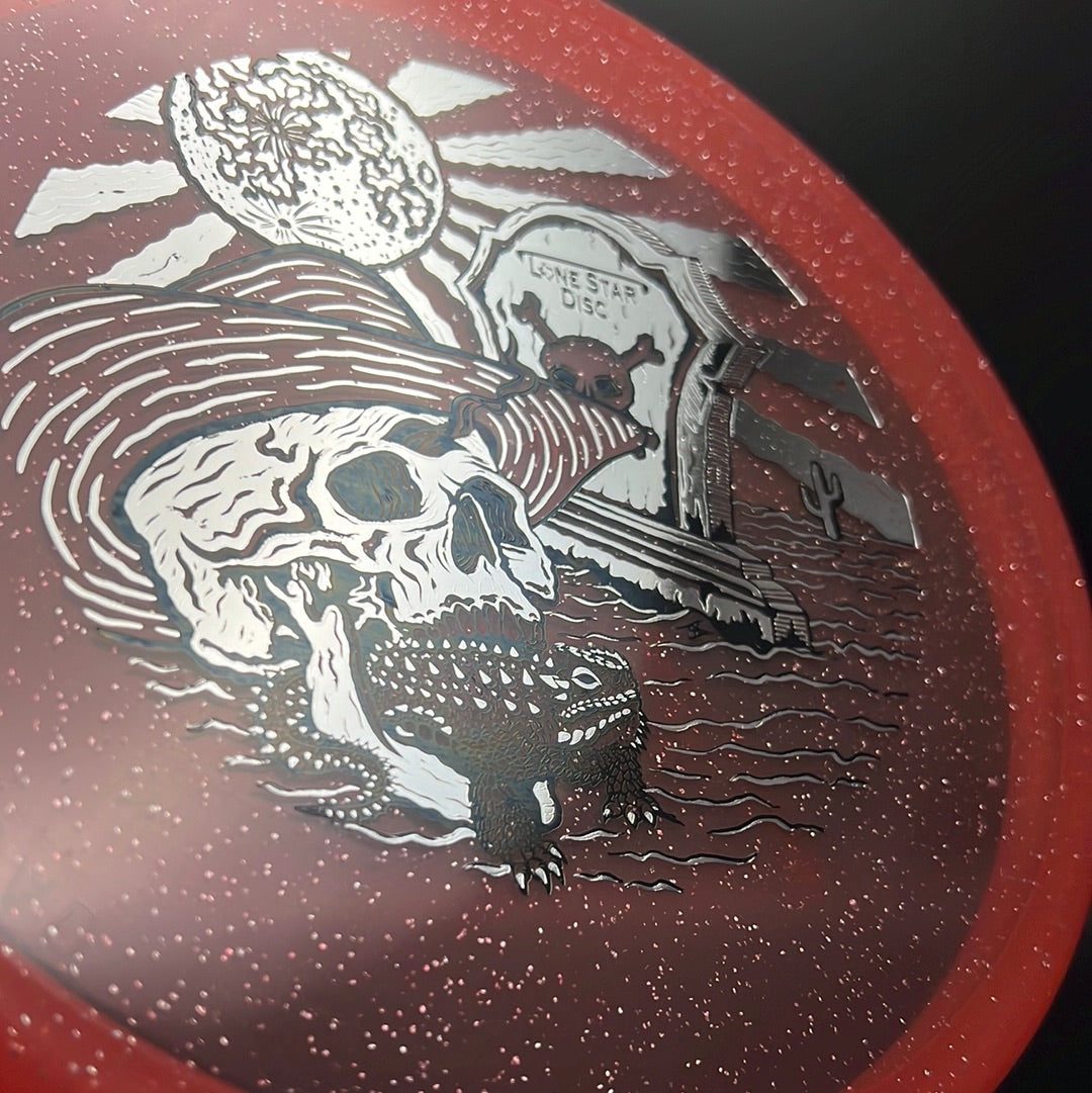 The Lone Star Disc Horny Toad is an overstable putter designed for precise upshots, offering excellent glide and consistent fade. It works well with both high-power backhands and forehands, even in toughest windy conditions.