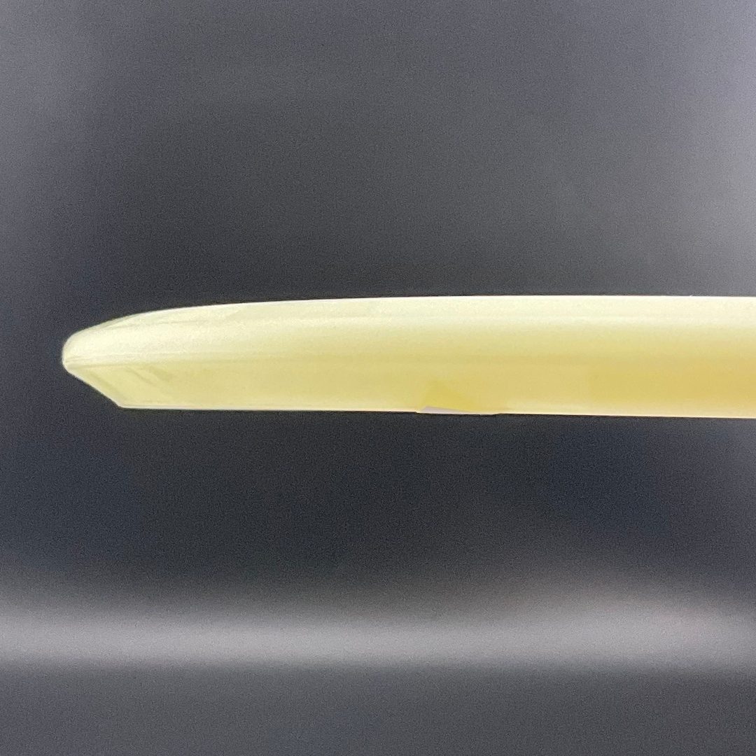 This is a glow-in-the-dark version of C-Blend plastic, which is the equivalent of Innova's Champion plastic. It is a semi-transparent, durable plastic that provides outstanding performance and long life. The Glow C-Blend can be either colored or traditional white glow and often feels slightly more gummy than typical C-Blend plastic.