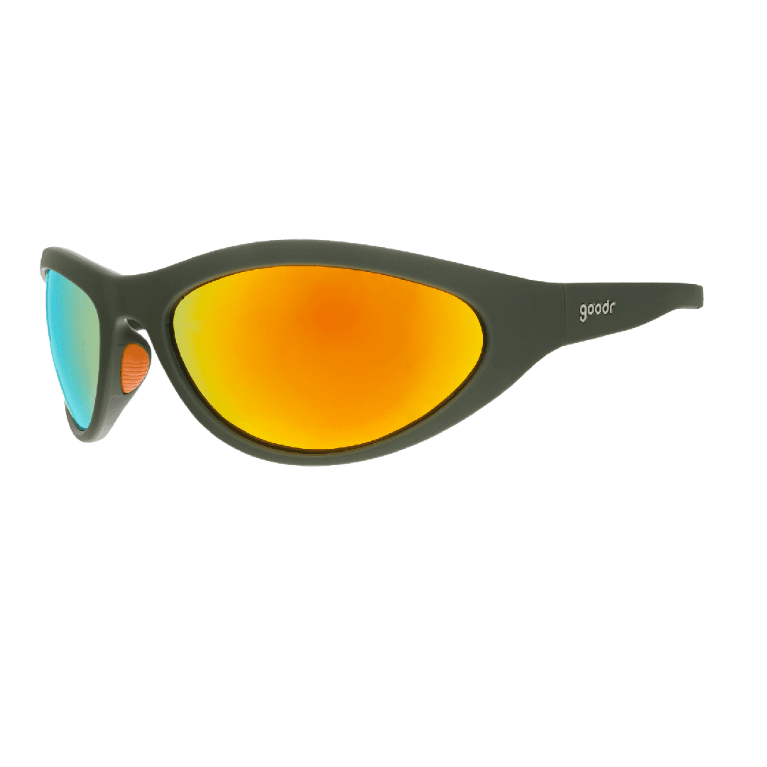 If you didn't get grass stains on your pants, did you even play, bro?! These aerodynamic, green wrap-around sunglasses with amber reflective lenses won't slip or bounce while you slide into home base (or the grass stain hall of fame).