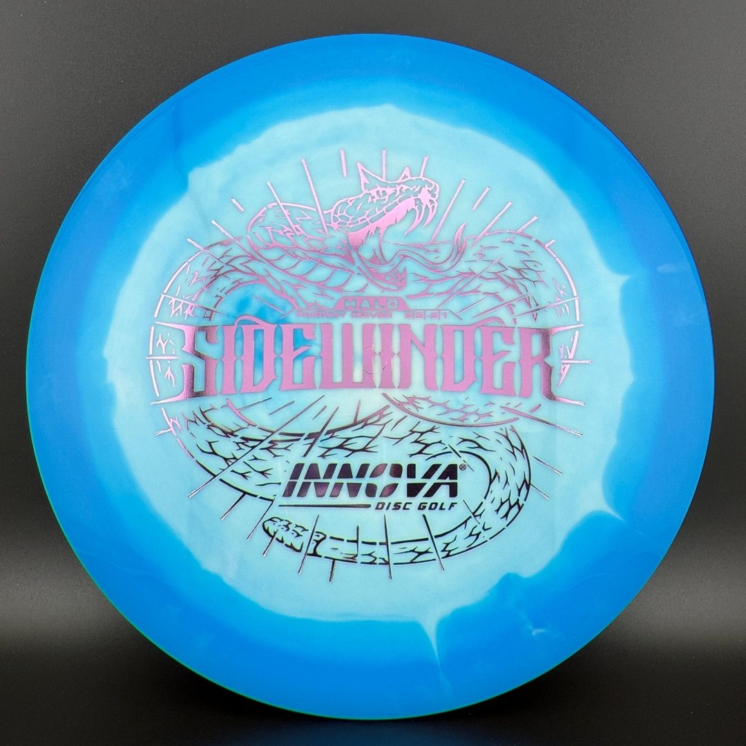 The Sidewinder is a fast flyer with a predictable high speed turn and lots of glide. This disc can add distance to anyone’s drive, but is especially useful for those with less power. The Sidewinder is our best disc for long turnover shots and long distance rollers. Grab the extra glide and superior looks with the Halo Star material!
