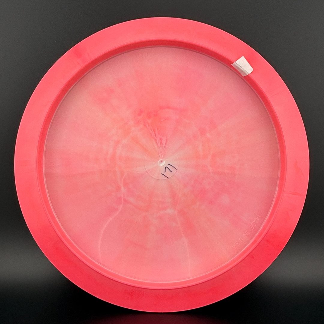 Halo Star is a decorative blend of Star plastic featuring a colorful halo design where the rim is a distinctly different color than the center plate of the disc. Halo discs are slightly more overstable to start than Star counterparts. The pearly rim is noticeably firmer than the Star flight plate - providing the disc with additional durability for a long lifetime of flight.