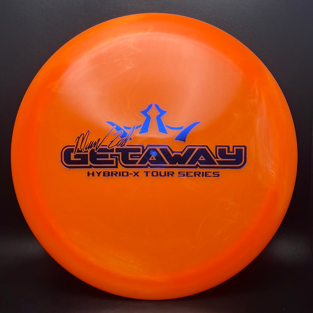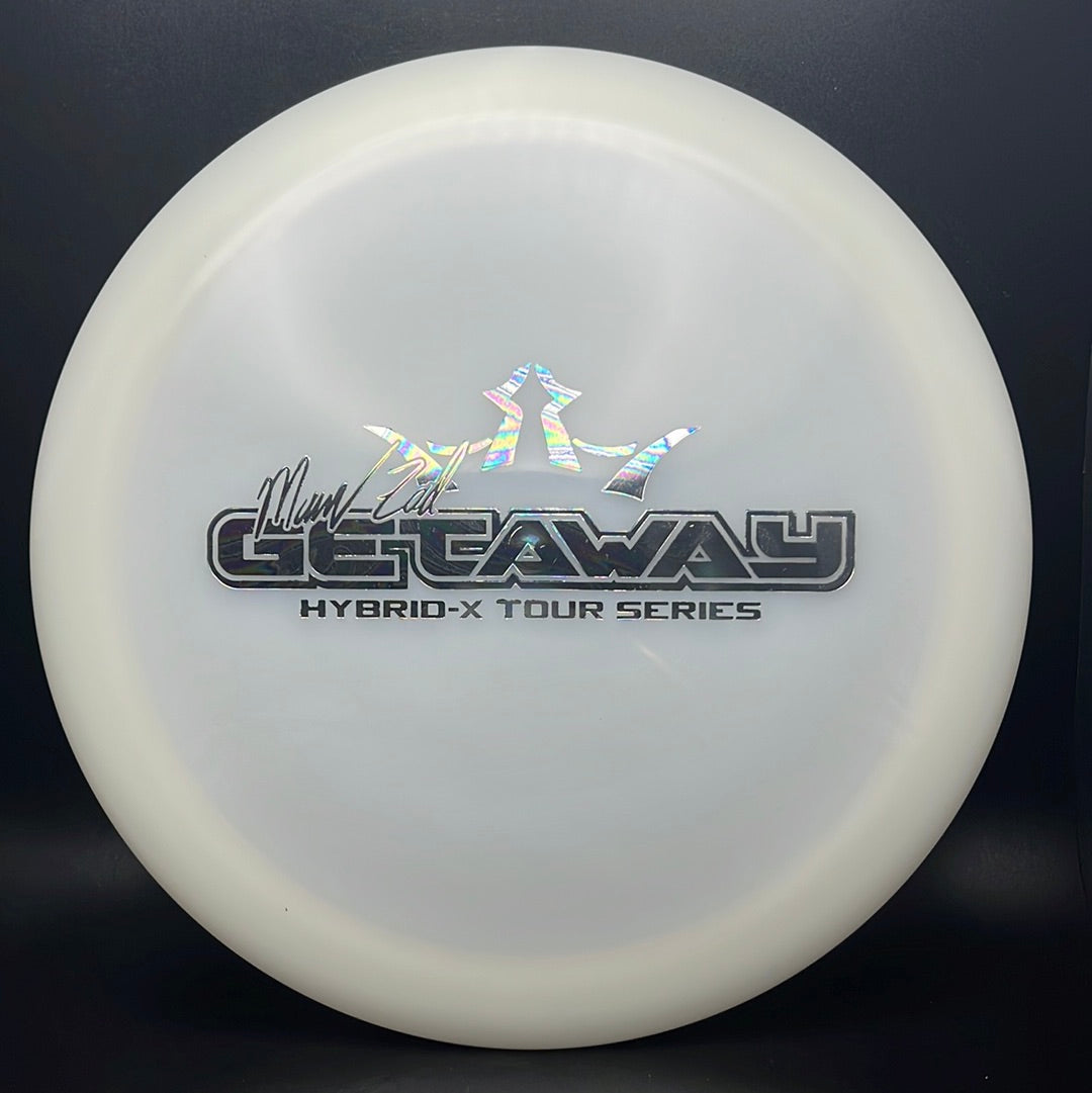 Hybrid-X is a slightly stiffer plastic that results in more overstable flights. Hybrid is incredibly similar to Lucid plastic with some additional coloring added to give it a milky look. It also includes a better grip. It is durable enough to take a beating and maintain the original flight characteristics of the disc for many rounds of disc golf.