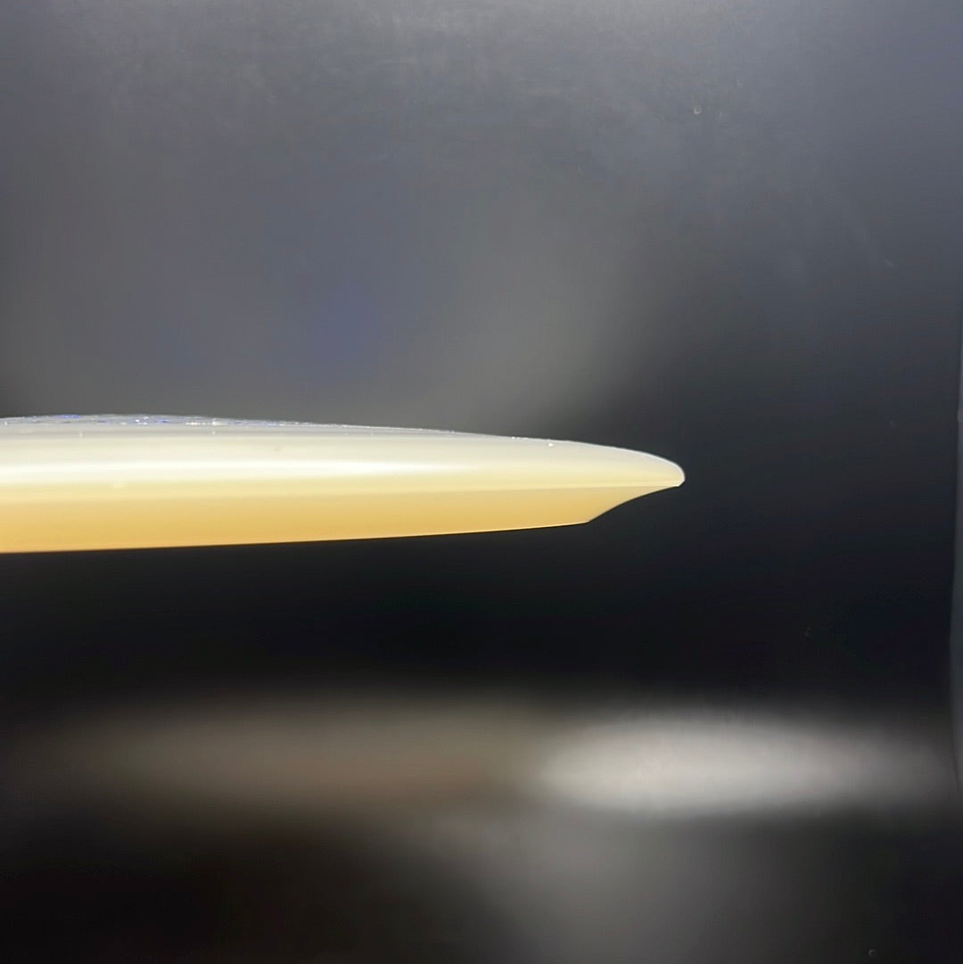 Hybrid-X is a slightly stiffer plastic that results in more overstable flights. Hybrid is incredibly similar to Lucid plastic with some additional coloring added to give it a milky look. It also includes a better grip. It is durable enough to take a beating and maintain the original flight characteristics of the disc for many rounds of disc golf.