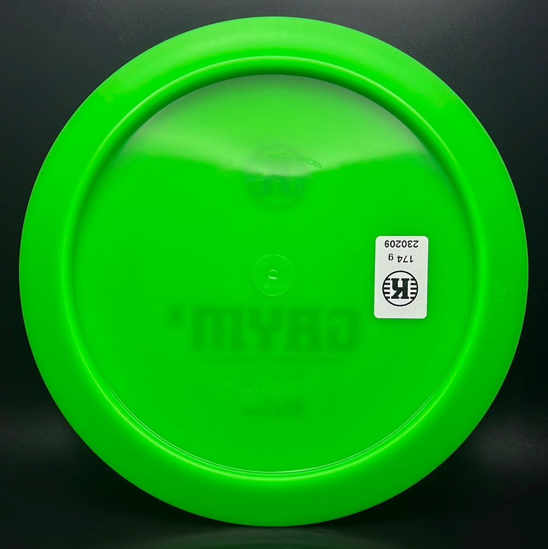 This is the overstable compliment to the Grym by Kastaplast; the K1 Glow Grym X! This driver is overstable in flight, primarily suited for those with faster arm speeds. K1 Glow plastic is very grippy, moderately rigid, very durable, and glows like it is radioactive!