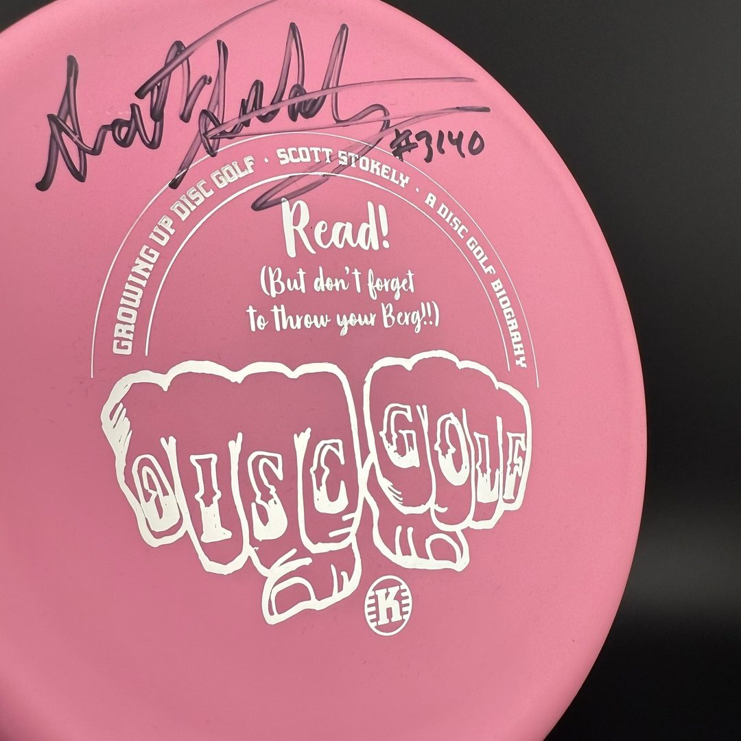 1/1/0/2  *From Scan's Stash comes Scott Stokely's signed book "Growing Up Disc Golf" and a signed K3 Berg!  Bundle Only!  Minor storage wear possible on berg.