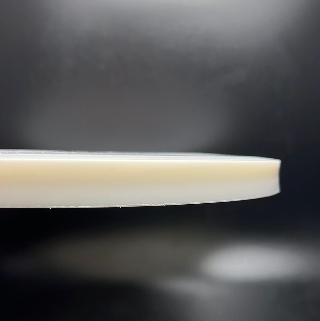 Weapons Grade plastic in the Munitions Line from Doomsday Discs is a low-cost, base plastic blend best used on putt and approach discs. It is a stiff blend to hold the disc shape and to better survive the rigors of harsh, futuristic climates. It can get dinged up with vigorous, longterm use, like other base-line plastics. But a plentiful stockpile will help players prepare for the coming doomsday.