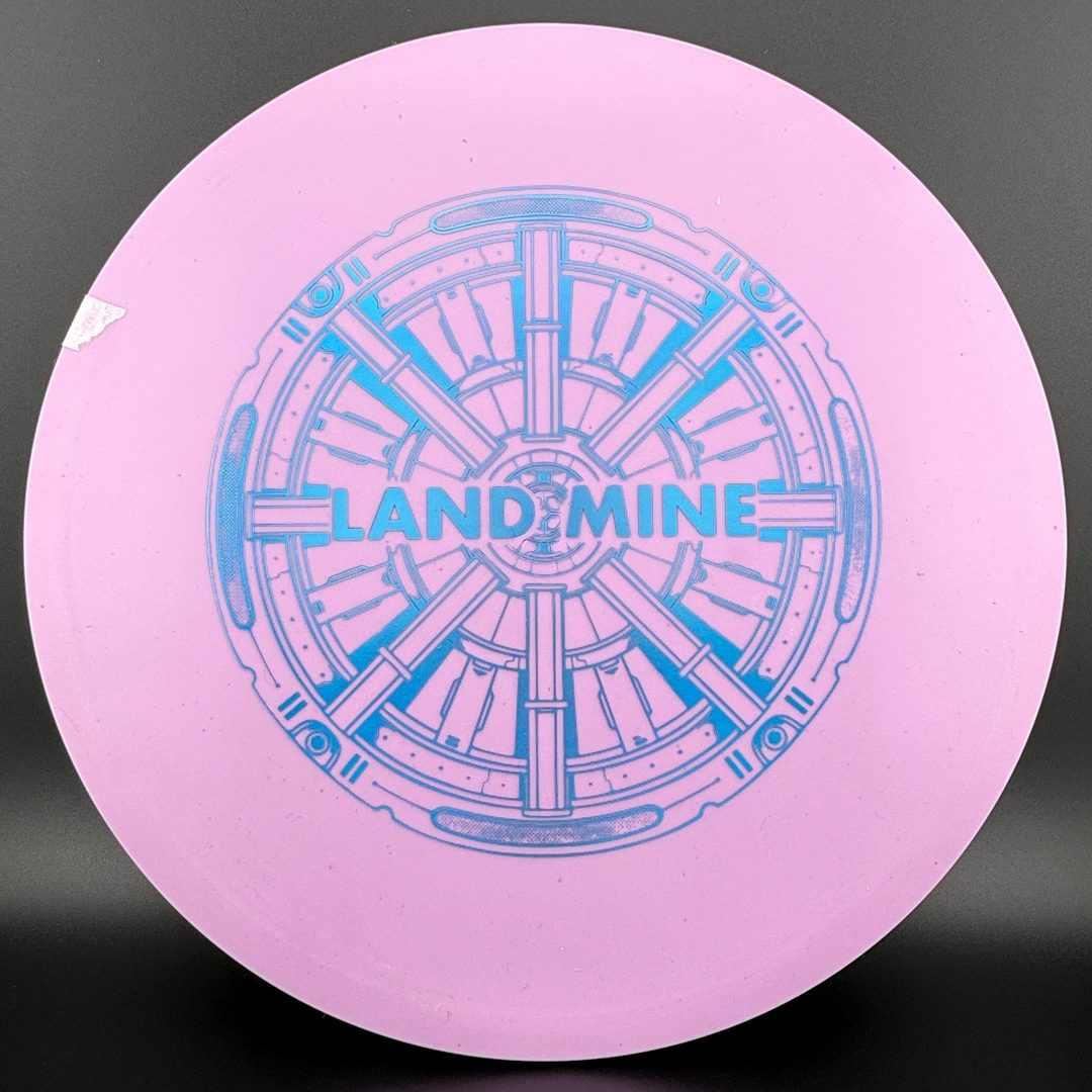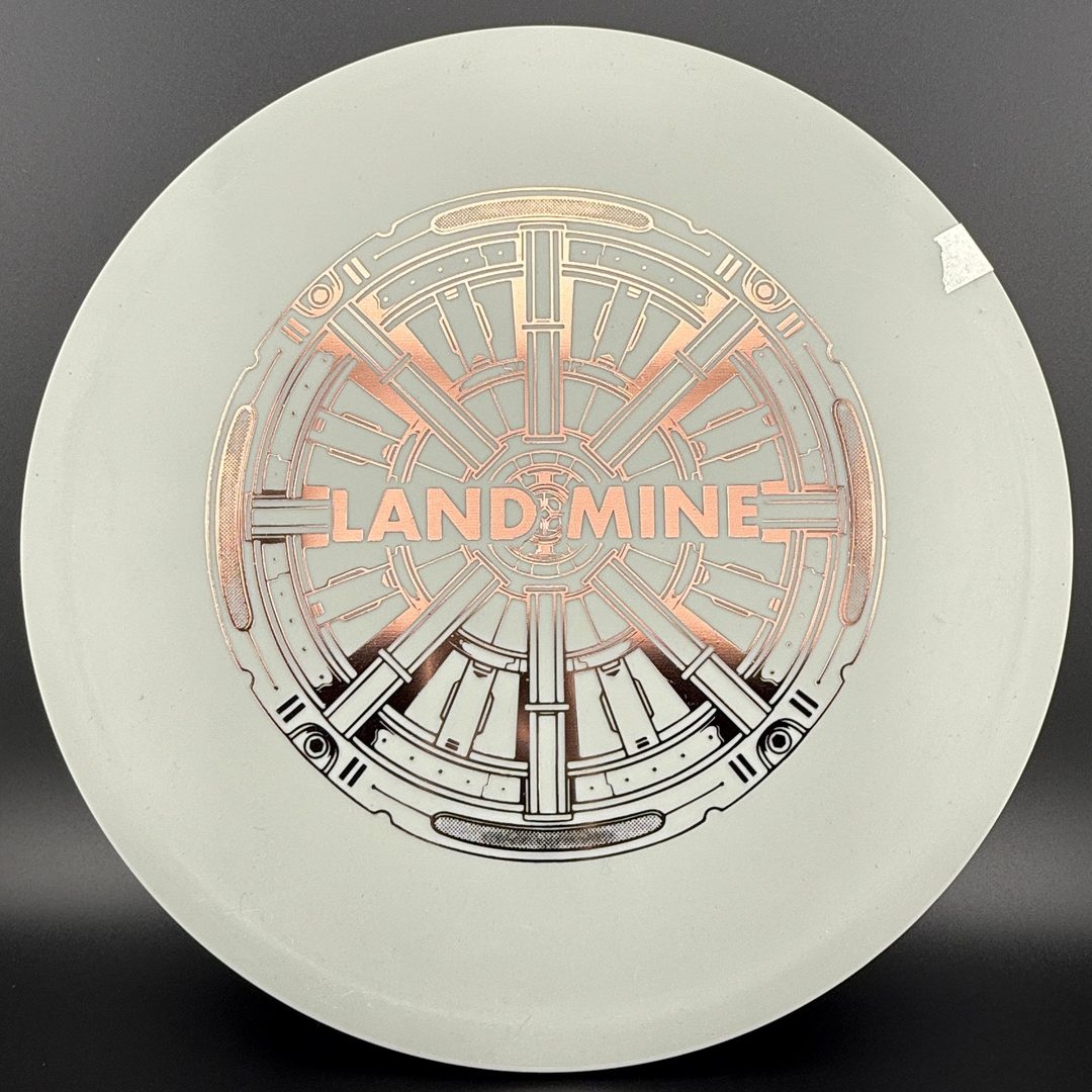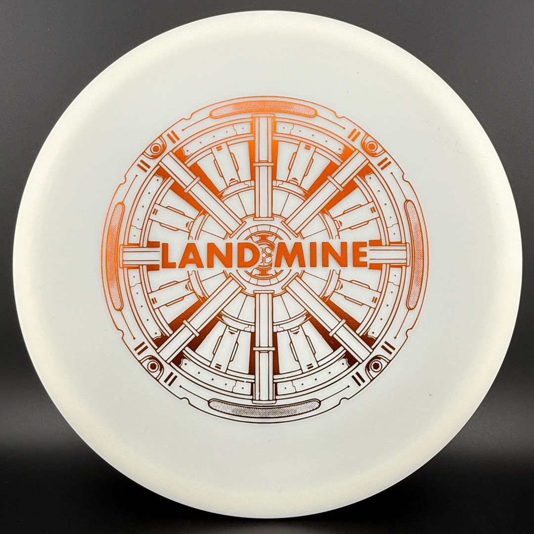 The Land Mine by Doomsday Discs is part of the Munitions Line of experimental, unique discs. The Land Mine as an approach putter that has a unique shape with a boxy, blunt leading edge on a thick rim that is wider than most putters. The shape helps to slow down the disc's flight and makes it easy to control with both forehand and backhand throws. This is an ideal approach putter that holds its line and finished by dropping downward without fading too dramatically, allowing you to park it near your desired target without veering off course.