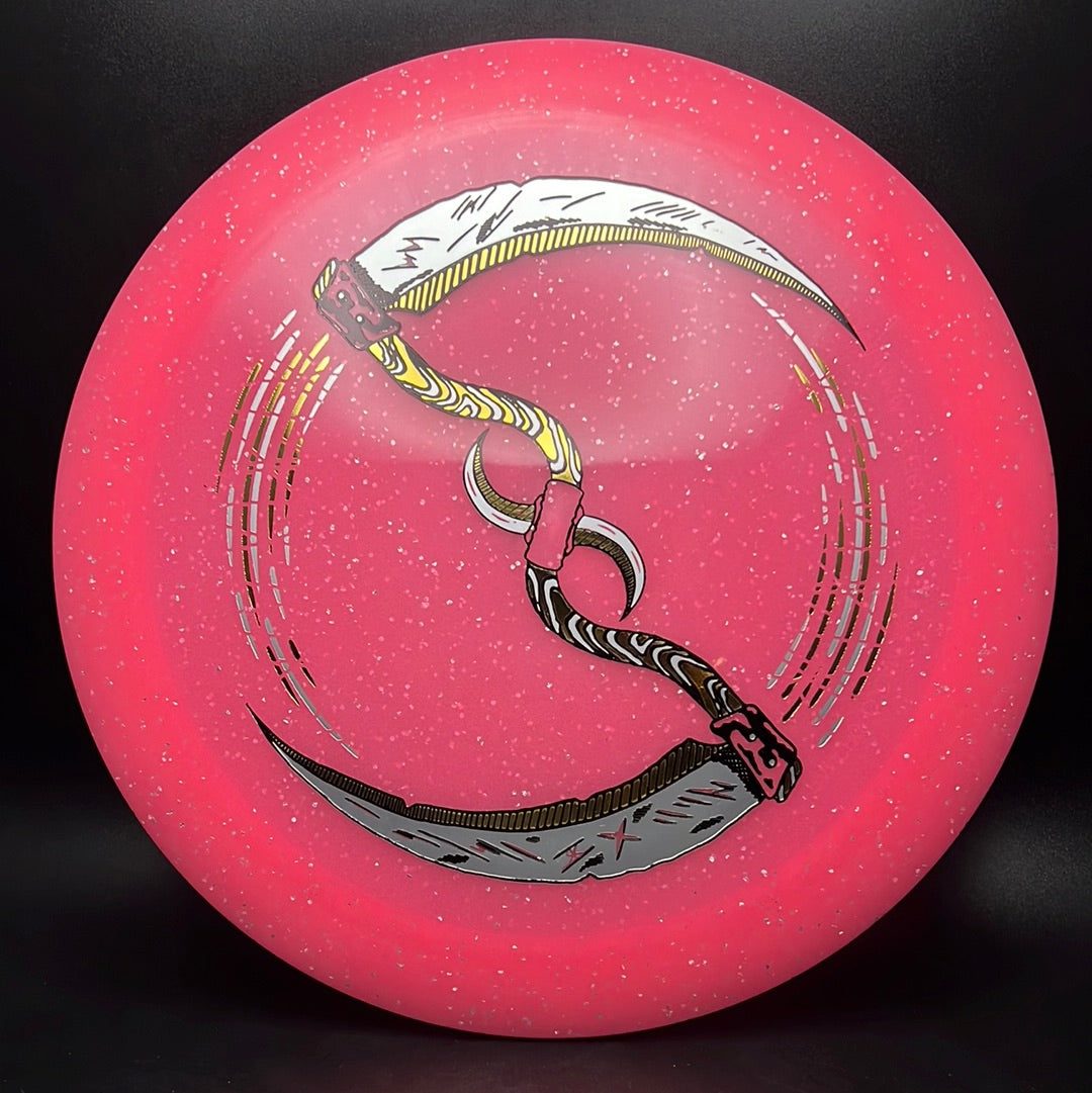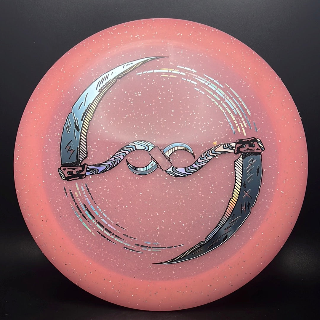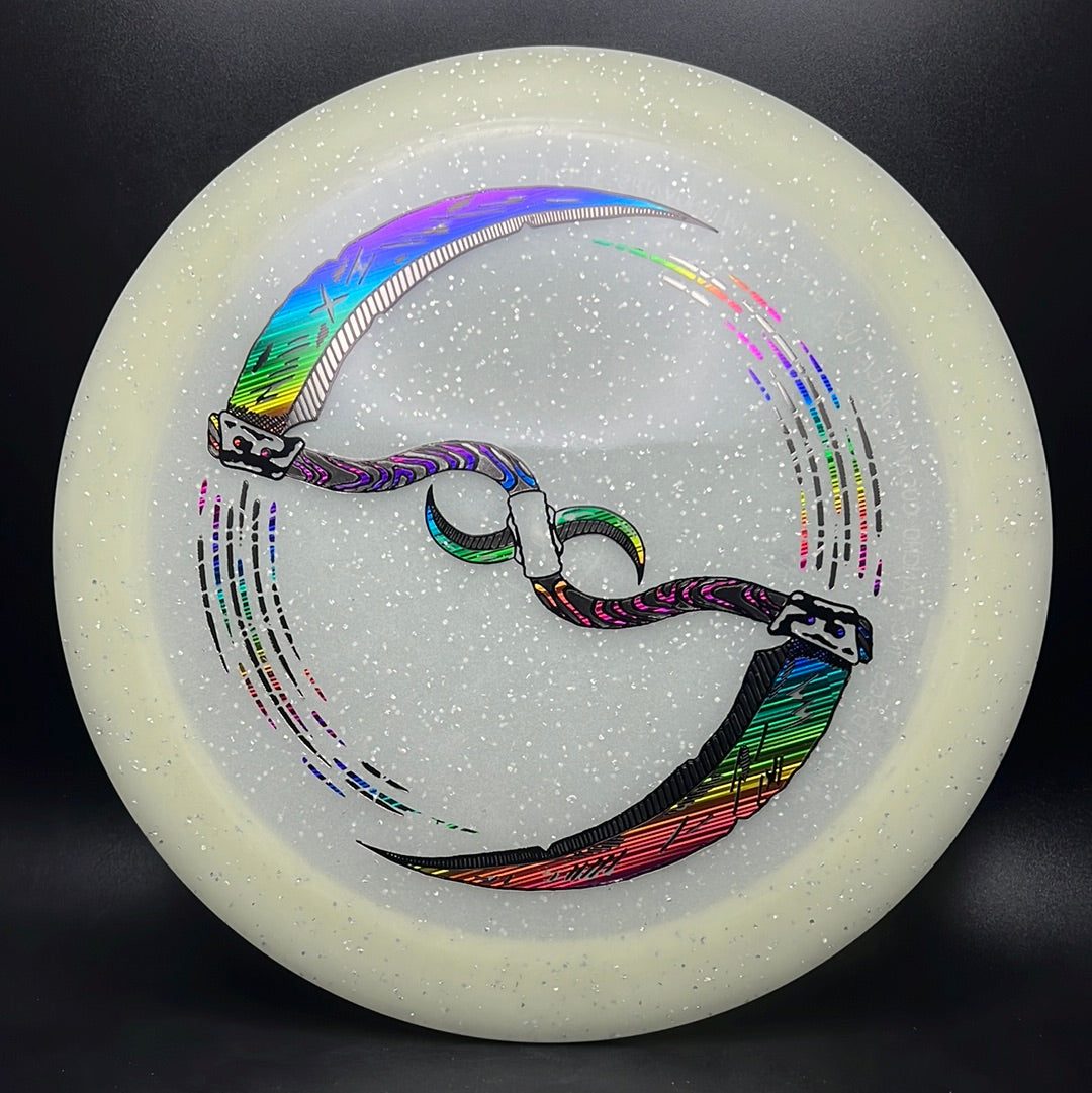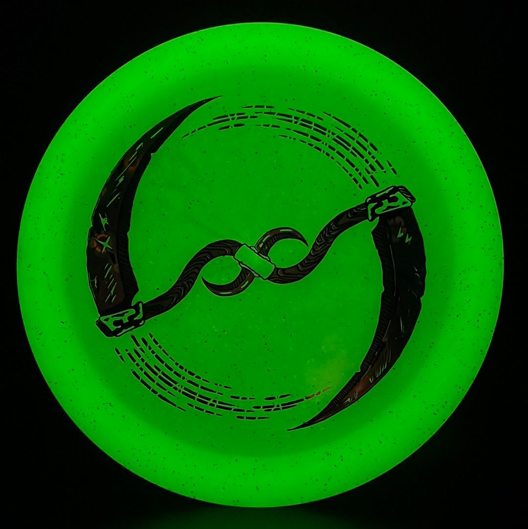 The Metal Flake Glow C-Blend plastic is a mixture of Glow C-Blend (with or without color) and metal flakes. It has been said that the Metal Flake Glow C-blend plastic contributes to a more stable flight.