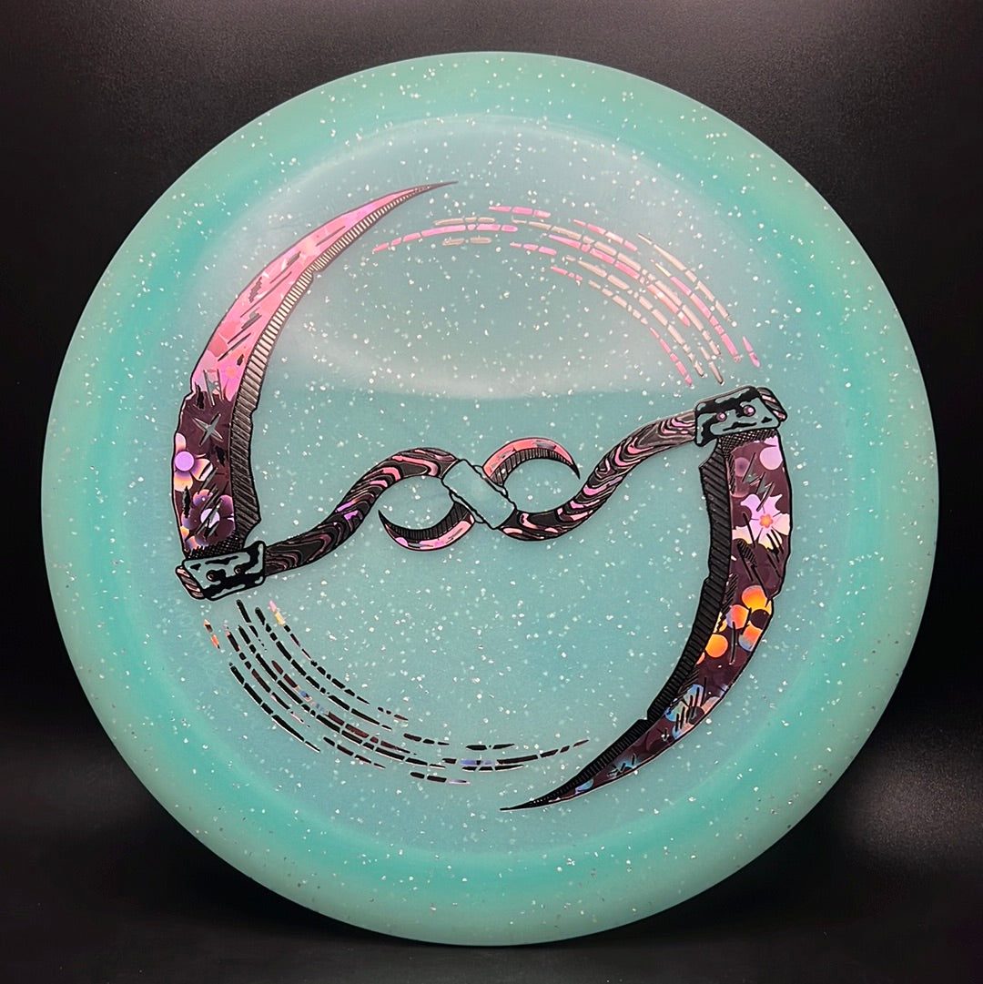 10/5/-1/2 *Innova made Metal Flake Glow C-Blend Aztec! Customer Favorite! Limited VIP run of the triple foil stamp Infinity Blade. Some blue's are flat, rest have dome - see profile pictures.