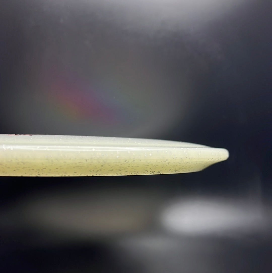 The Metal Flake Glow C-Blend plastic is a mixture of Glow C-Blend (with or without color) and metal flakes. It has been said that the Metal Flake Glow C-blend plastic contributes to a more stable flight.