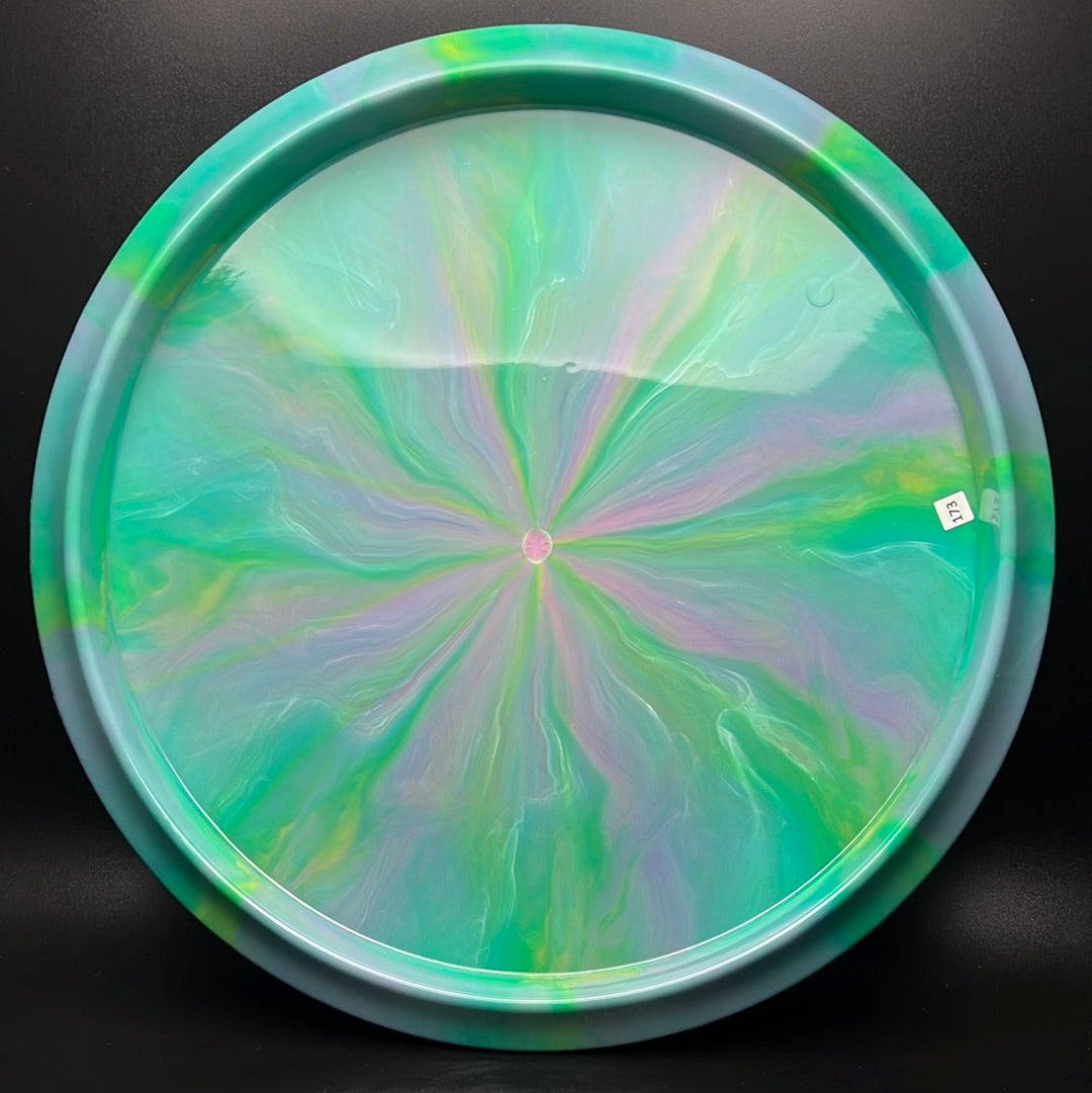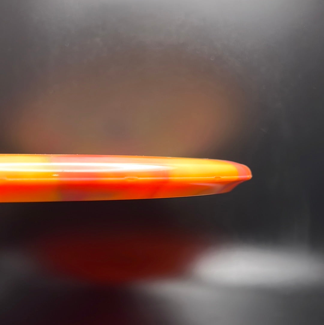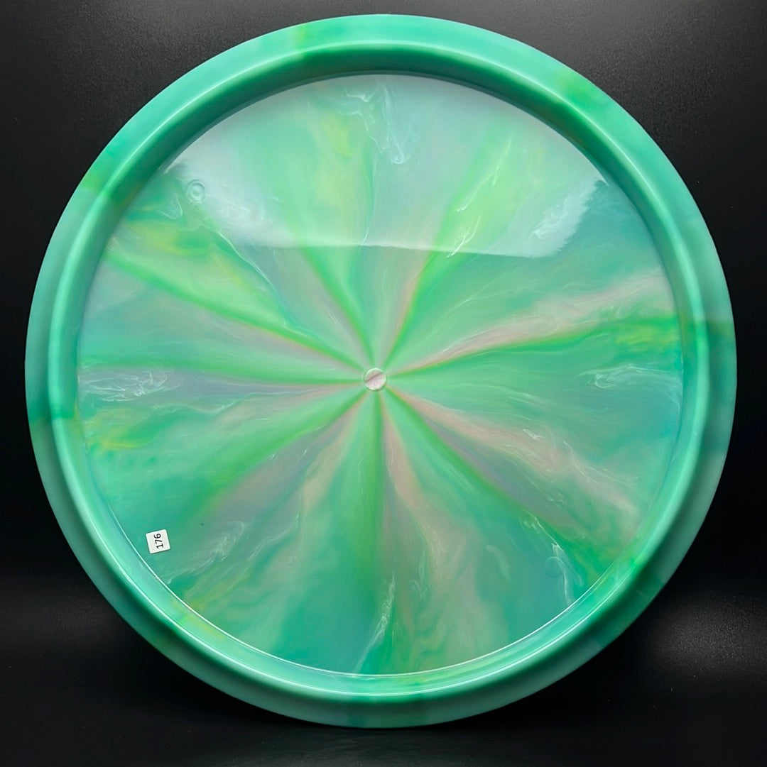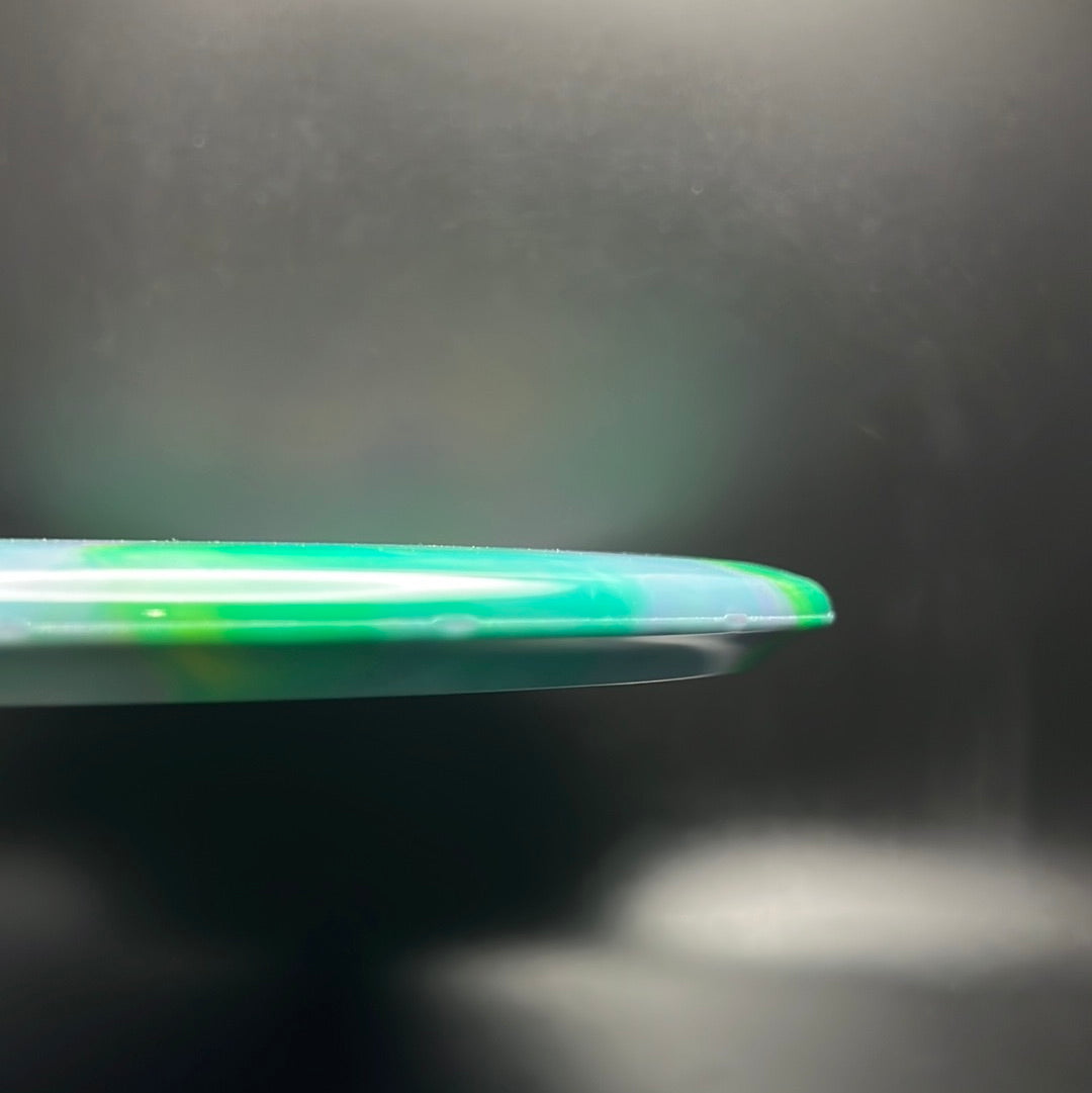 Nebula Aura is a special plastic blend with decorative swirls in bursty patterns. It has an opaque look with great durability and good grip, preferred for most drivers and throwers.