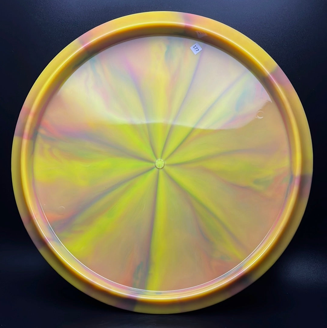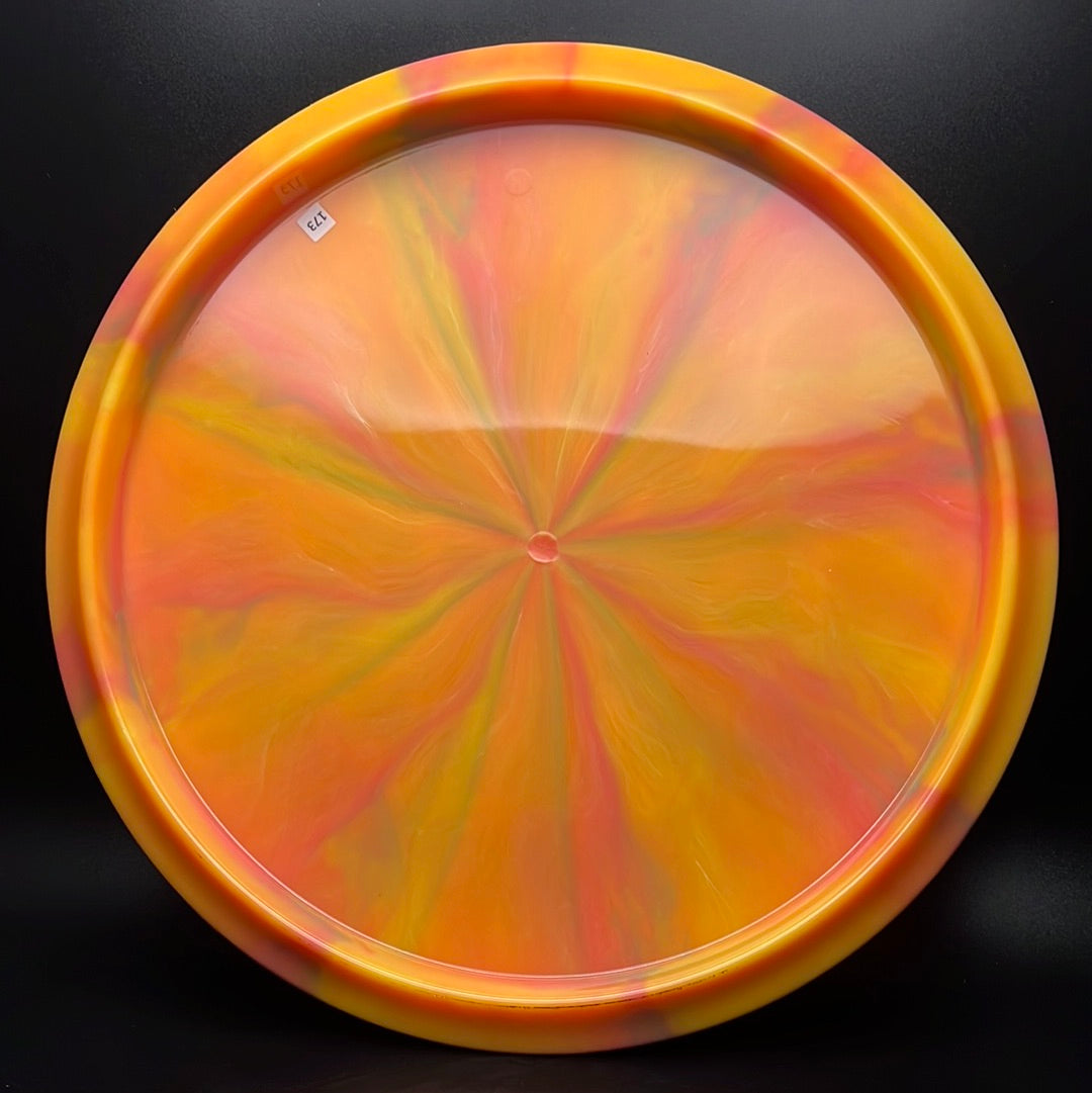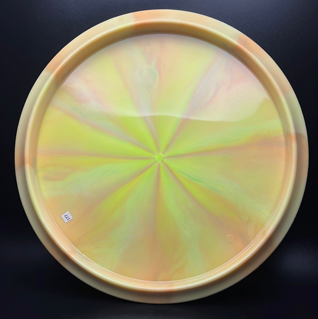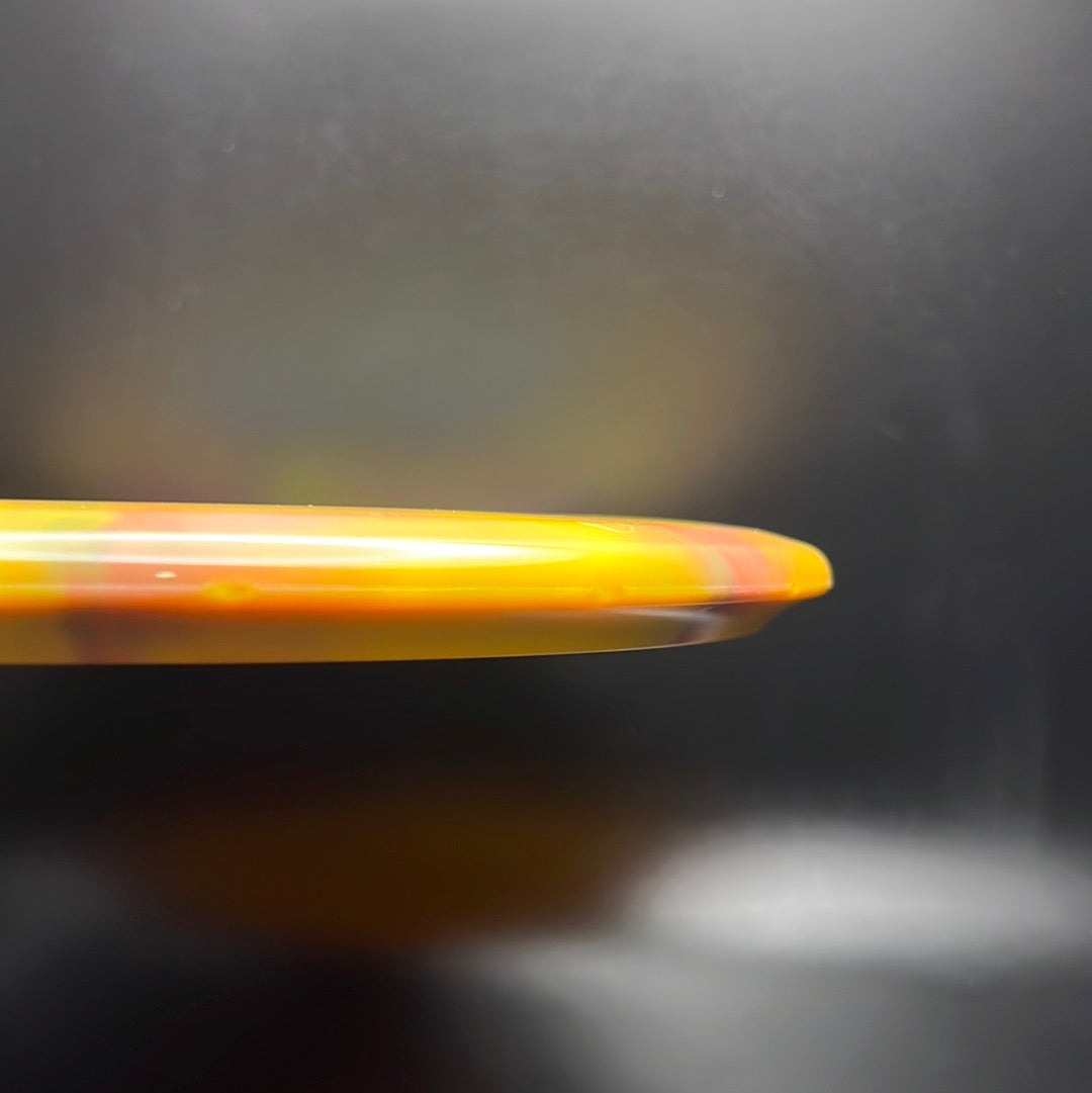 Nebula Aura is a special plastic blend with decorative swirls in bursty patterns. It has an opaque look with great durability and good grip, preferred for most drivers and throwers.