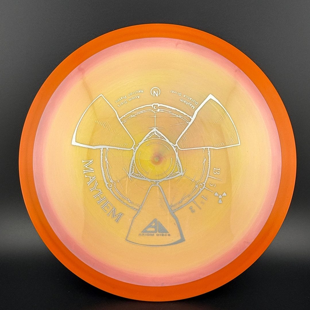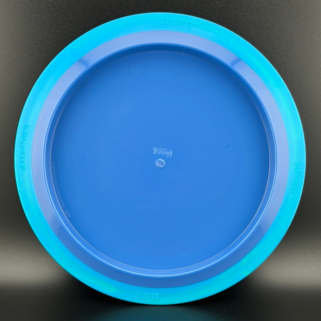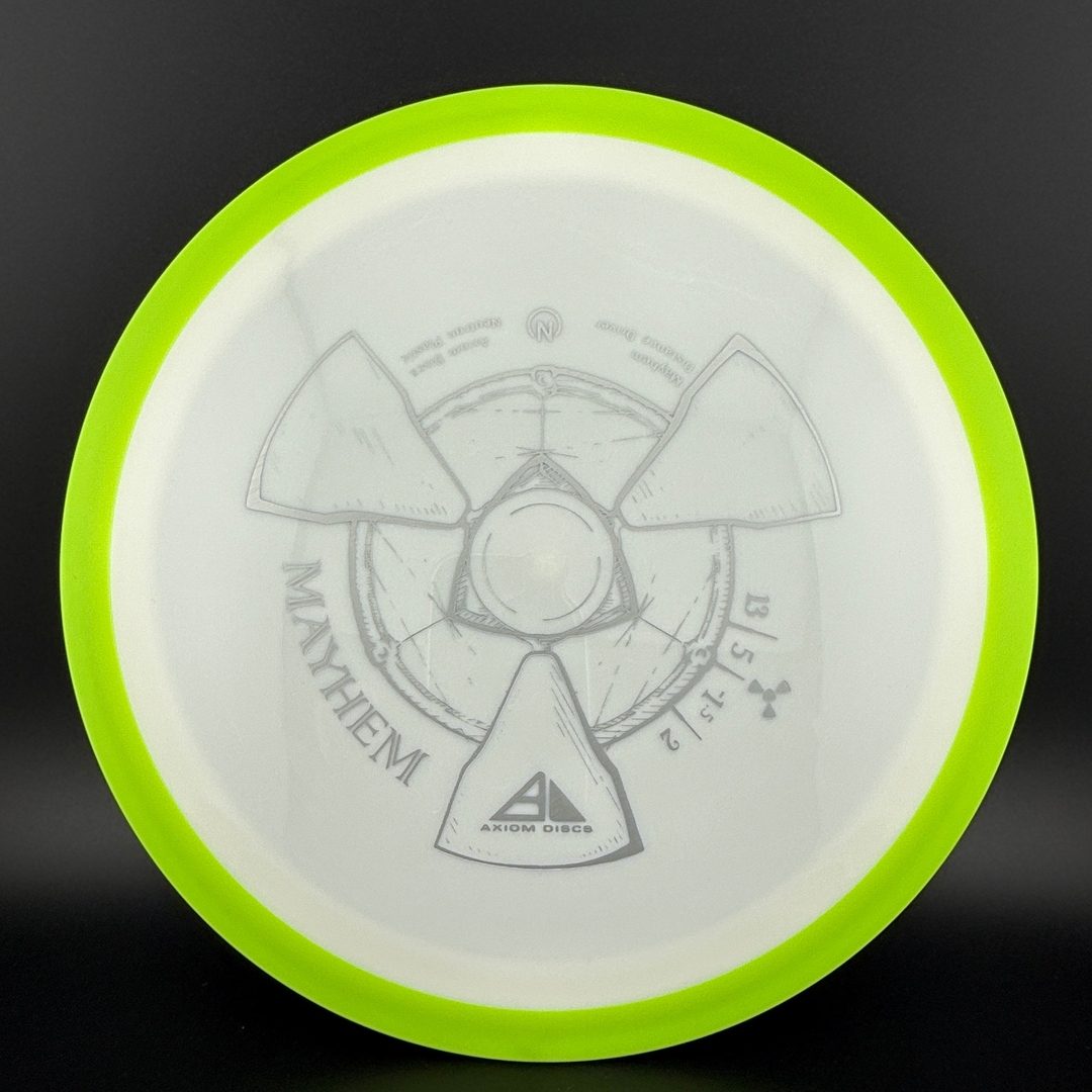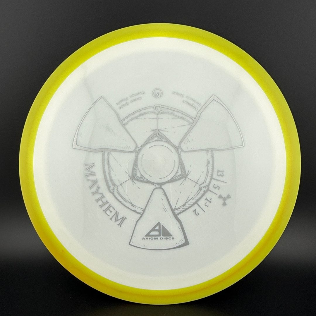 The Mayhem is part of a demanding high speed class, but its stability is softened a bit for easier straighter flights. Expert throwers will find the Mayhem ready to stand up and boom or drift over from flat, while average power throwers will be able to mash on it without fear of unmanageable turn.