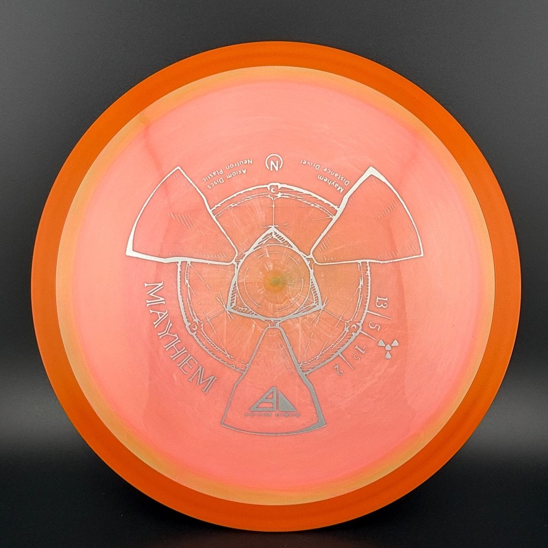 Mayhem has a responsive straight-stable profile and plenty of speed, making it a perfect workhorse driver for many advanced and expert throwers. Like the MVP 23mm class, the Mayhem has a pronounced dome to promote distance-covering glide. Mayhem is best compared to a beat MVP Octane.