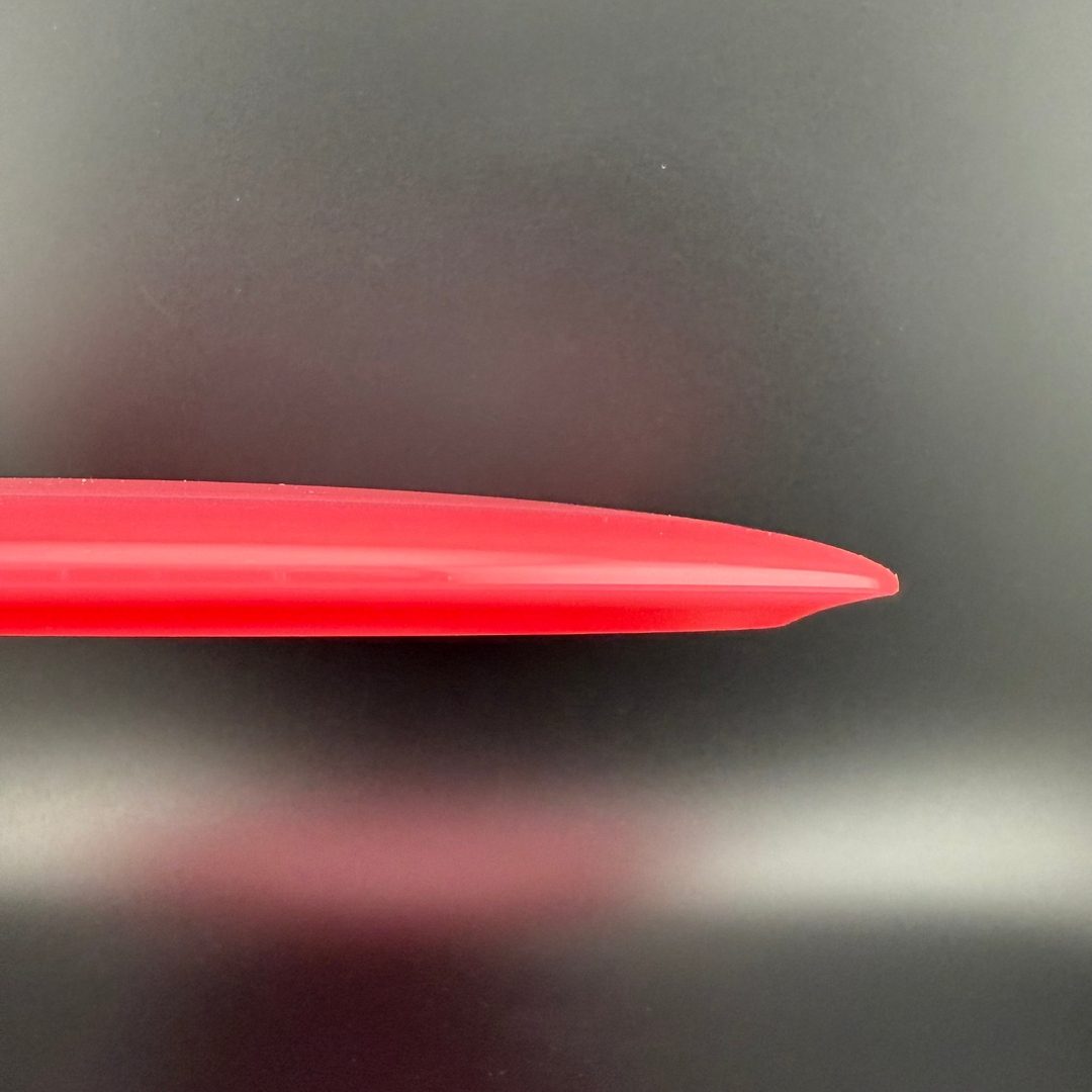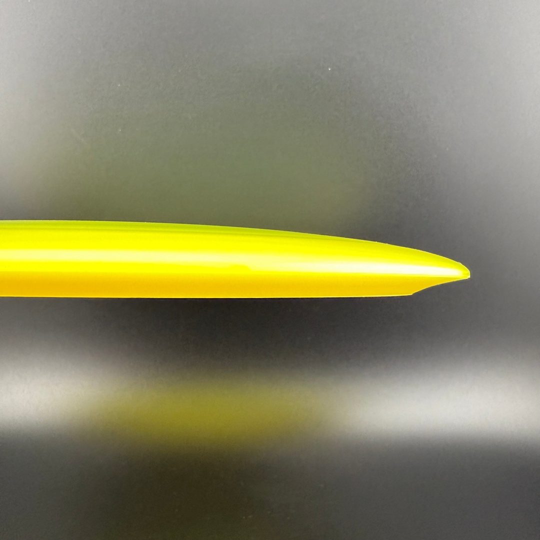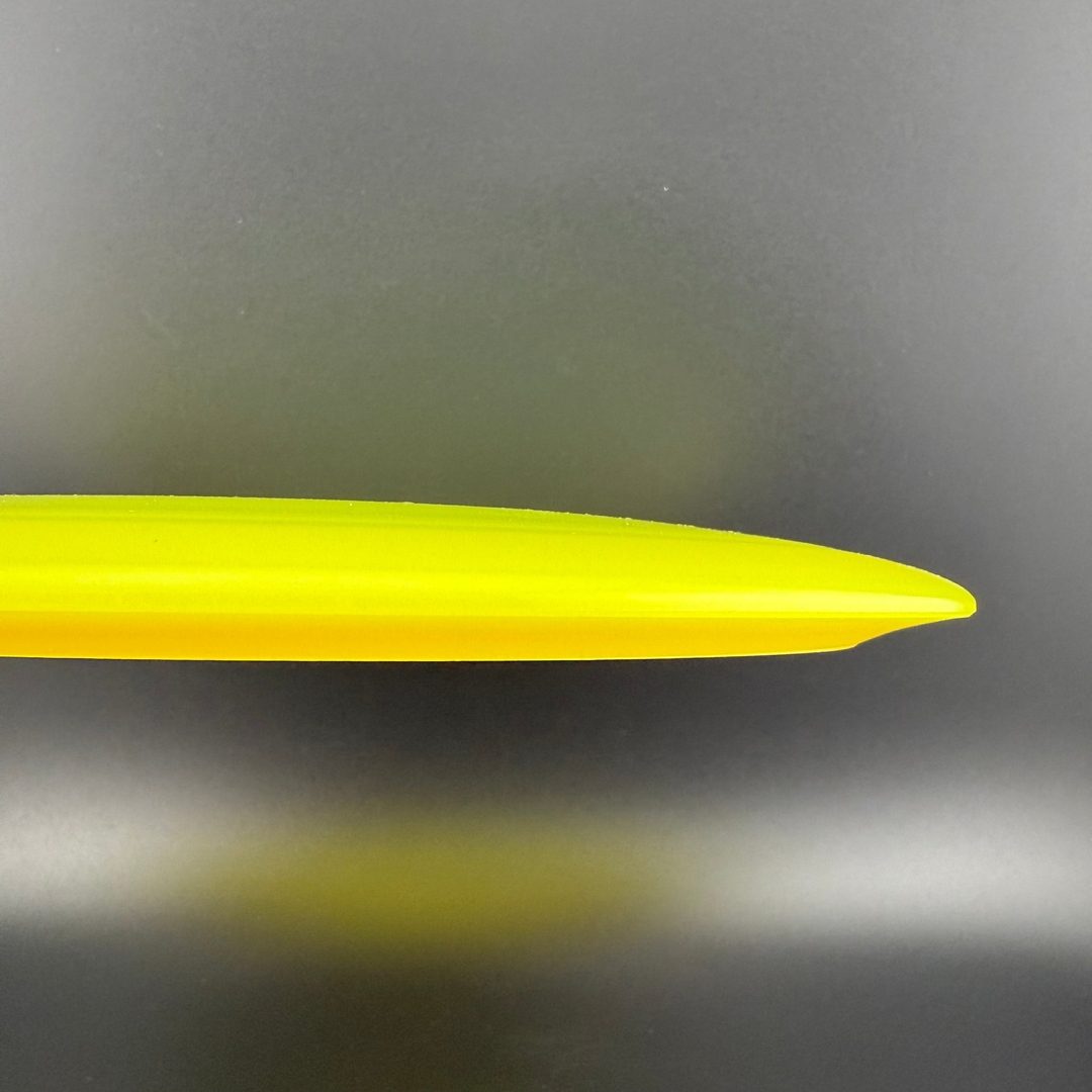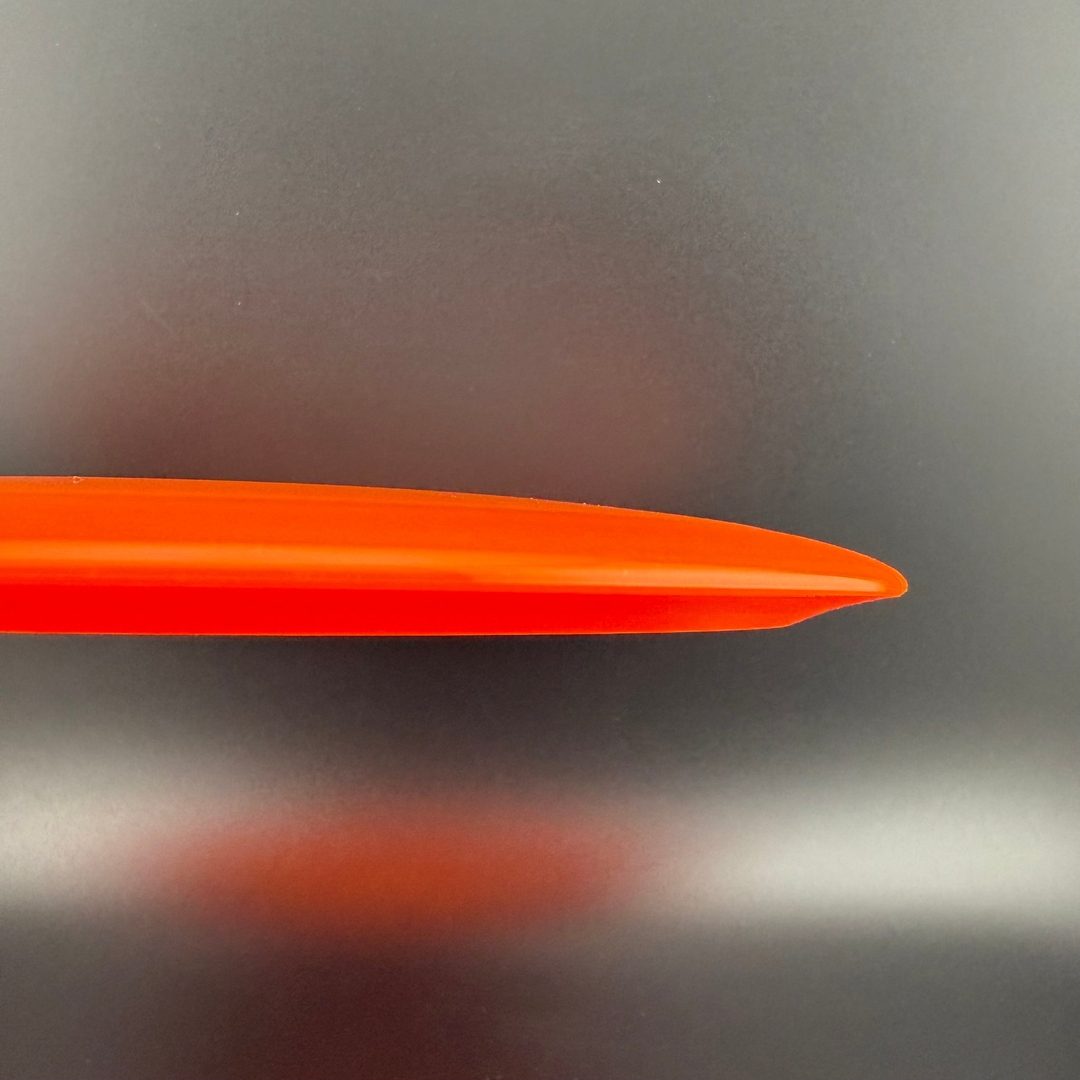 Opto Air uses the same material as our durable Opto Line plastic. It is modified and the runs are done in a different way to achieve a stunning result of lighter weight discs that still has a layer of solid plastic at the tip and bottom of the rim to protect the alternated material that is mostly centered in the middle of the rim but also spread out slightly over the top of the discs to keep the weight distribution as close as possible to the Opto and Gold Line discs.