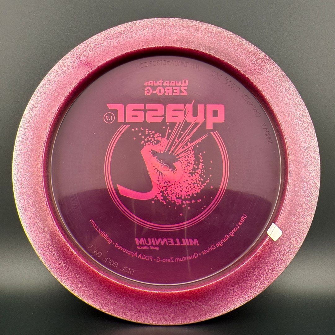The Quasar is the fastest and most overstable driver Millennium makes. This disc is very thin (1.6cm height) and has an ultra-wide rim (2.5cm). The Quasar is a good disc for forehand throws and backhand throws by powerful disc golfers. While the Quasar is best suited for advanced players, it is available in the low weight Zero-G plastic, which makes it more suitable for intermediate players. This disc is also available in the highly durable “stardust” Quantum plastic.