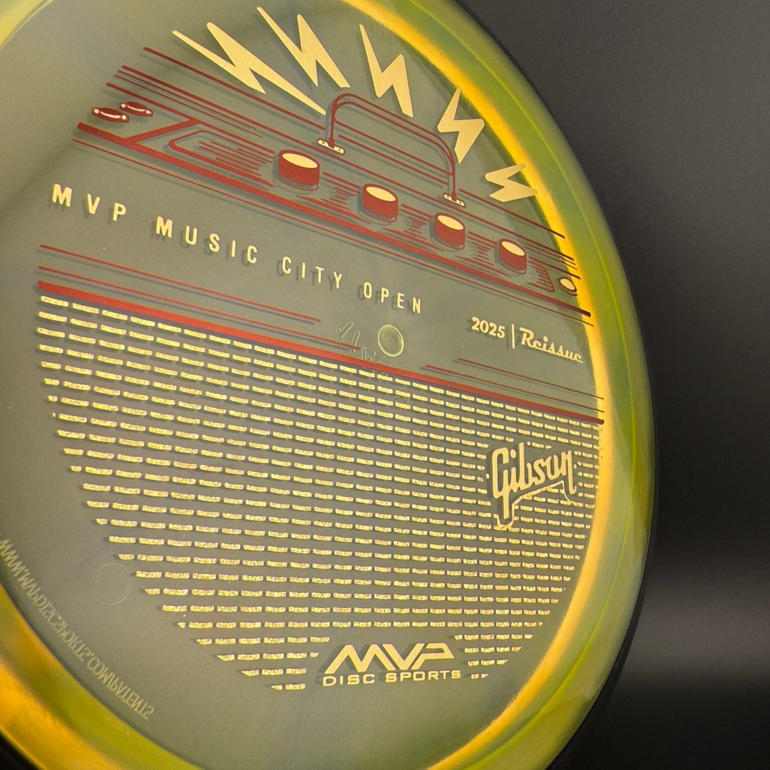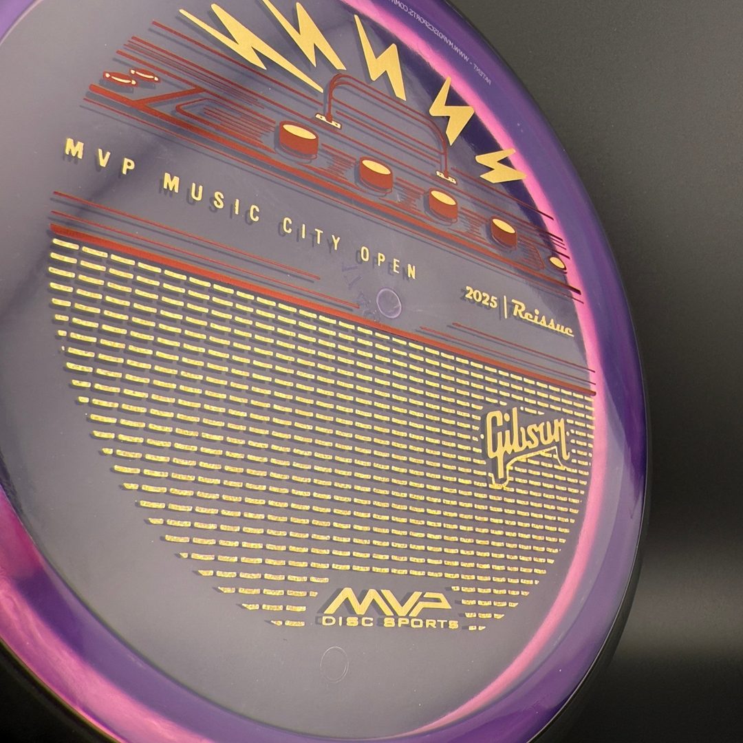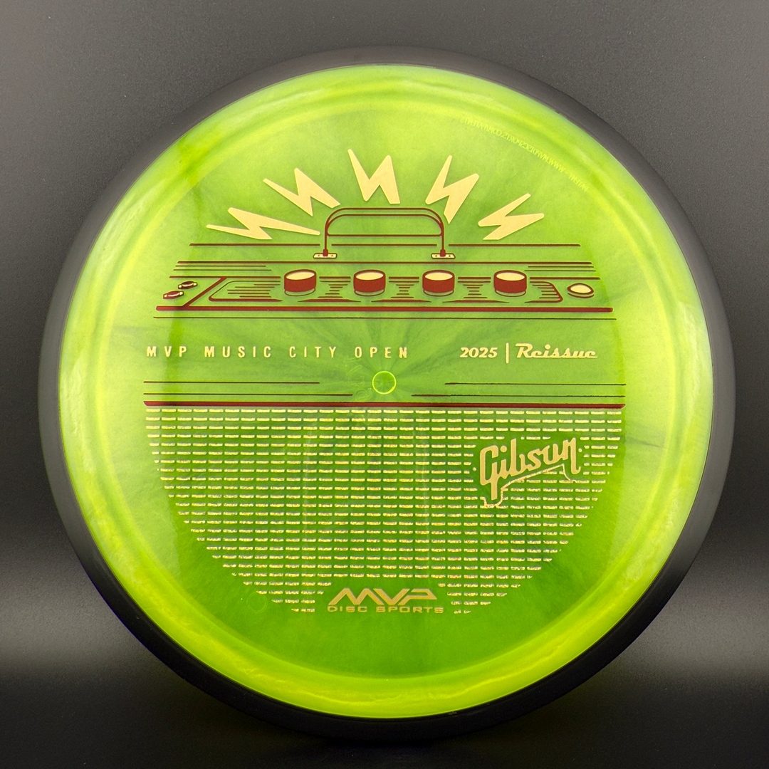 8/5/-0.5/1.5   *Limited reissue for MVP Music City Open!  Staff has been loving these.  Gibson collaboration artwork by Mike Inscho.  Discs have either Maroon, Matte Gold and Gold Glitter Holo foils or Gold Holo Black and Metallic Gold Foils.  Minor storage wear possible due to plastic type.