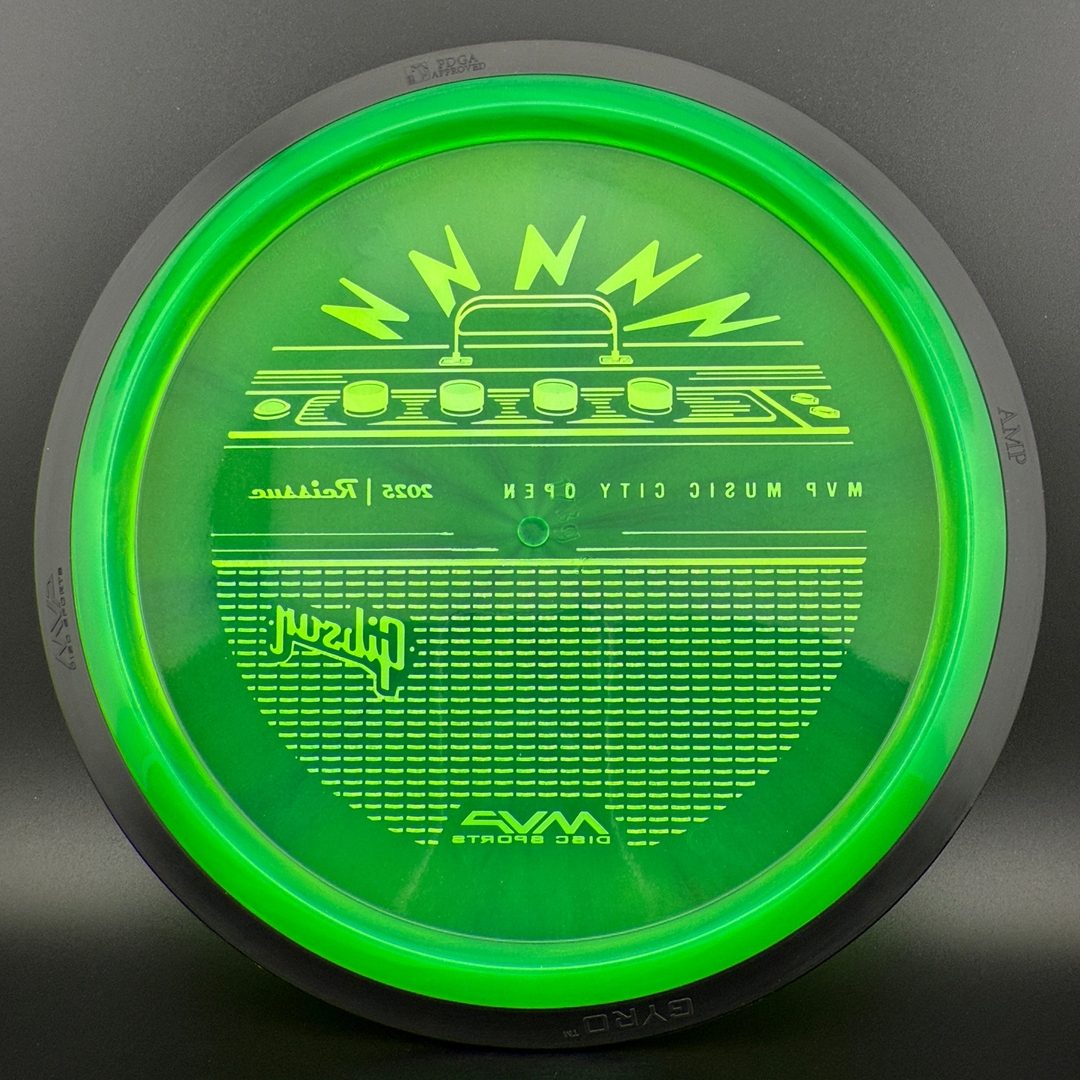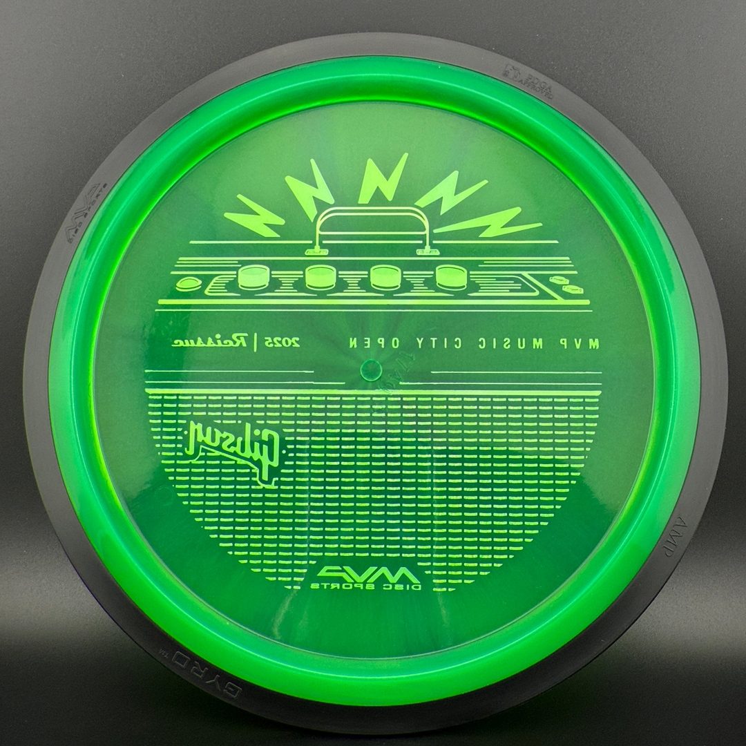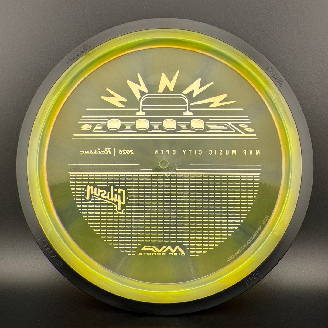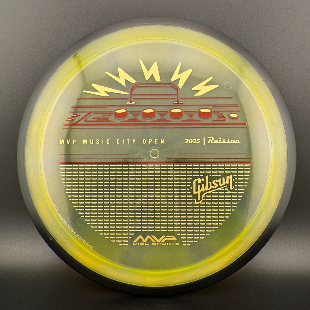 8/5/-0.5/1.5   *Limited reissue for MVP Music City Open!  Staff has been loving these.  Gibson collaboration artwork by Mike Inscho.  Discs have either Maroon, Matte Gold and Gold Glitter Holo foils or Gold Holo Black and Metallic Gold Foils.  Minor storage wear possible due to plastic type.