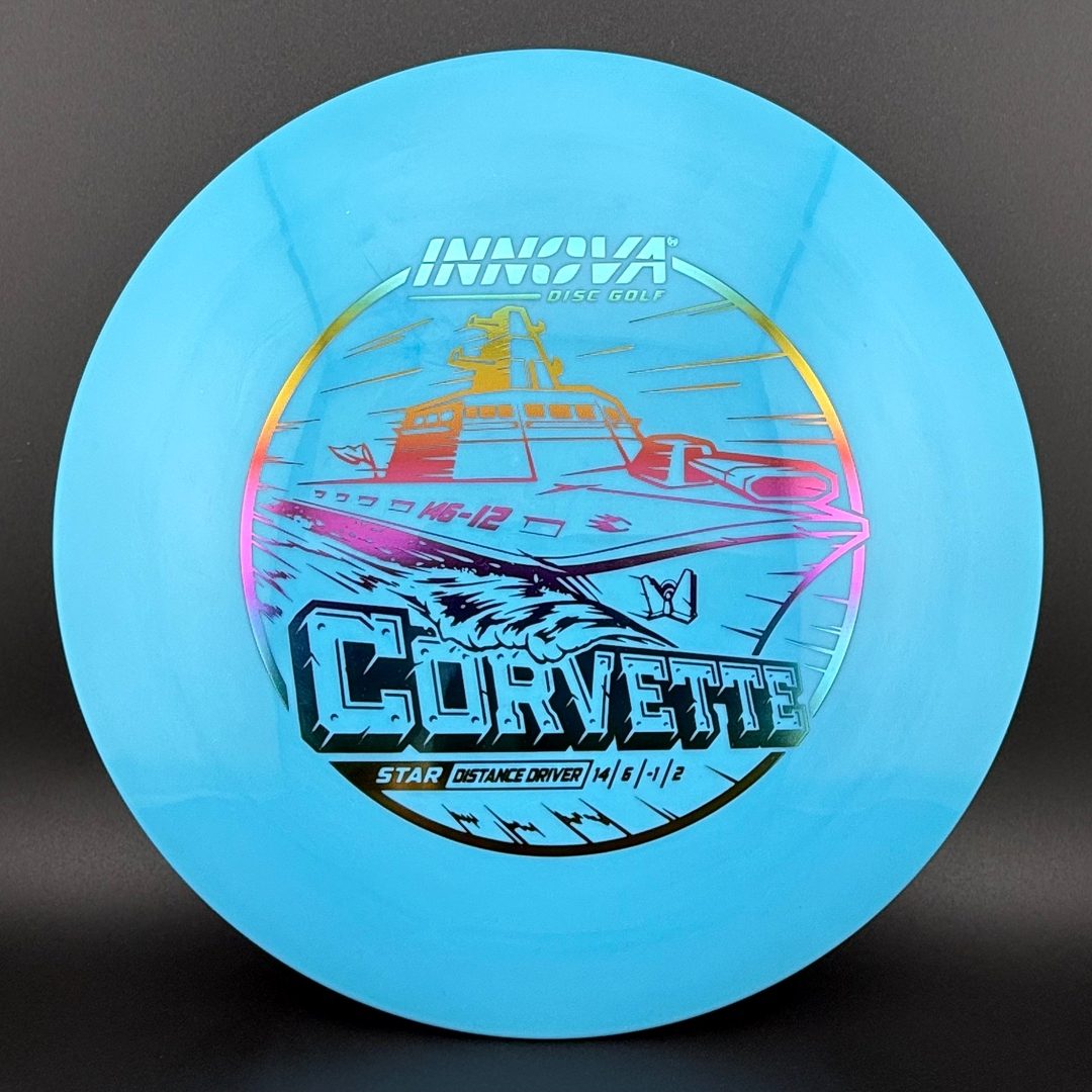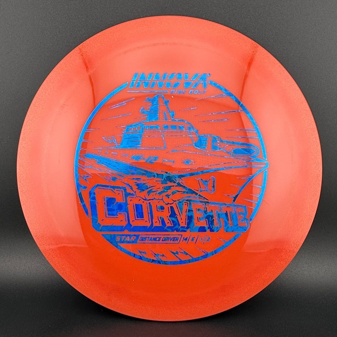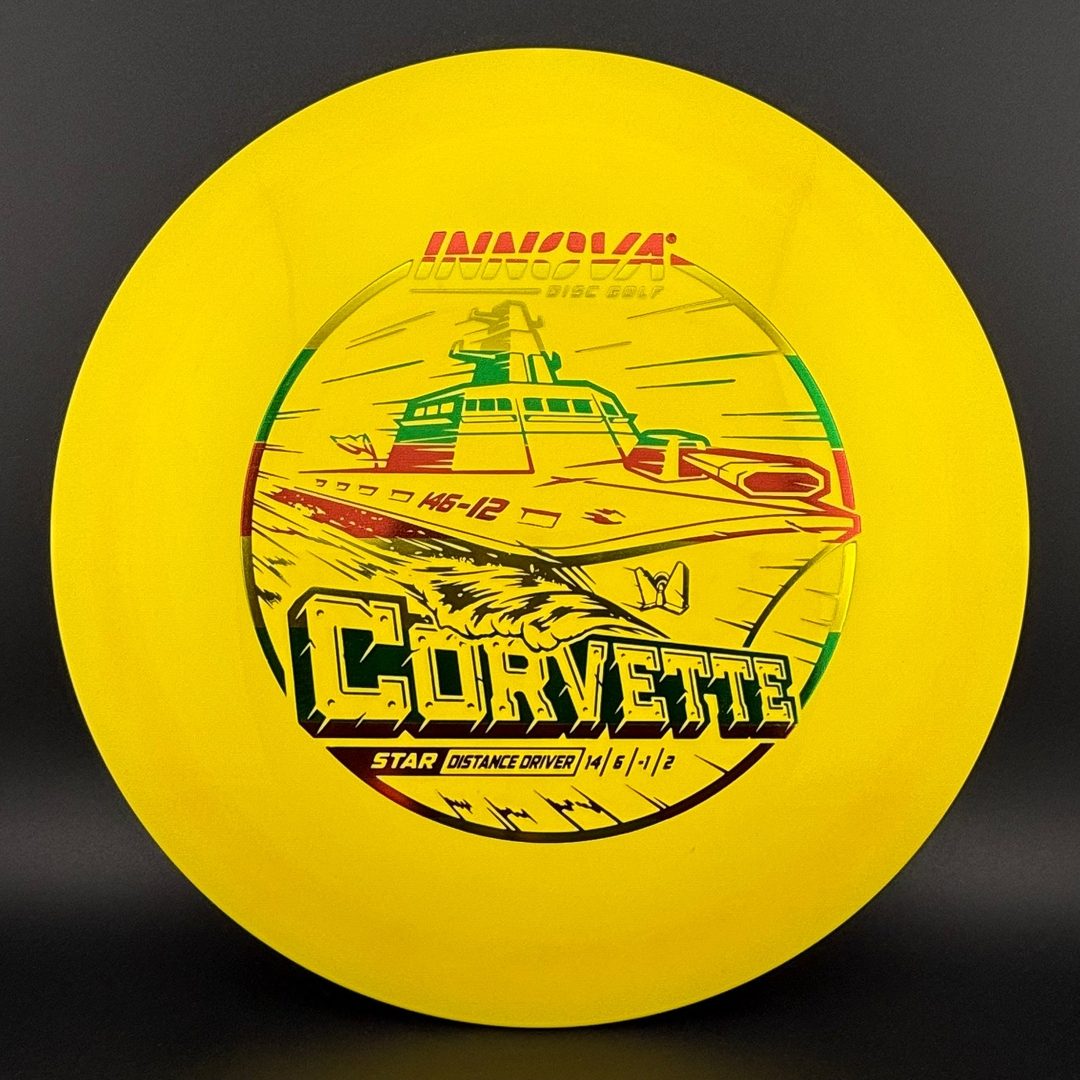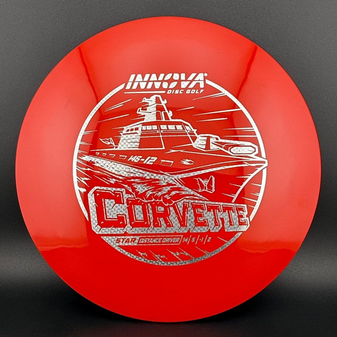 The Corvette is Innova's second speed-14 driver. It will take off down the fairway like a rocket! Soon, glide will take over and keep the disc coasting down the fairway. It has enough fade at the end to bring it home reliably. Get max distance and speed with the Corvette.