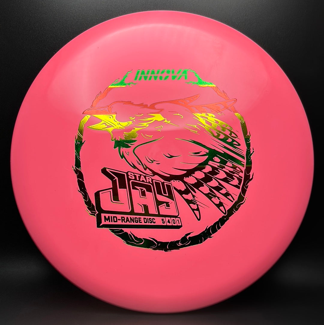 The Innova Jay is a micro-beaded Mid-Range with a true-to-release flight, it will be a staple in bags everywhere. This all-purpose disc can handle power or be finessed. It has better torque-resistance than most Mid-Ranges, but still finishes straight. It is one of Innova's most point-and-shoot discs on the market. The Jay’s low-profile design fits comfortably in your hand for a clean release every throw.
