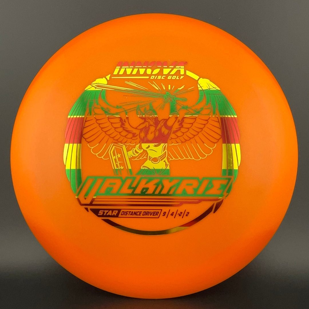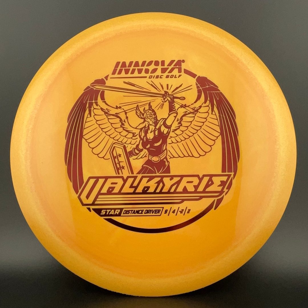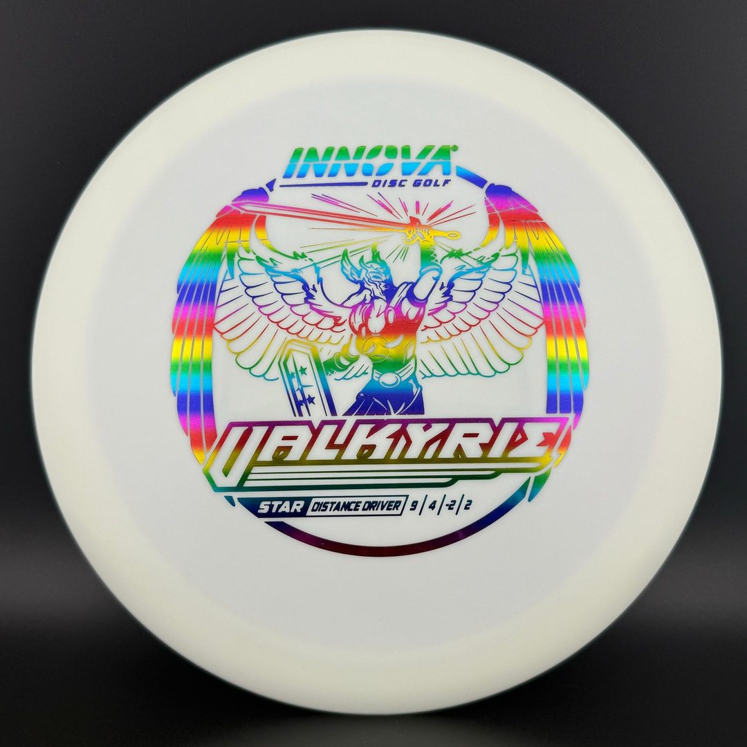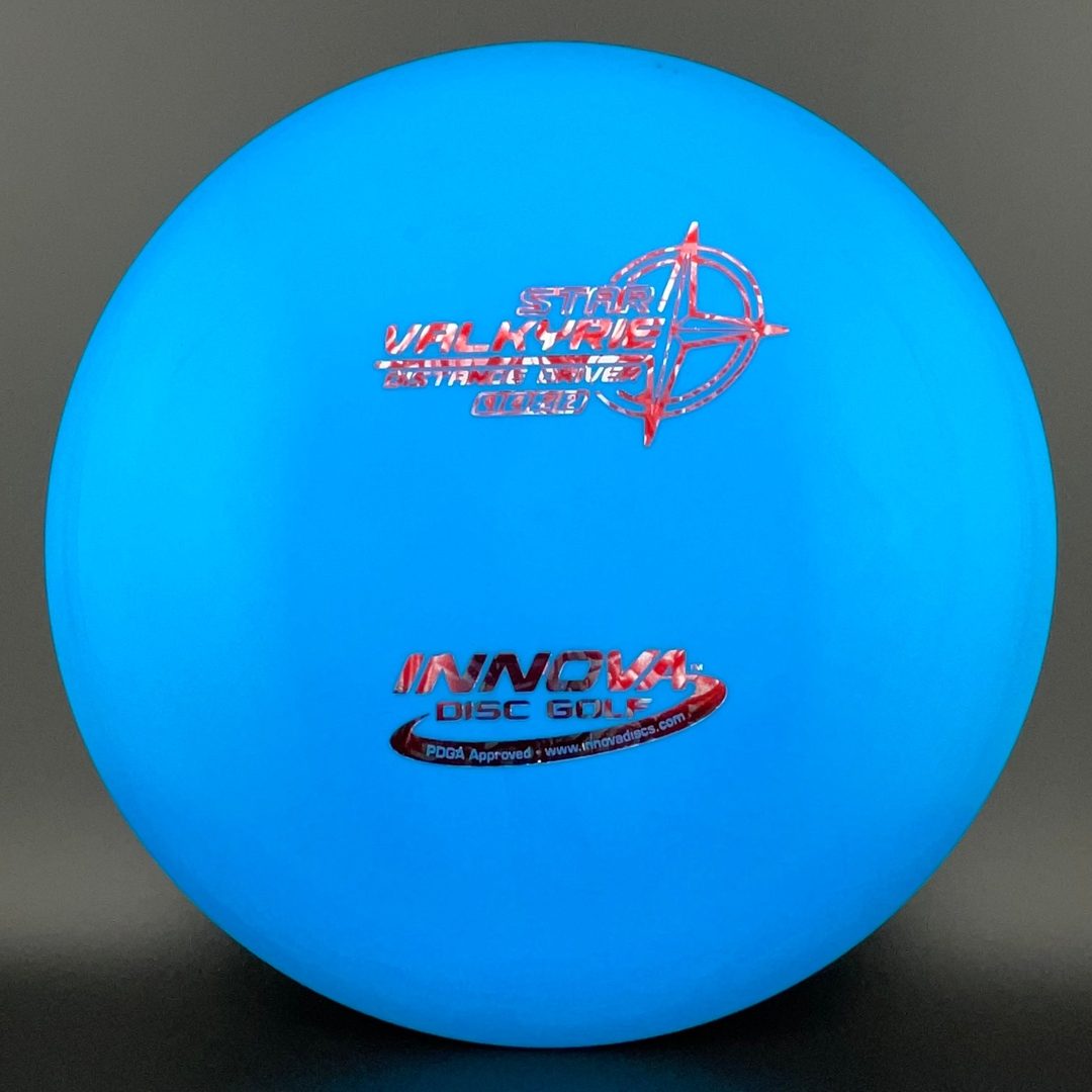 One of the most popular drivers in the world, the Valkyrie held the world distance record for a decade. This is a stable flying distance driver with a good degree of high speed turn and fade. The Valkyrie can be used by players of all skill levels. It is a good distance driver for newer players developing form, and can be used for turnover shots and rollers for more advanced players. Because of the popularity of the Valkyrie it is available in just about every plastic Innova has to offer; DX, Pro, Champion, Star, and even Glow Champion.