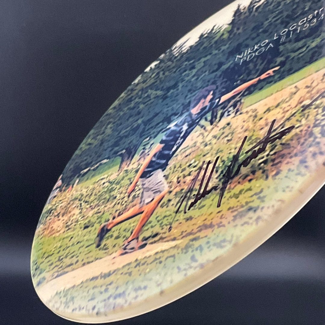 5/4/-1/1     *Signed by Nikko! Incredibly rare SuperColor Buzzz from back when Nikko Locastro was on Team Dynamic Discs. Storage wear possible for a disc this age.