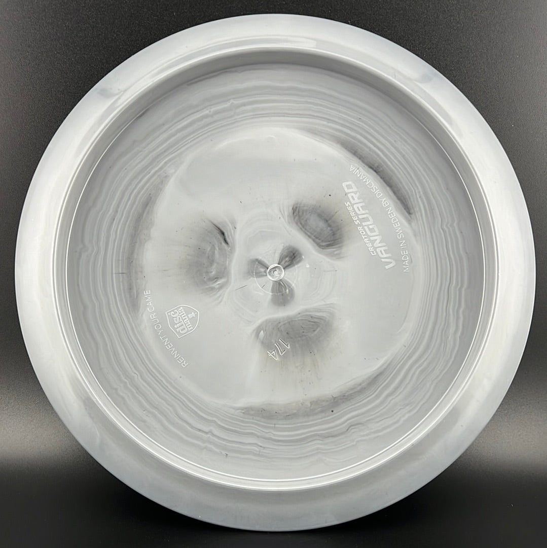 Vanguard showcases a new level of reliability in their fairway driver lineup. The blunt nose will feel resemblant to an FD1 or FD3 but has slightly smoother margins on the edges and rim on the molding, allowing it to sit more comfortably in the hand. A Vanguard meant to be thrown with force and relied upon when you need it most. A more powerful throw is able to carry forward on a rope and finish with moderate fade and steeper angles of throws can execute a hyzer line or anhyzer that returns reliably with ease.