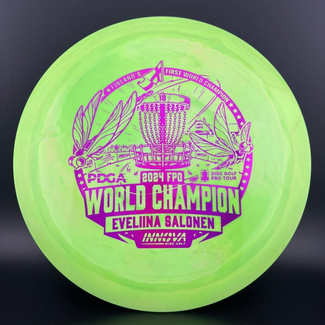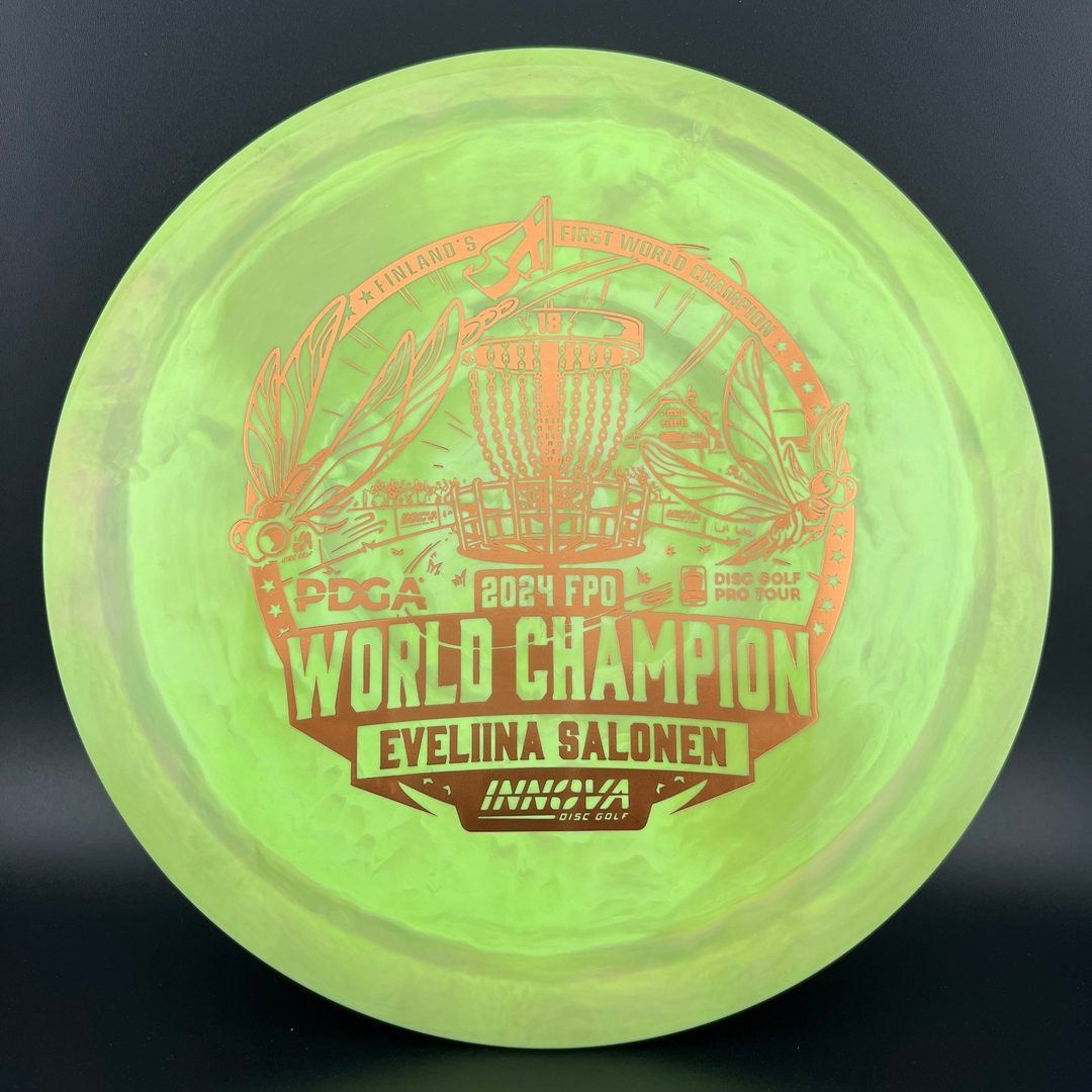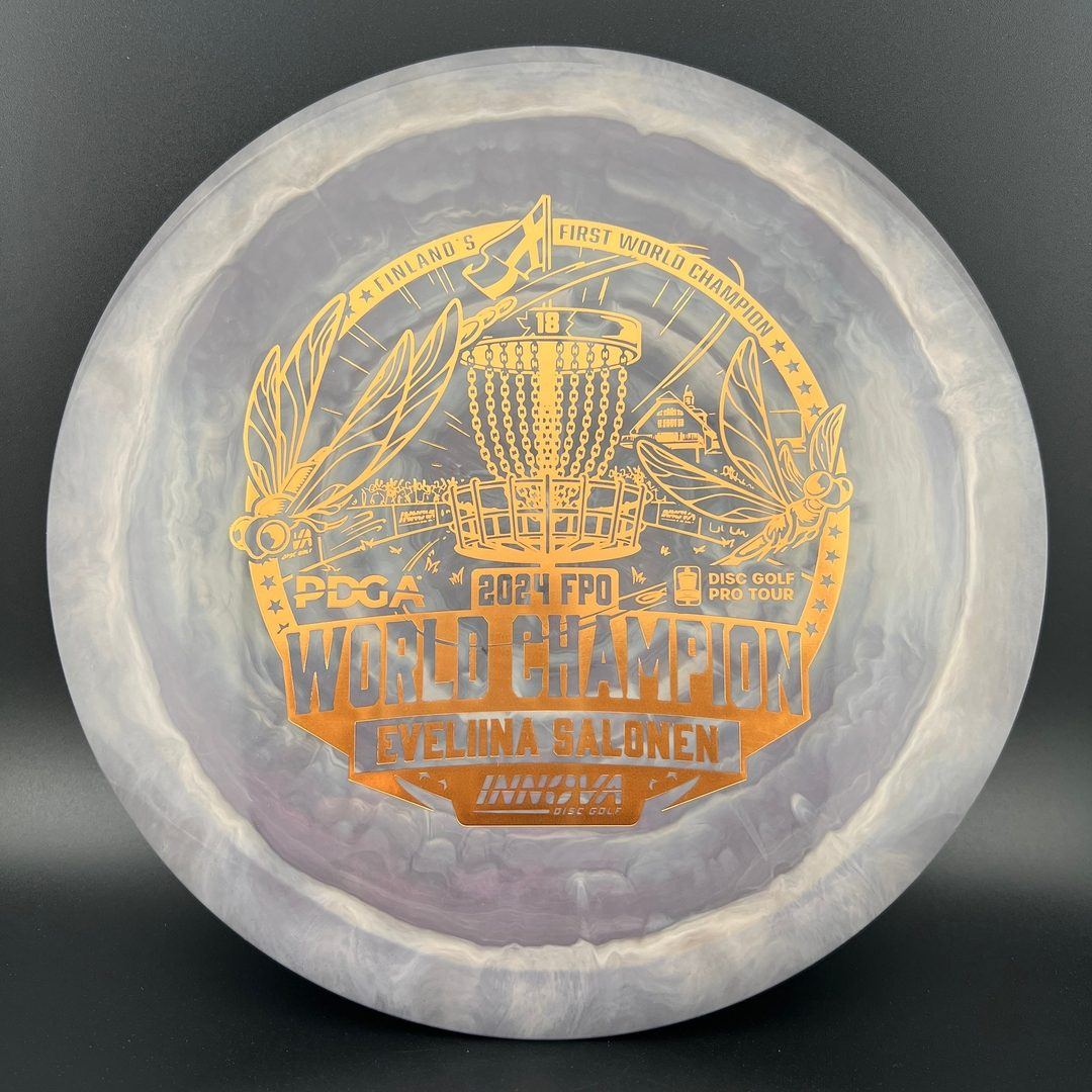 Please join us in congratulating your 2024 PDGA FPO World Champion, Eveliina Salonen! Eveliina makes history being the first Finnish athlete to claim a Pro Worlds title! ?? To Honor her win we are offering this Commemorative Swirled Star Destroyer.